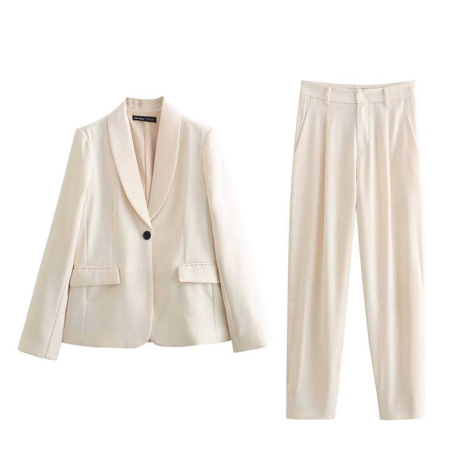 Conjunto de traje de mujer con chaqueta y pantalones plisados de cintura alta, estilo europeo y americano, estilo transfronterizo de verano 2024