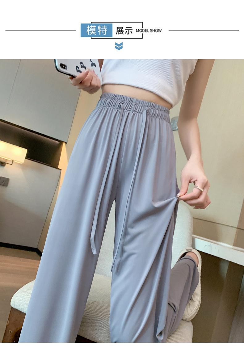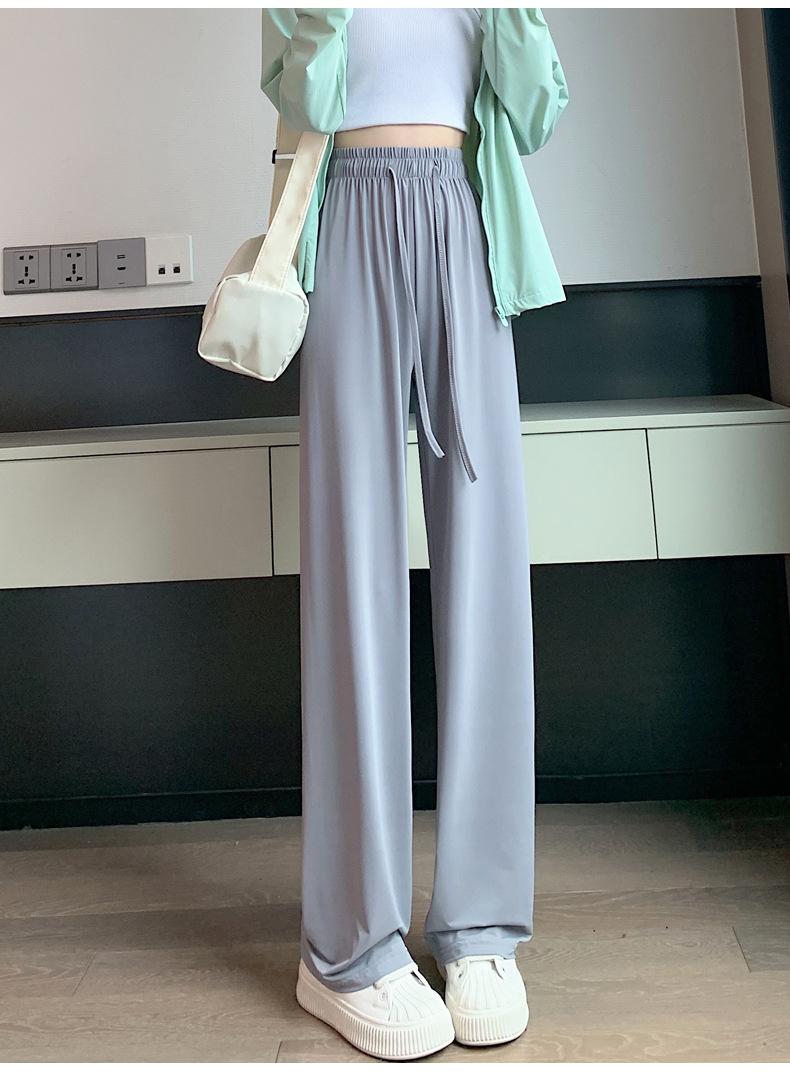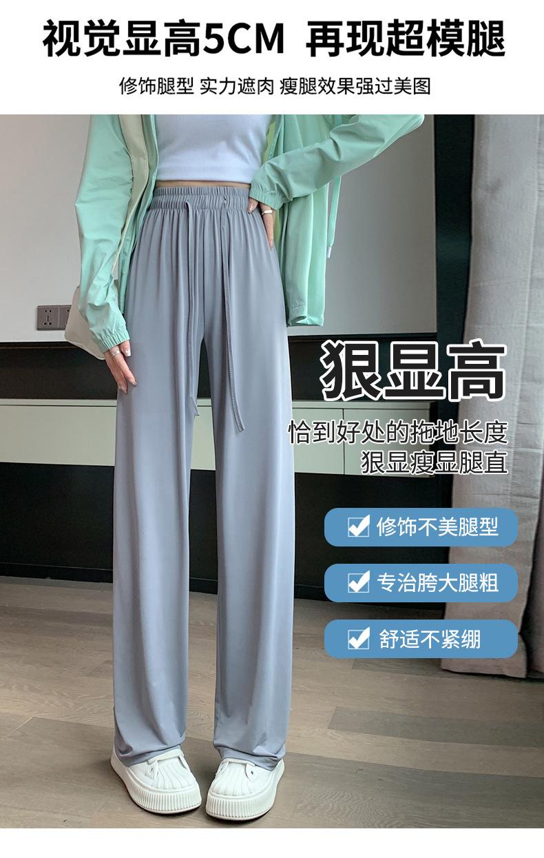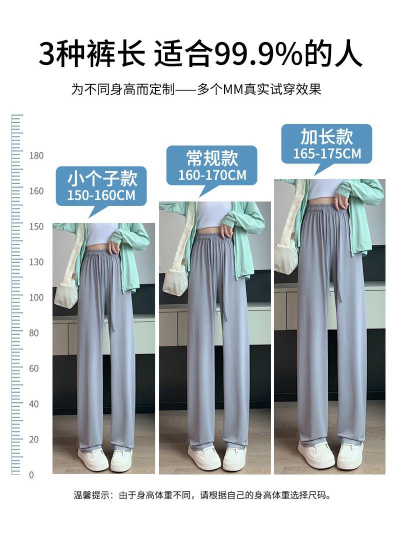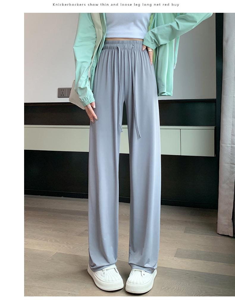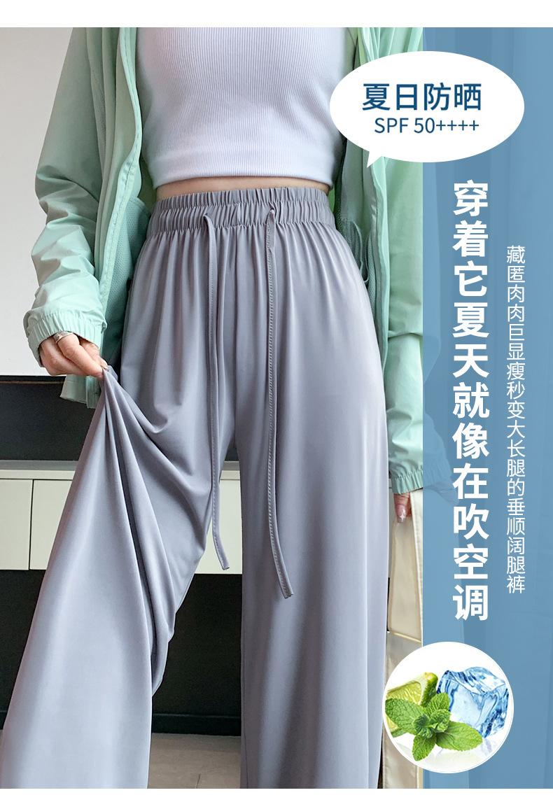 Verano Nuevo Pantalón de Pierna Ancha de Seda de Hielo Para Salir Antimosquitos Protector Solar Recto Pantalón Protector Solar Drapeado con Abertura Cintura Alta Moderno Delgado