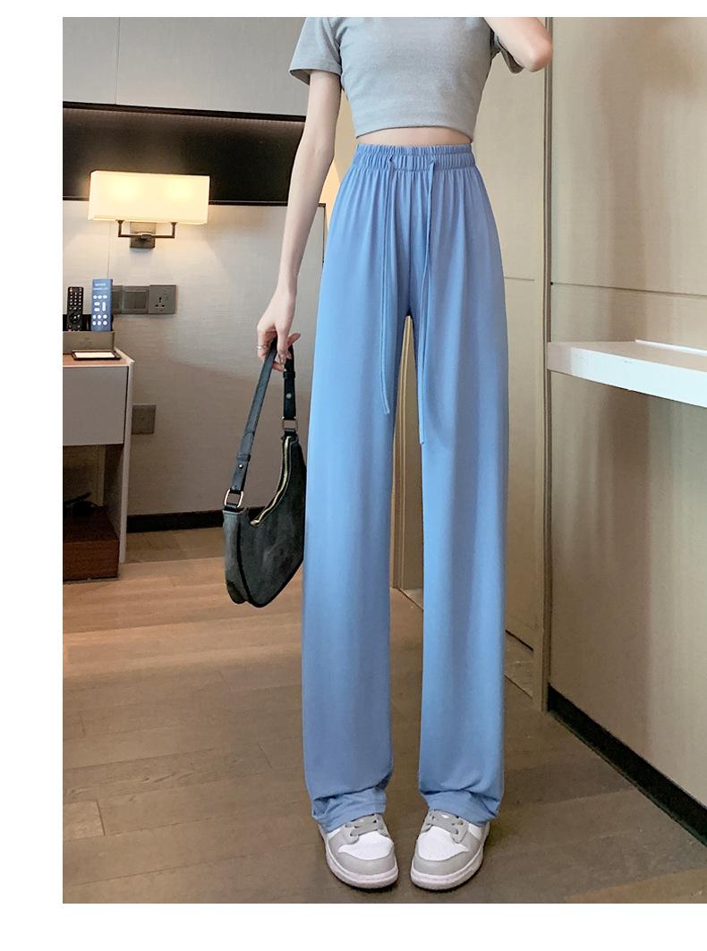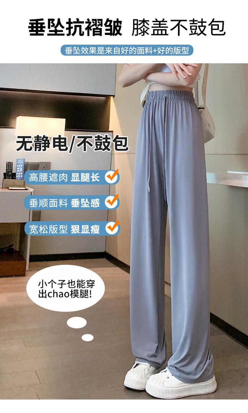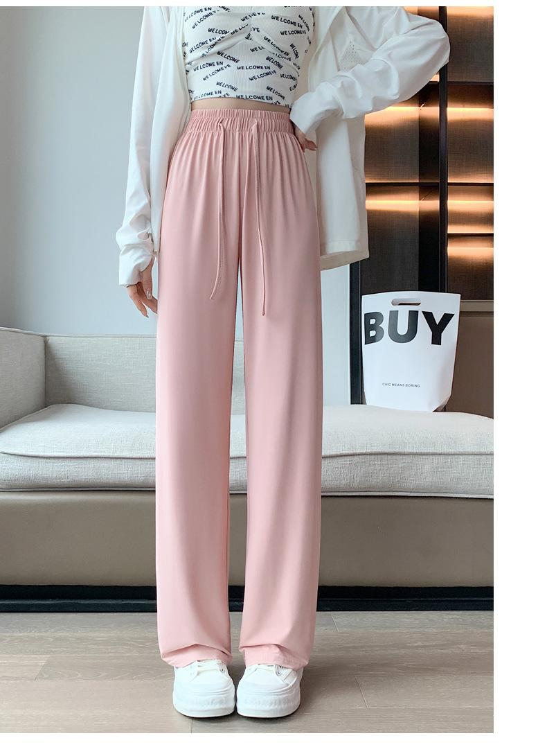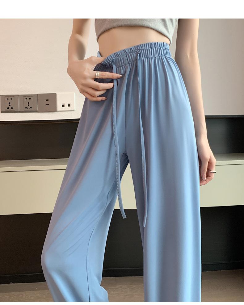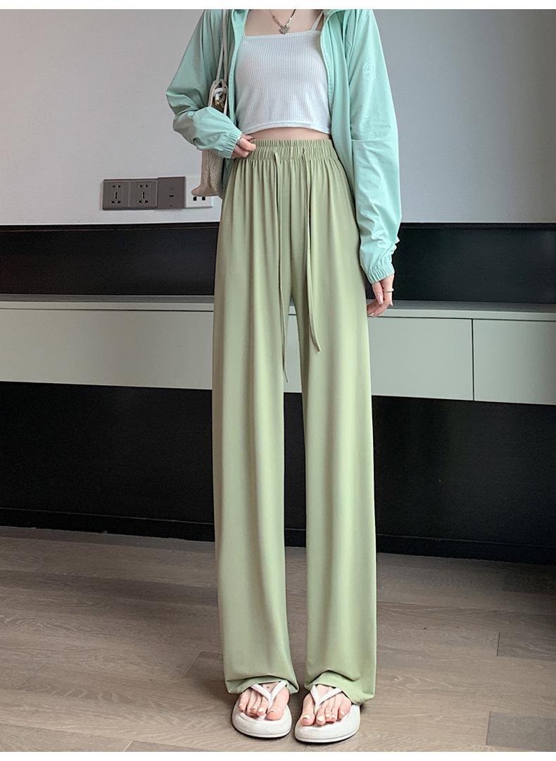 Verano Nuevo Pantalón de Pierna Ancha de Seda de Hielo Para Salir Antimosquitos Protector Solar Recto Pantalón Protector Solar Drapeado con Abertura Cintura Alta Moderno Delgado