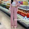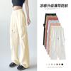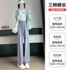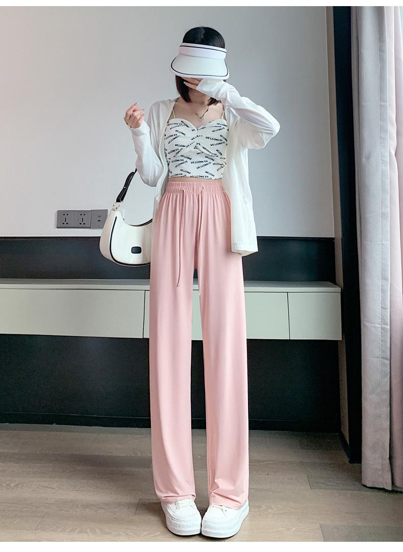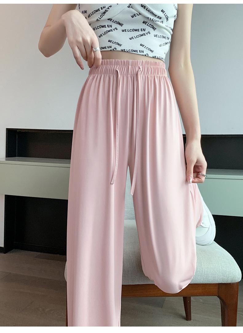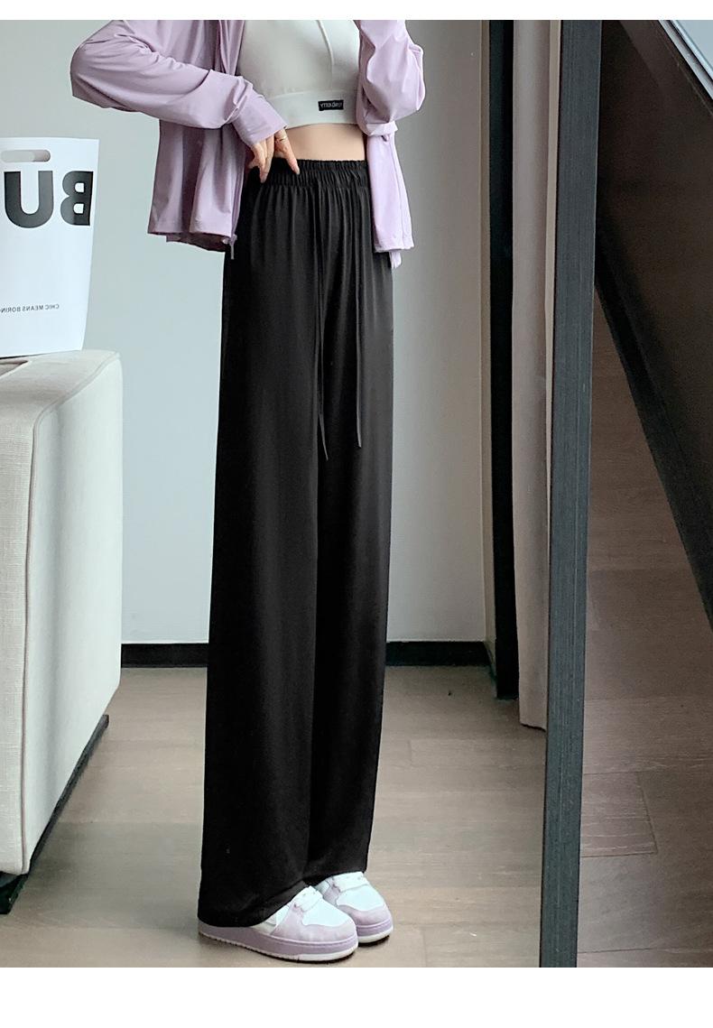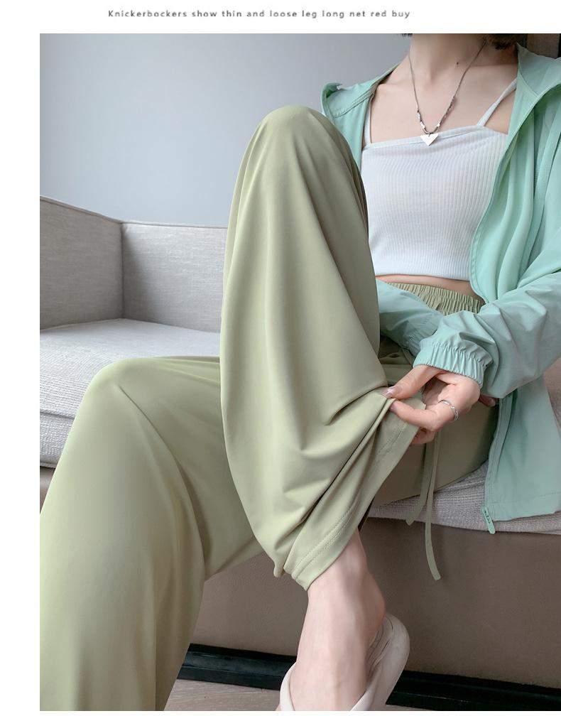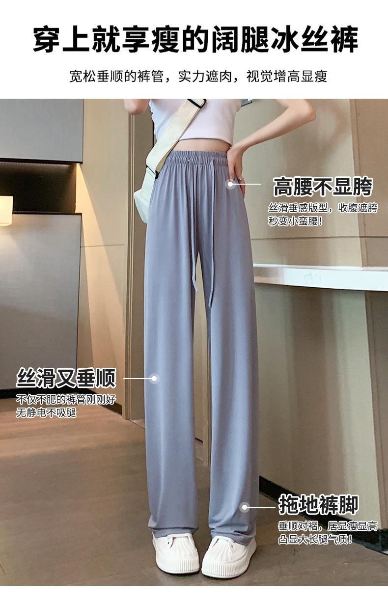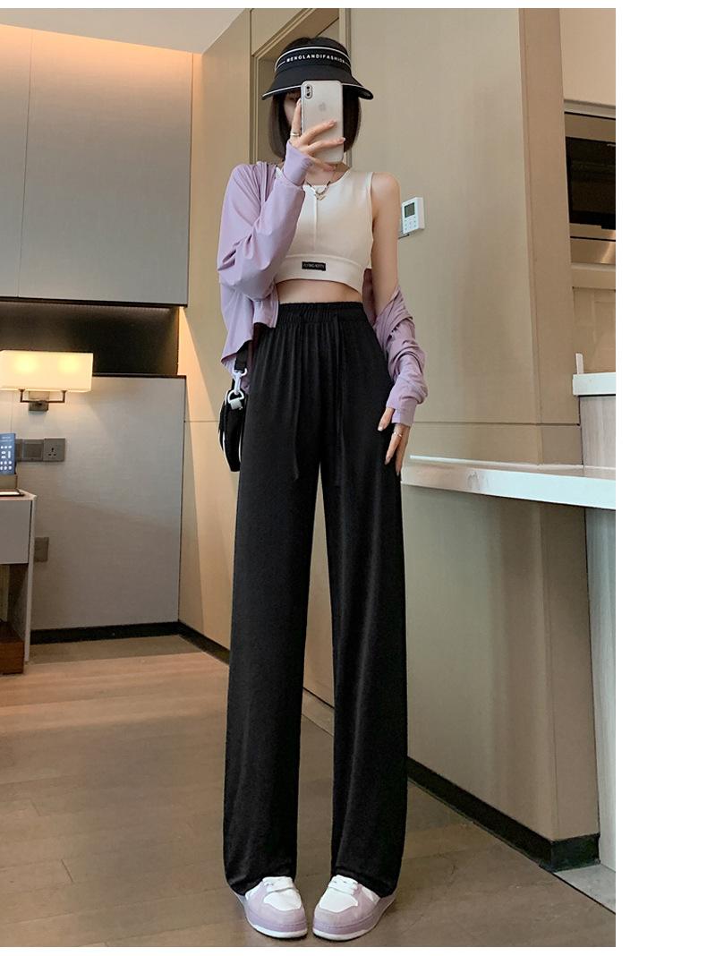 Verano Nuevo Pantalón de Pierna Ancha de Seda de Hielo Para Salir Antimosquitos Protector Solar Recto Pantalón Protector Solar Drapeado con Abertura Cintura Alta Moderno Delgado