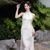 Vestido de cola de pez estilo nacional chino para mujer, novedad de verano 2024, de alta gama, sin mangas, con cuello y hombreras, vestido largo en la cintura.