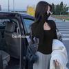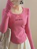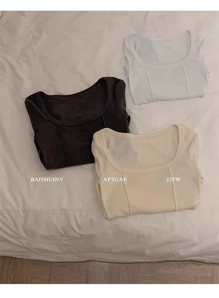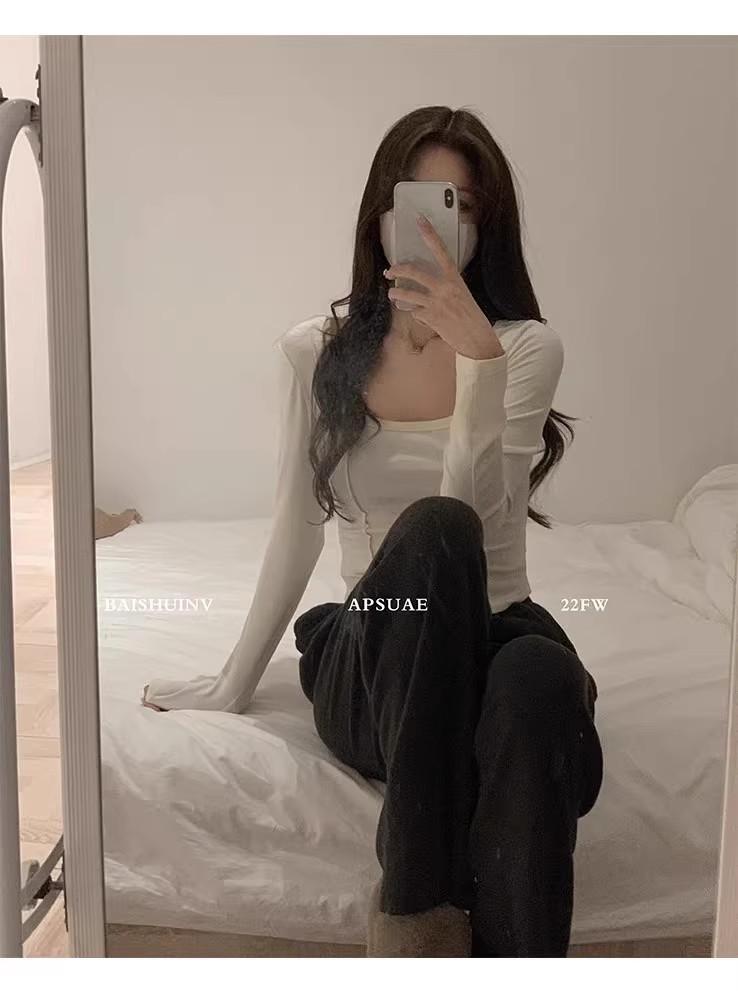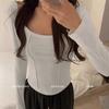 Camiseta Básica Slim de Manga Larga para Mujer, Terciopelo Alemán Primavera, Otoño e Invierno Nuevo Estilo con Diseño de Top con Varillas, Camiseta Corta Slim