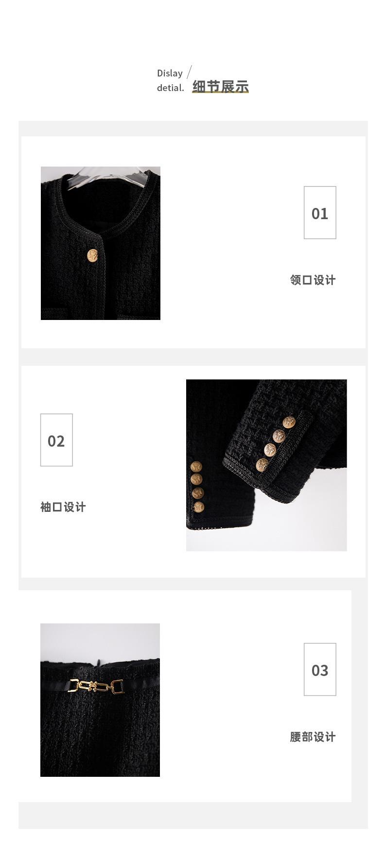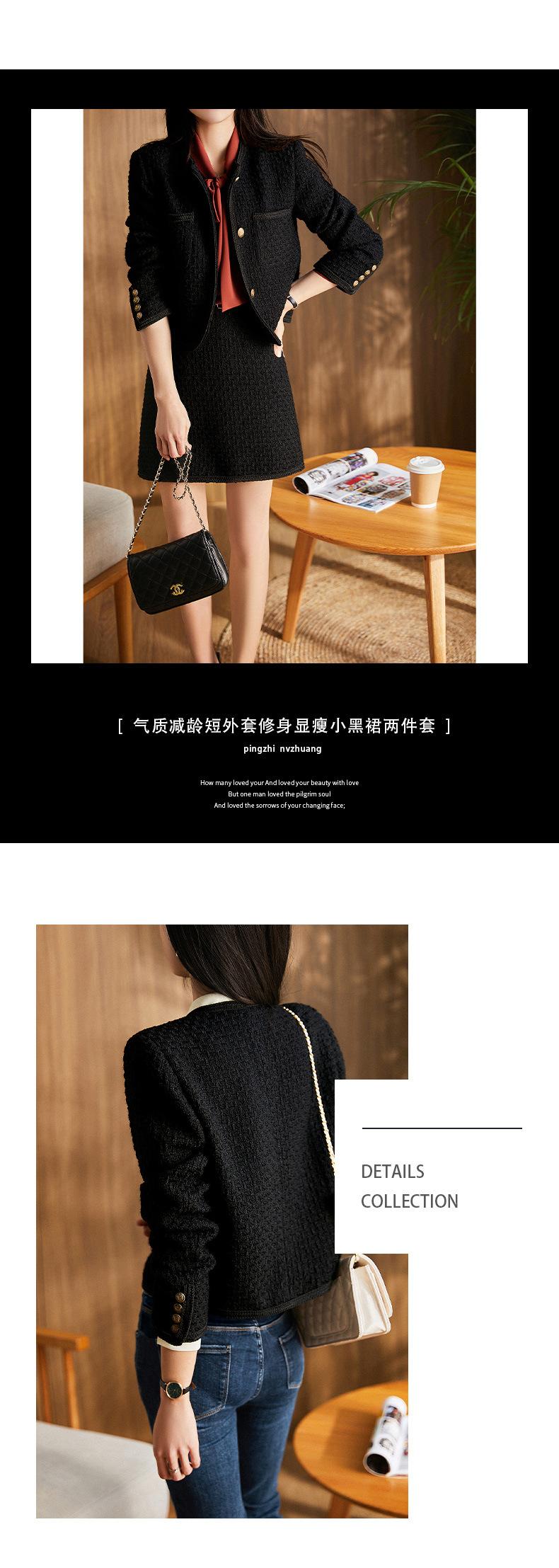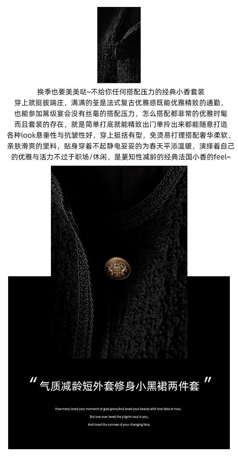Elegante Conjunto de Dos Piezas Estilo Chanel 2025 Otoño Nuevo Ropa de Mujer Chaqueta Corta Reductora de Edad Vestido Corto Ajustado Negro