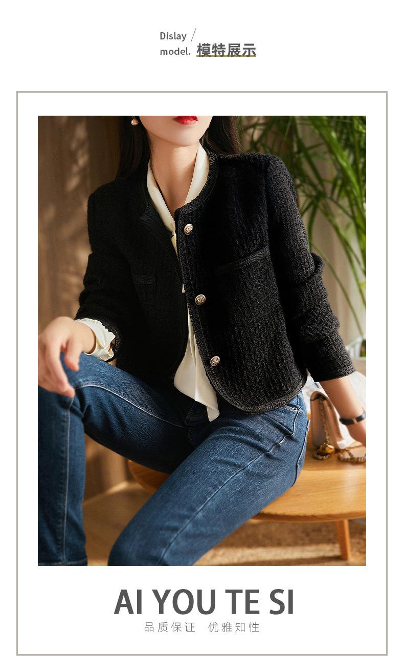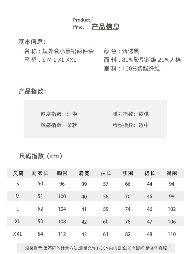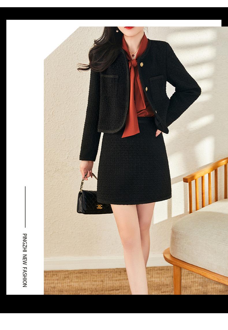 Elegante Conjunto de Dos Piezas Estilo Chanel 2025 Otoño Nuevo Ropa de Mujer Chaqueta Corta Reductora de Edad Vestido Corto Ajustado Negro