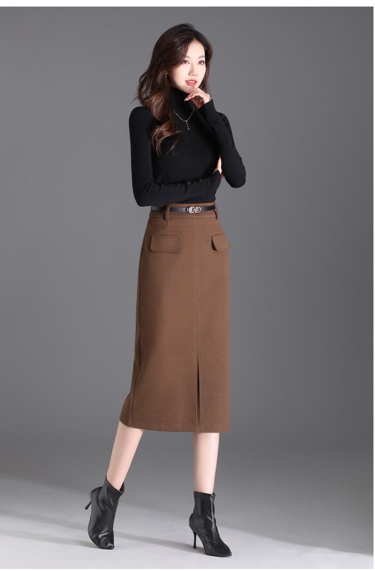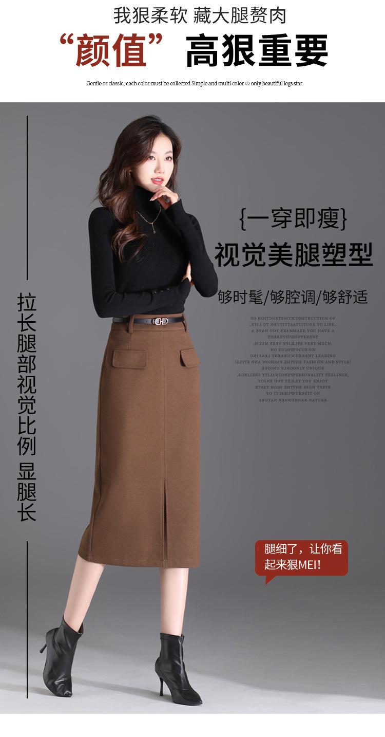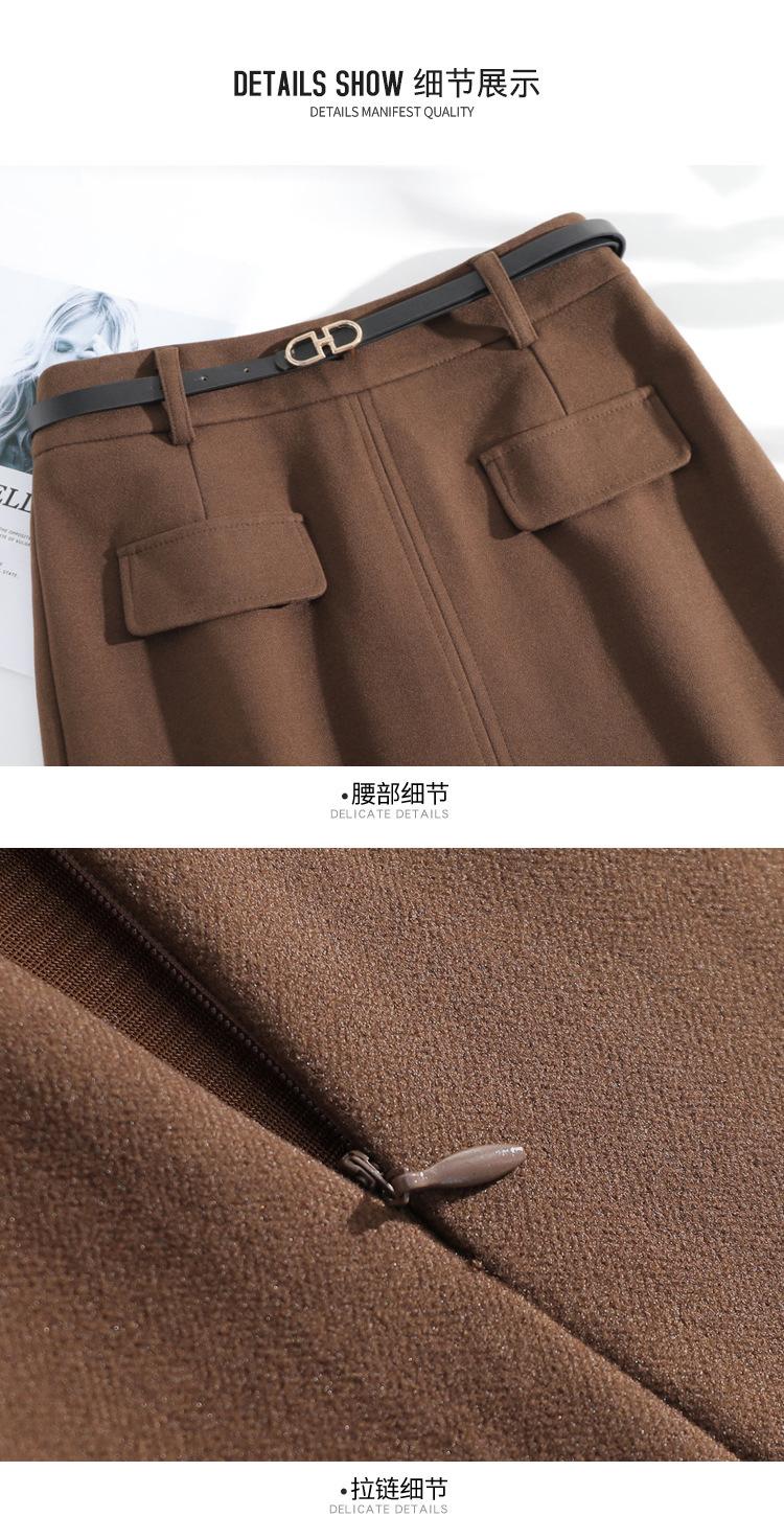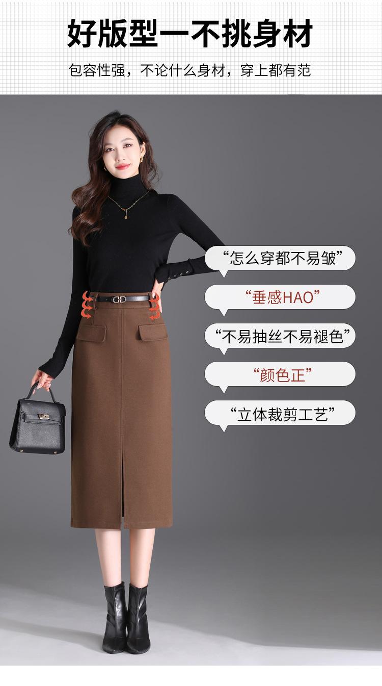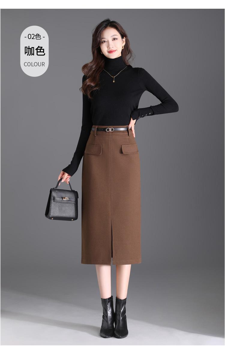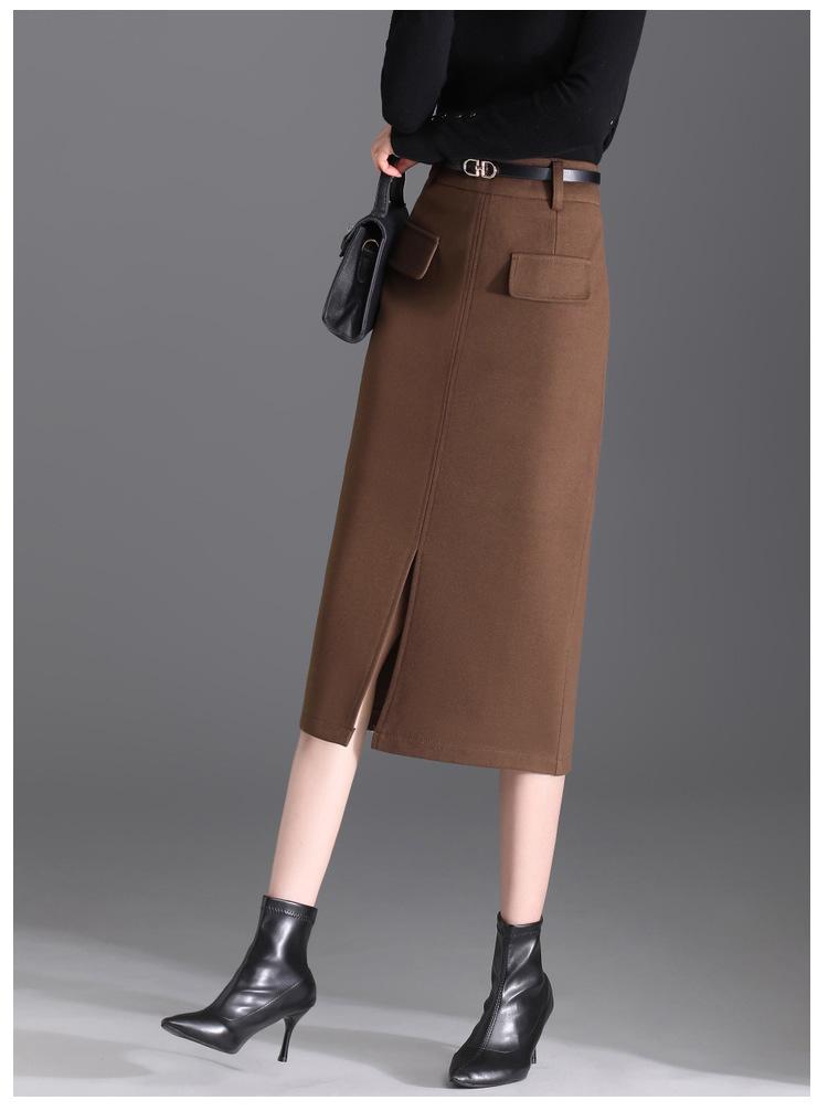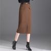 Falda de Lana a la Moda Cubrecaderas para Mujer 2025 Otoño e Invierno Nuevo Estilo Coreano Cintura Alta Recta Profesional de un Paso Largo Medio