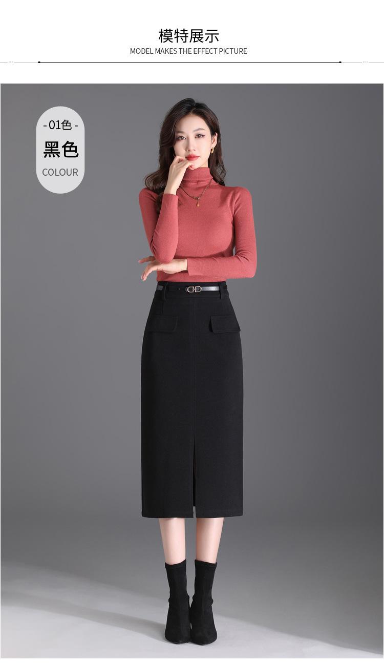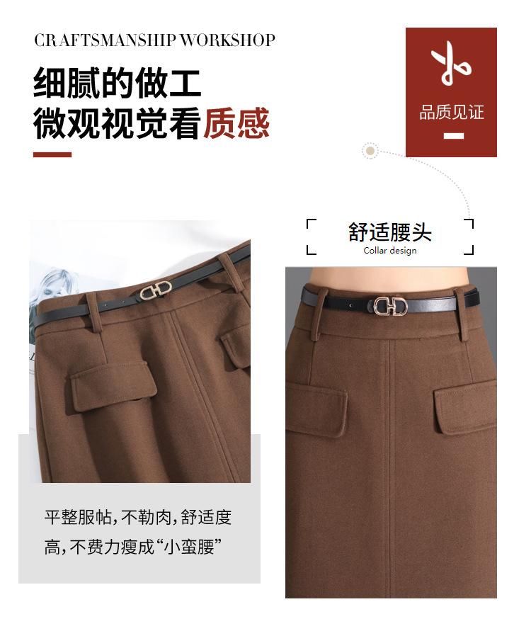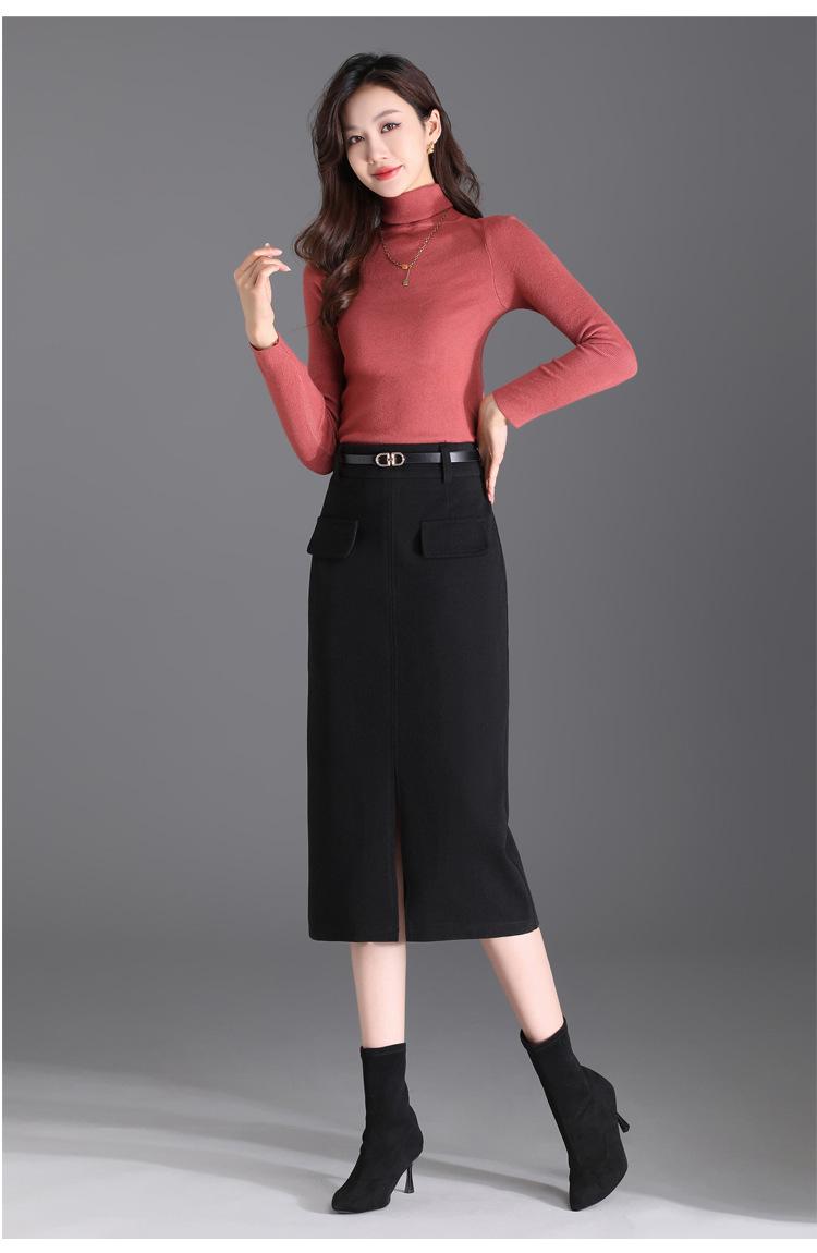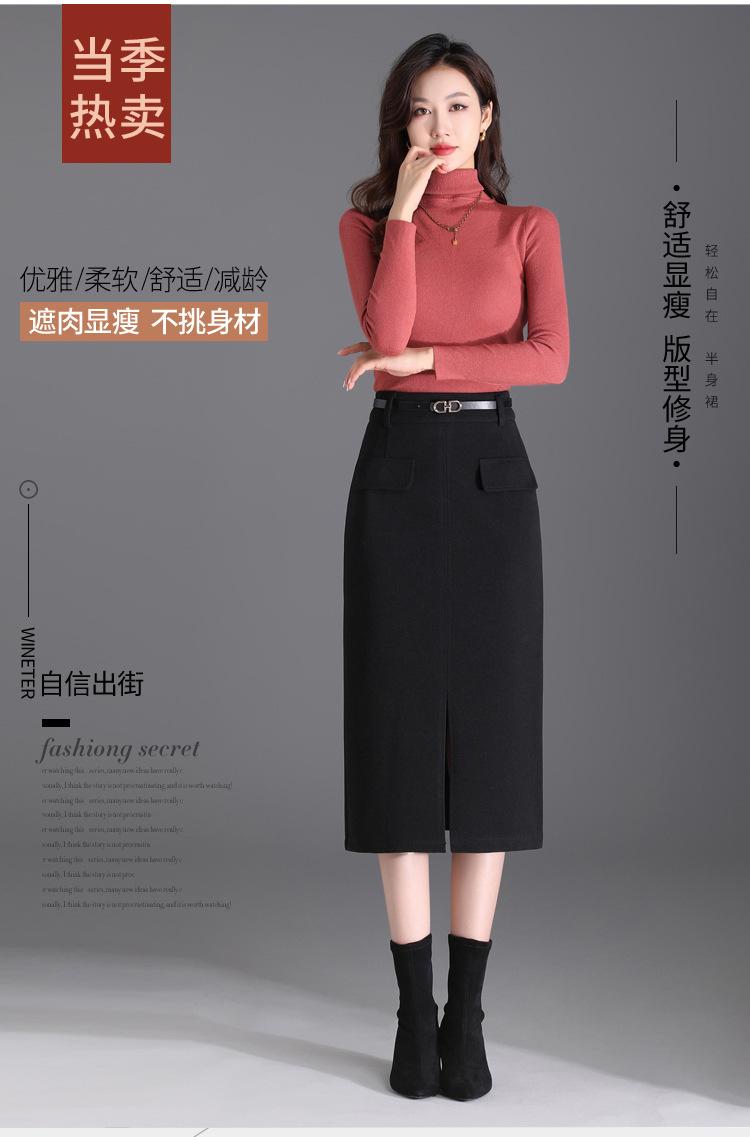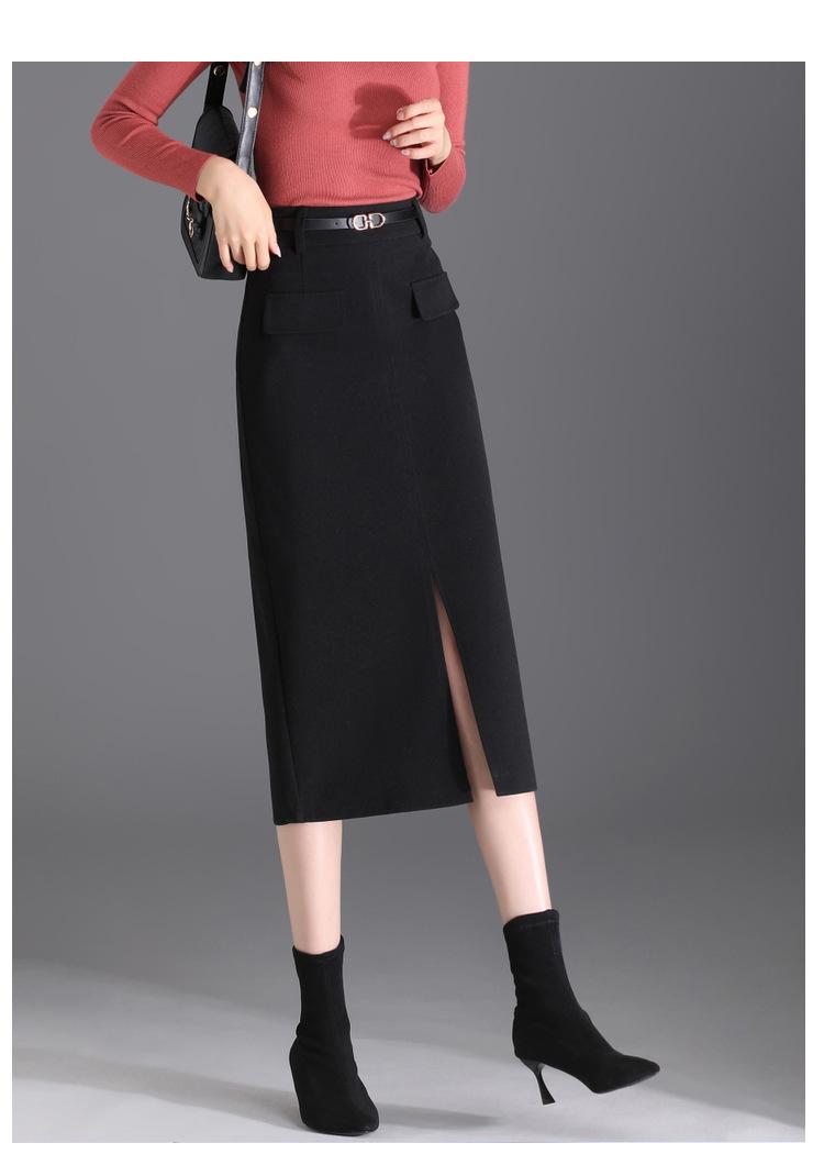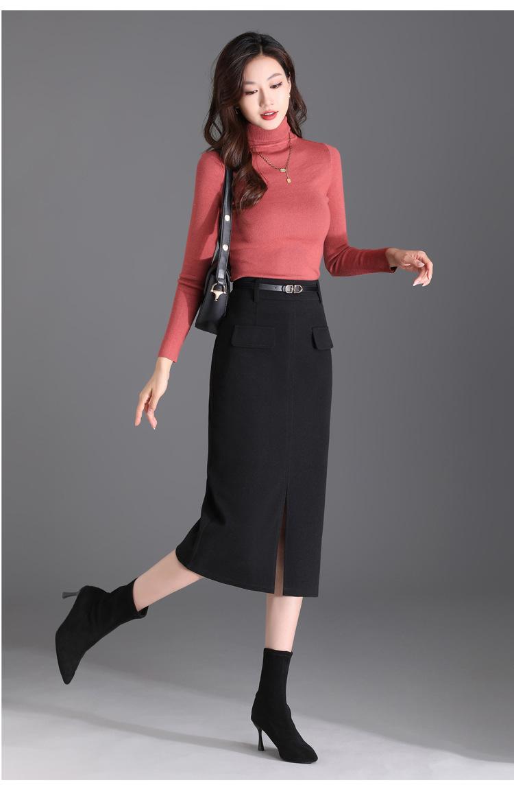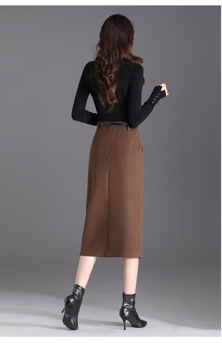 Falda de Lana a la Moda Cubrecaderas para Mujer 2025 Otoño e Invierno Nuevo Estilo Coreano Cintura Alta Recta Profesional de un Paso Largo Medio