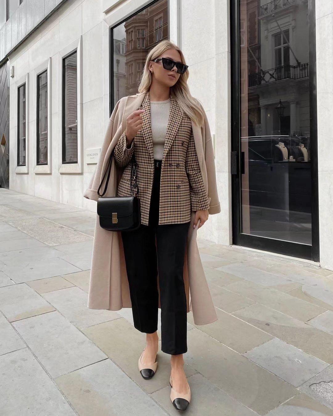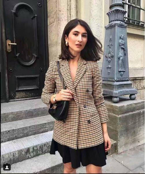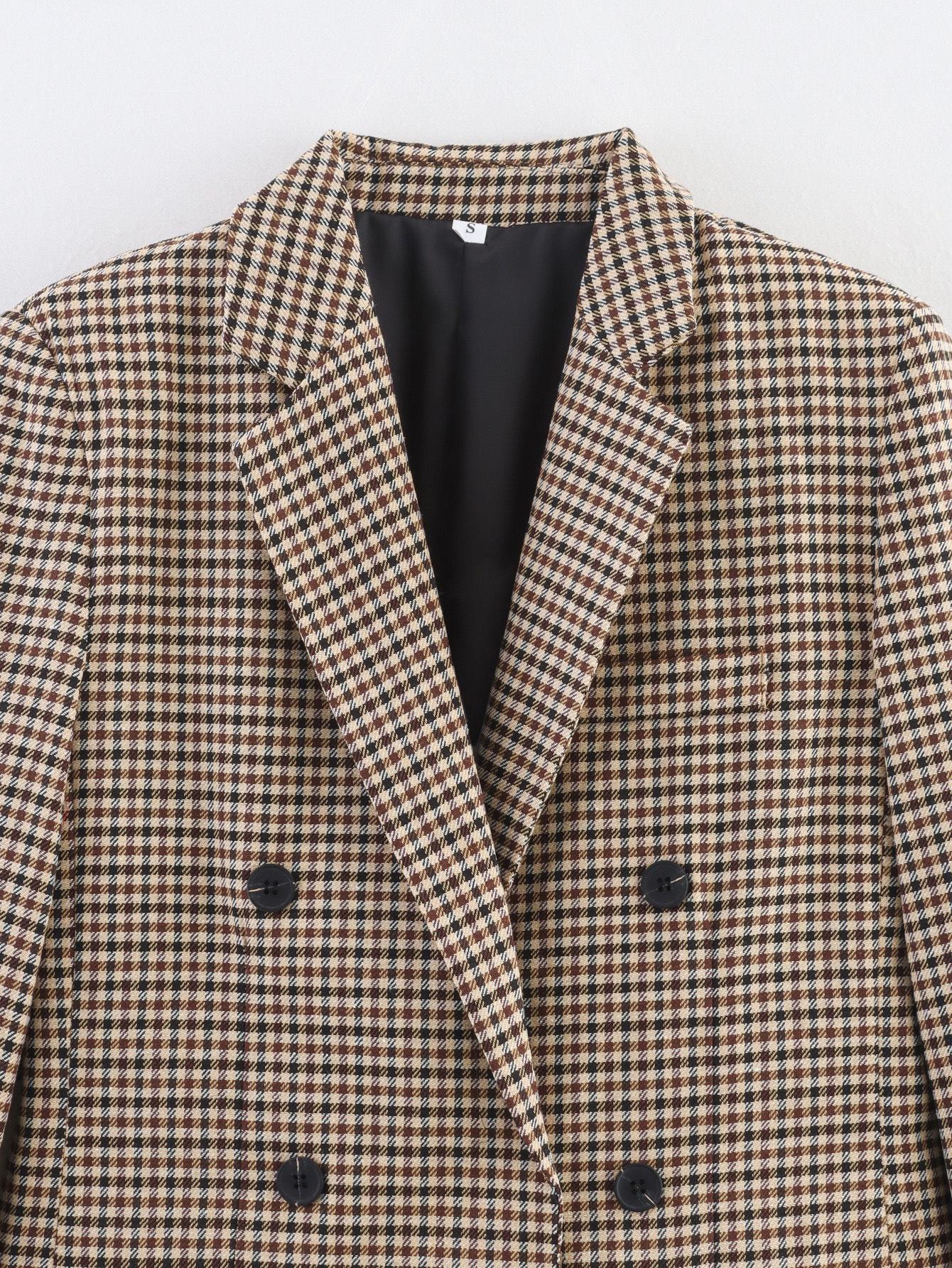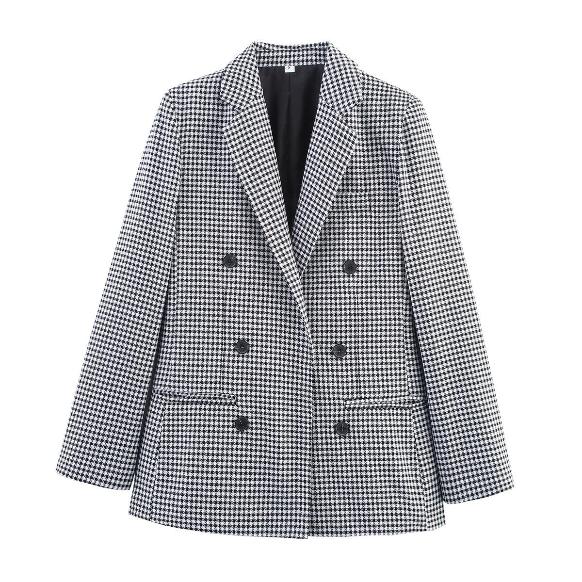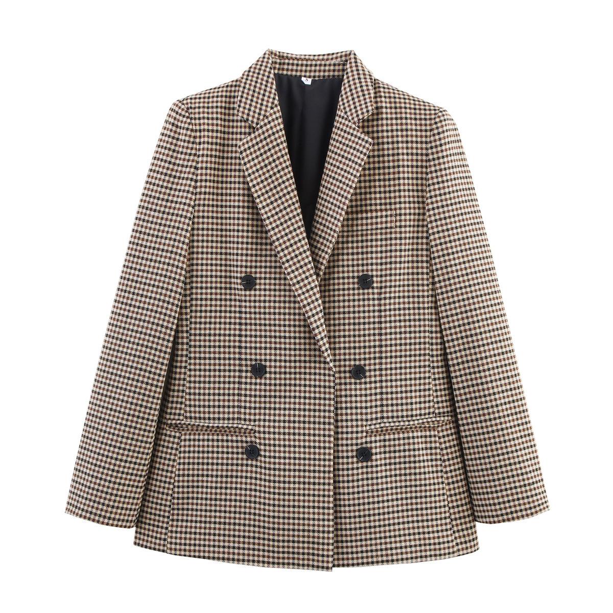 Venta al por Mayor Transfronteriza Estilo Europeo y Americano para Mujer Otoño Nuevo Chaqueta de Cuadros Doble Botonadura Traje Personalizado 2025 Top 5 Colores