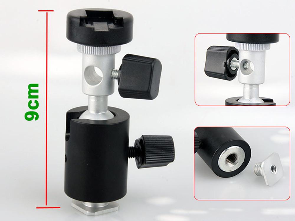 Diseño de aluminio fundido bien hecho, rótula suave, múltiples accesorios se pueden quitar, el estilo de interfaz en la parte superior se puede cambiar, hay interfaz de tornillo 1/4 e interfaz de zapata (no apto para flash Sony), y hay un casquillo especial para paraguas reflectante, que se puede usar para instalar flash, paraguas reflectante y cámara.