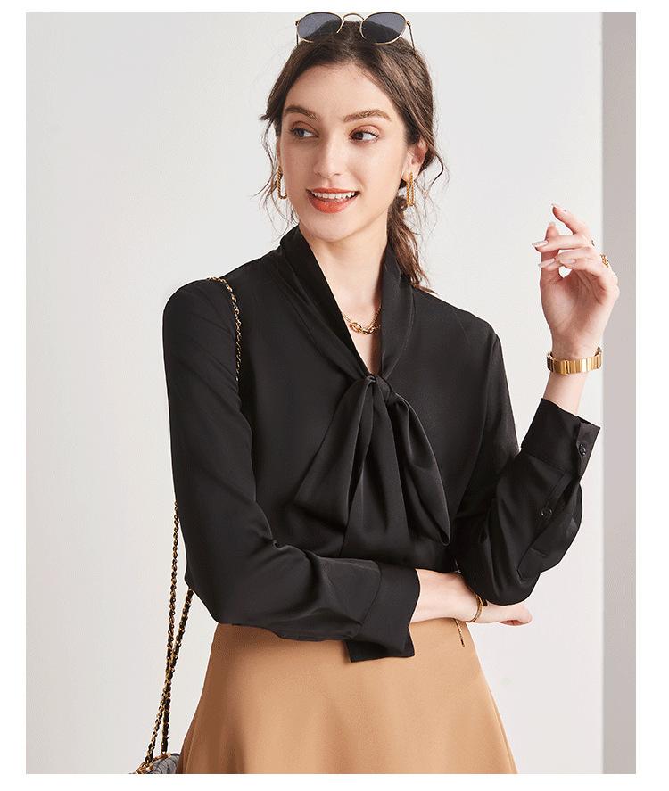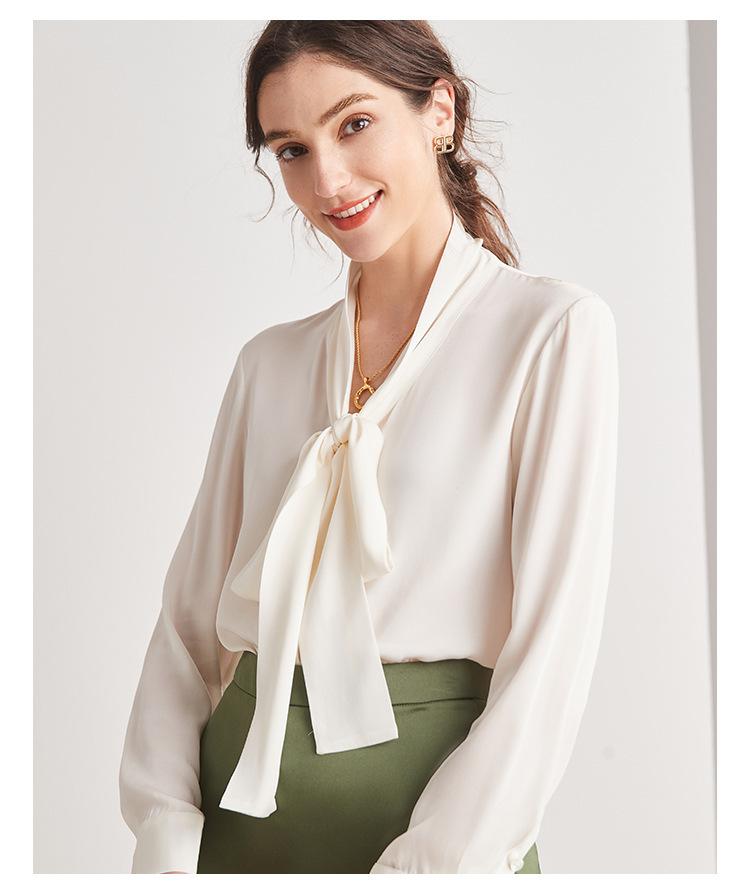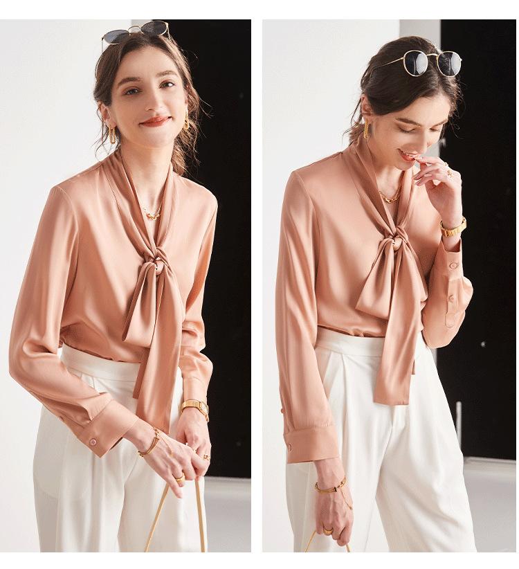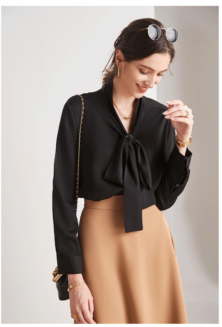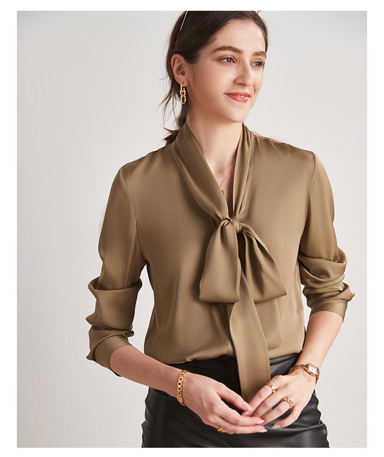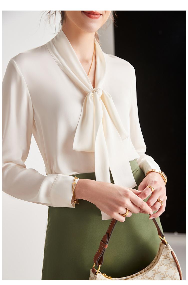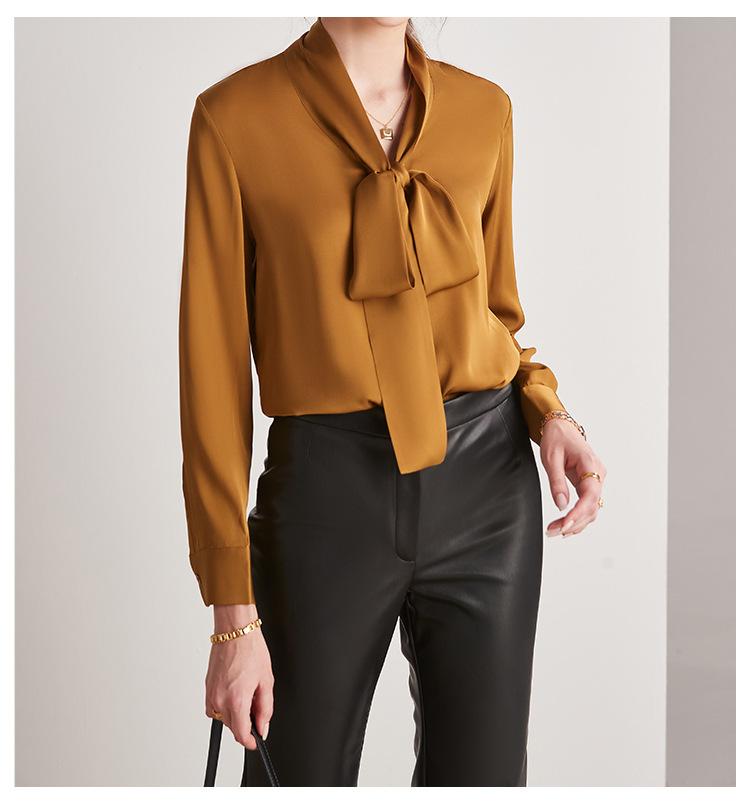 Camisa de Seda para Mujer Primavera y Verano 2025 Elegante Camisa de Seda de Morera de Manga Larga Nueva Blusa Niche para Viajera con Cordones