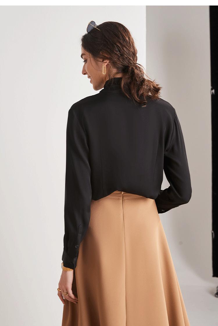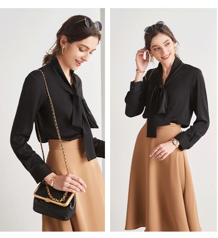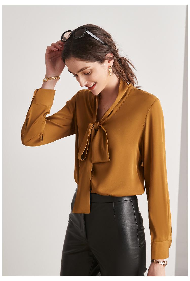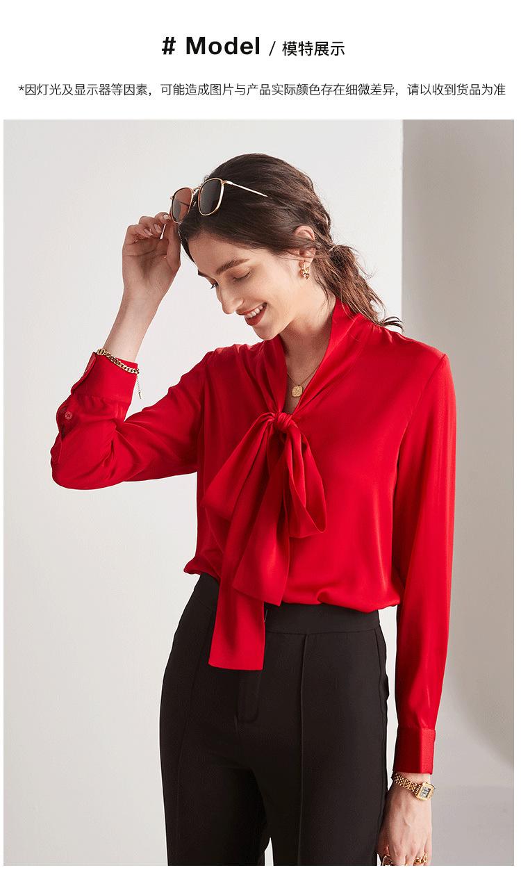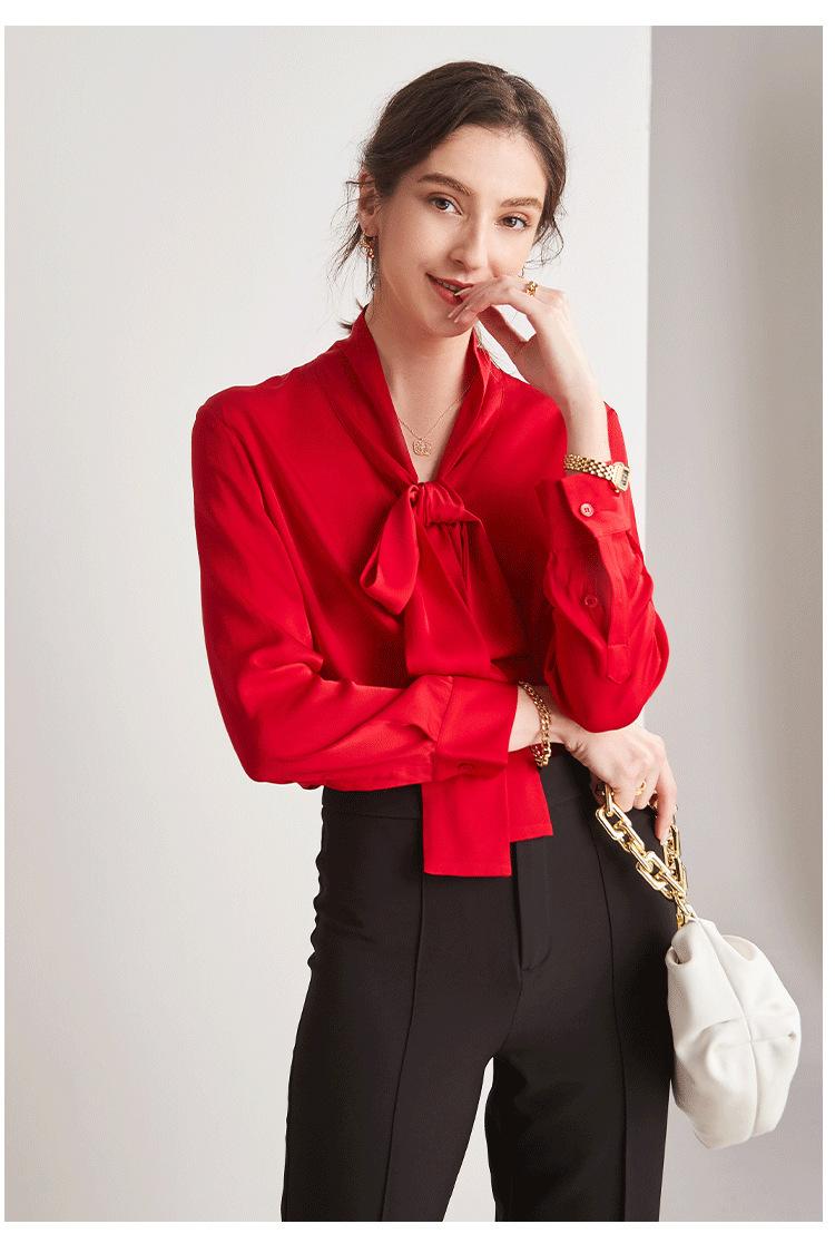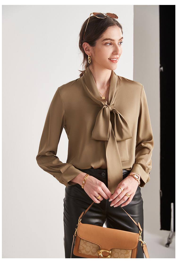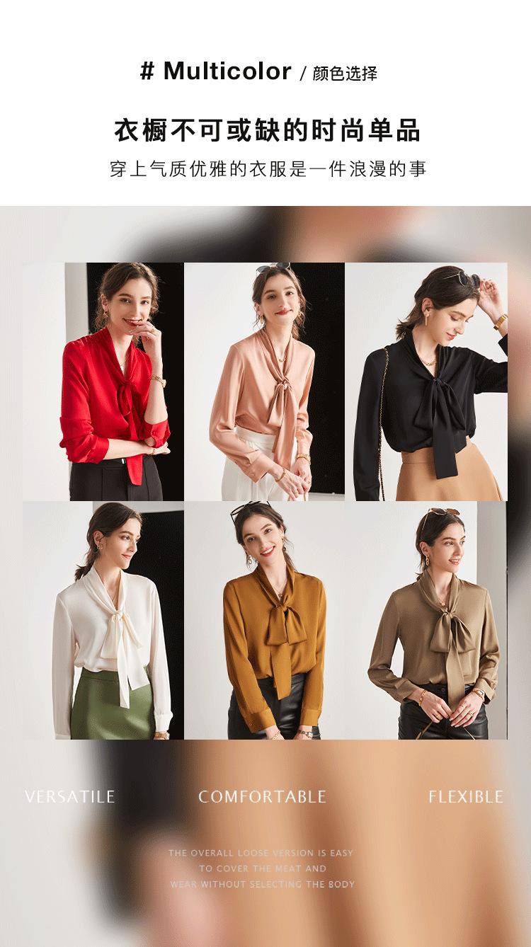 Camisa de Seda para Mujer Primavera y Verano 2025 Elegante Camisa de Seda de Morera de Manga Larga Nueva Blusa Niche para Viajera con Cordones