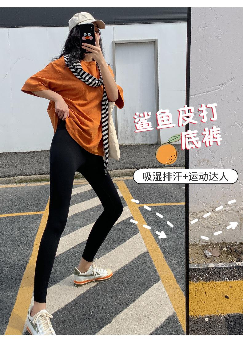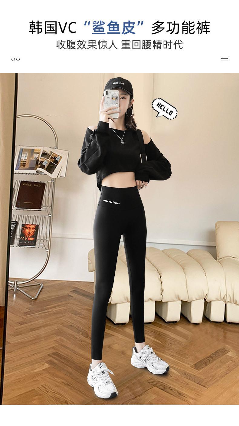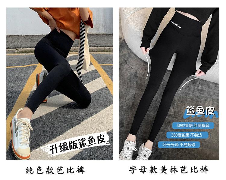 Pantalones de tiburón de primavera y verano, leggings finos de piel de tiburón, ropa exterior para mujer, pantalones de yoga negros con cintura alta que contraen el vientre, pantalones Barbie recortados