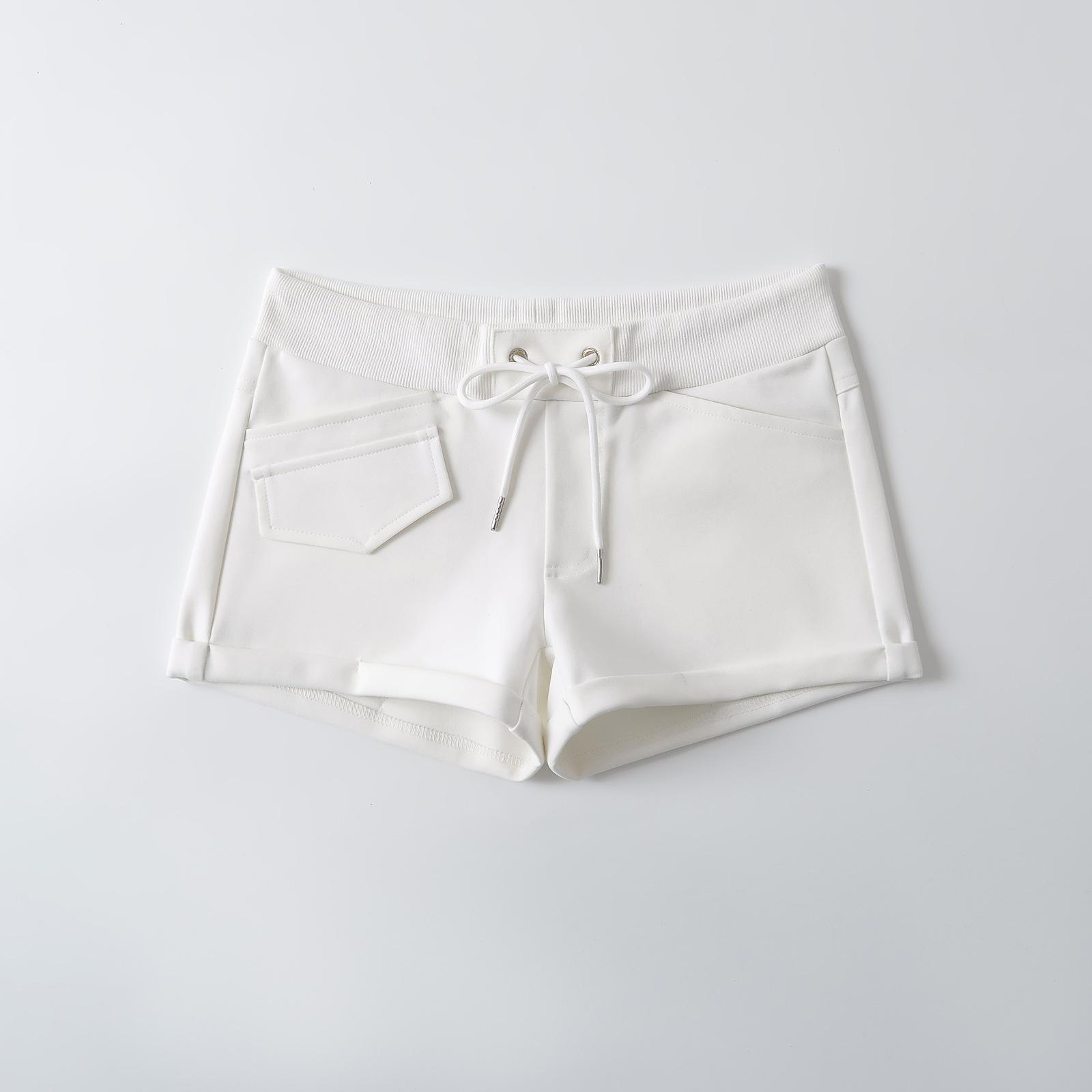 Pantalones cortos blancos de pierna ancha para mujer, novedad de verano 2024, pantalones cortos deportivos casuales de cintura baja con cordón para chica sexy, pantalones cortos adelgazantes