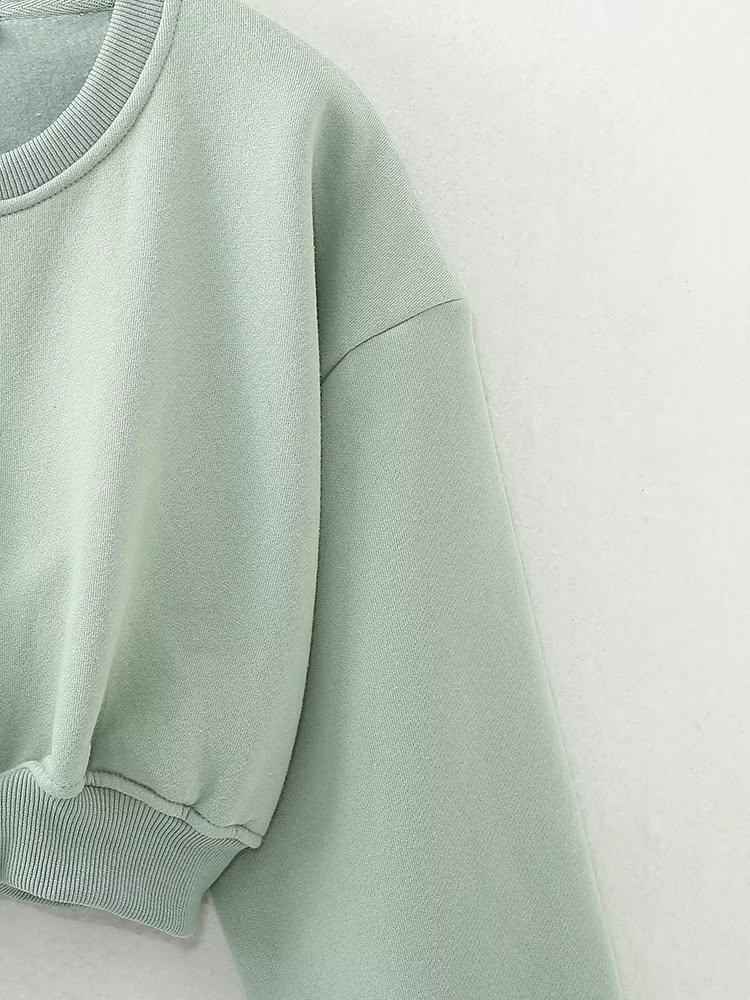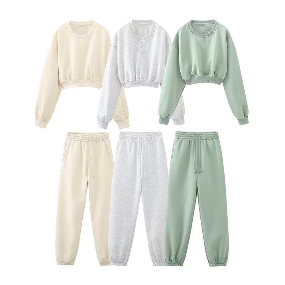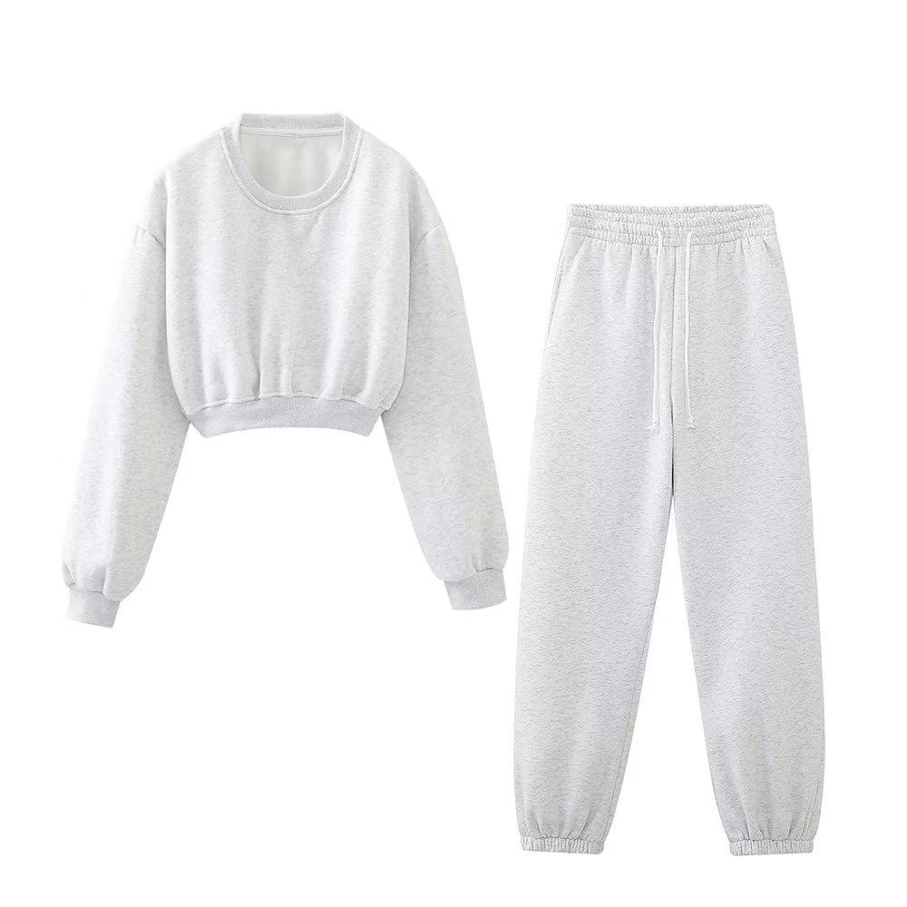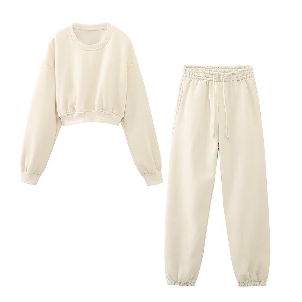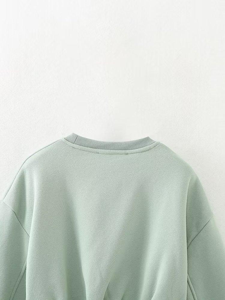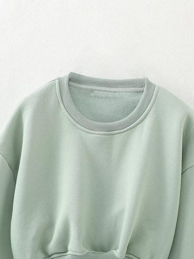 Jersey de otoño 2023 con cordones de color liso para mujer, cuello redondo, manga larga, pantalón corto, traje E73550