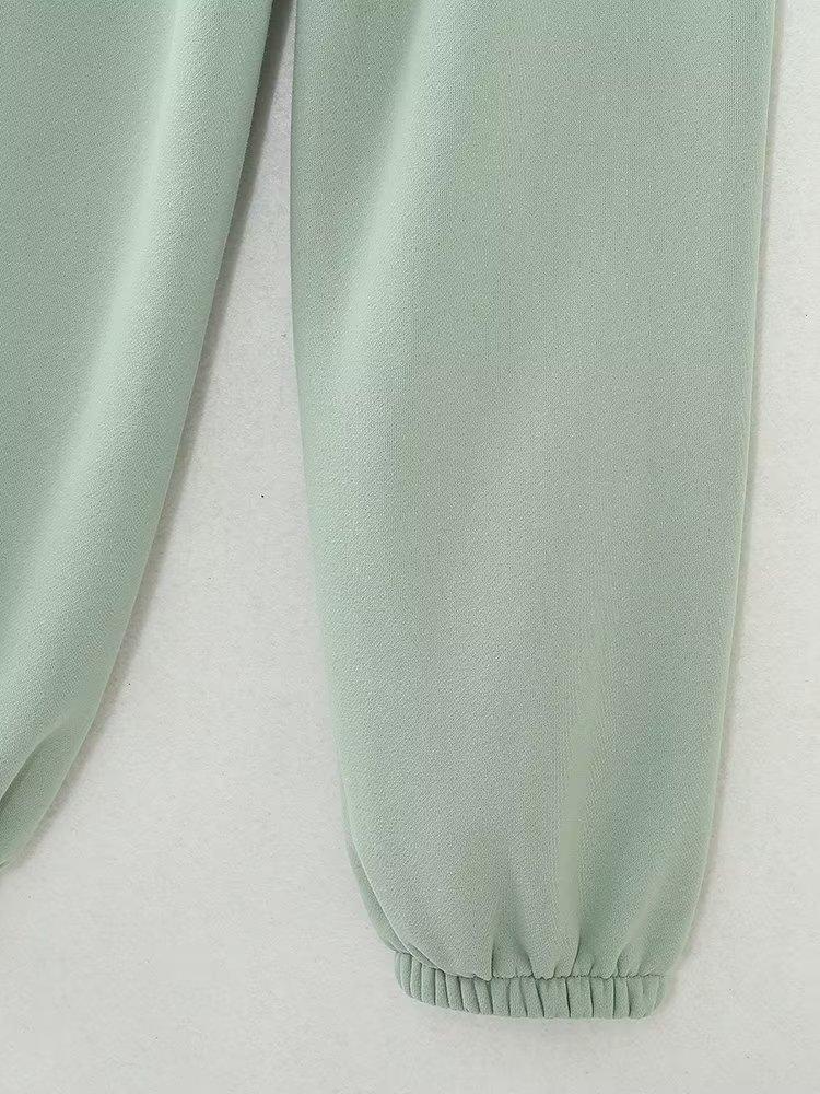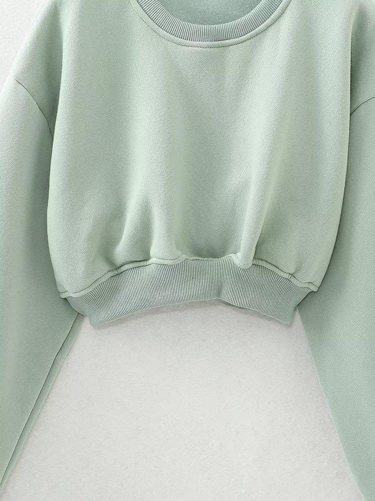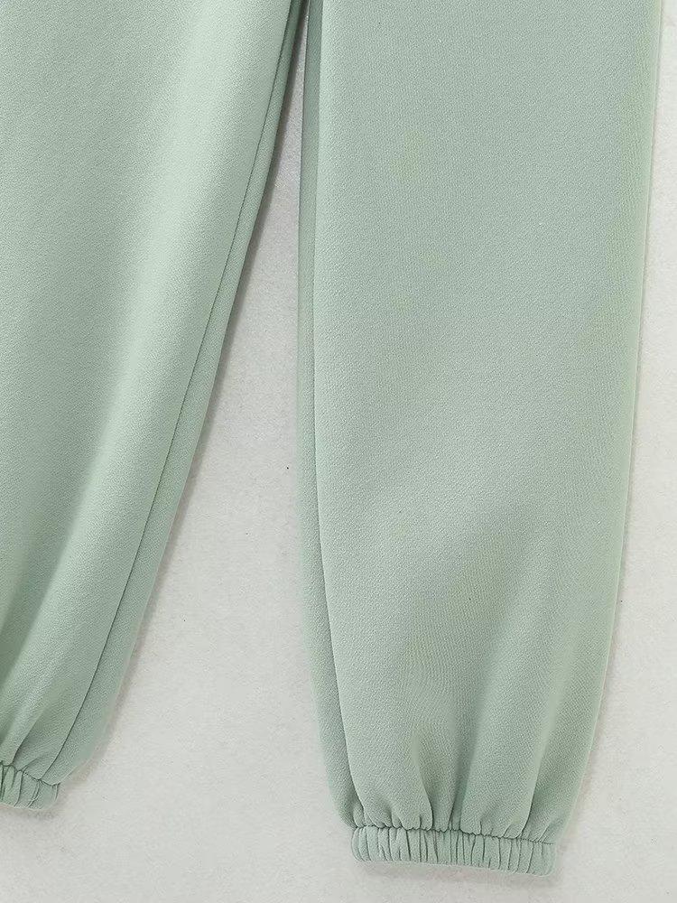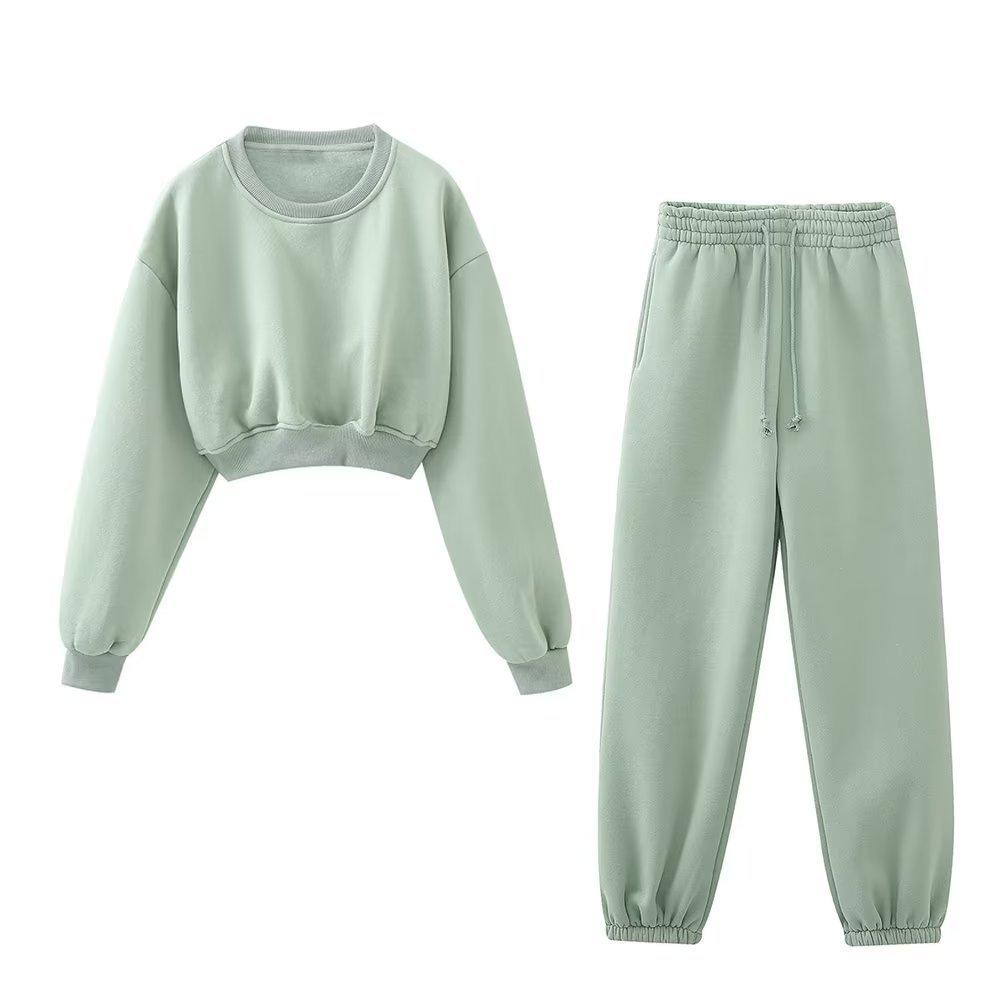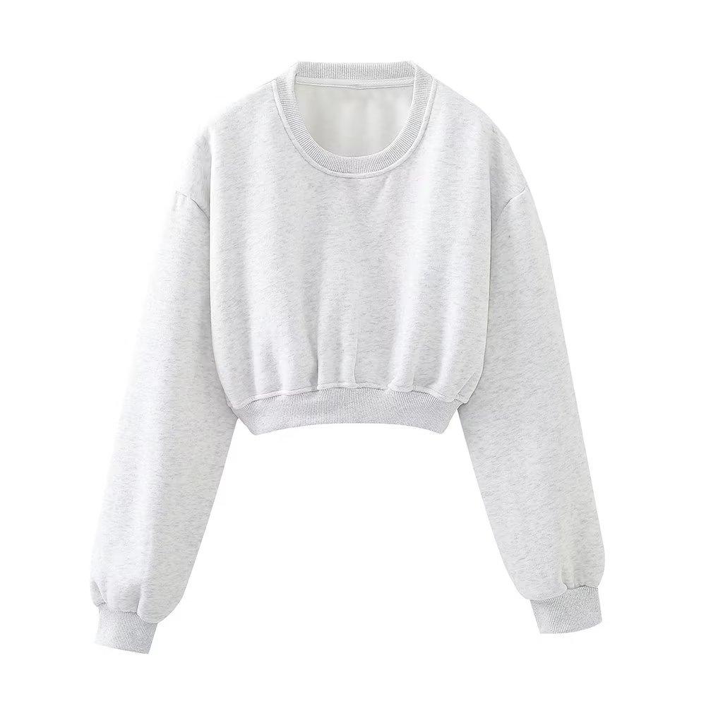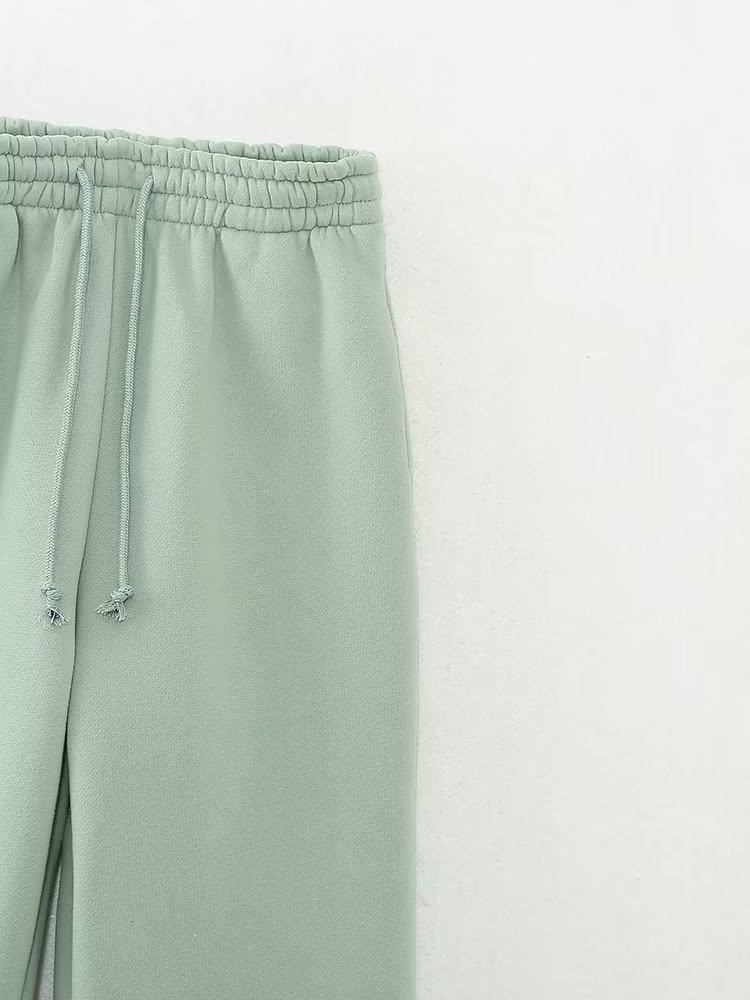 Jersey de otoño 2023 con cordones de color liso para mujer, cuello redondo, manga larga, pantalón corto, traje E73550