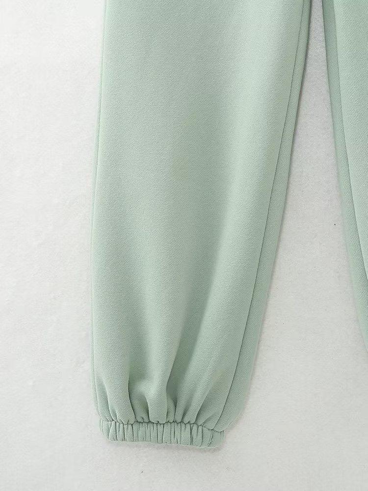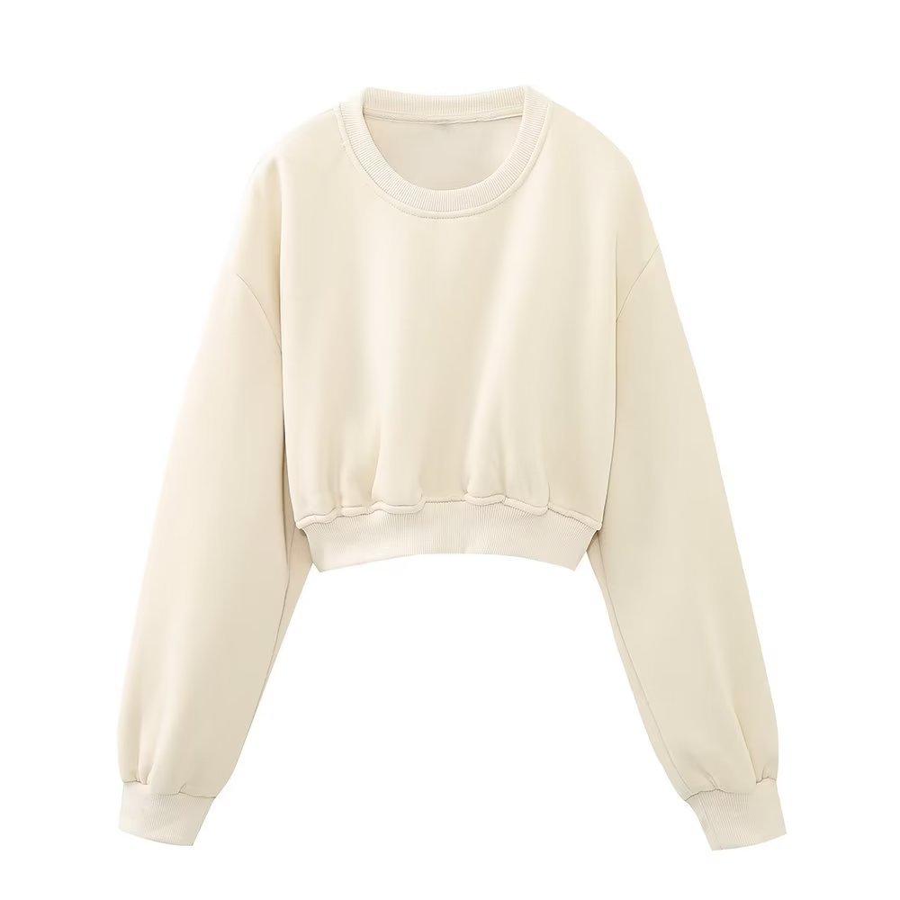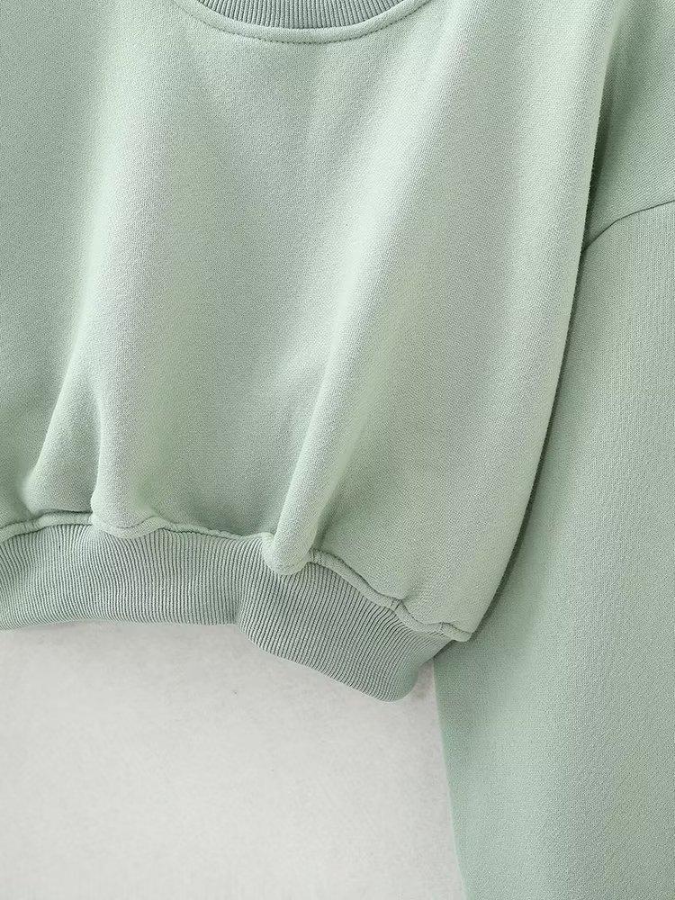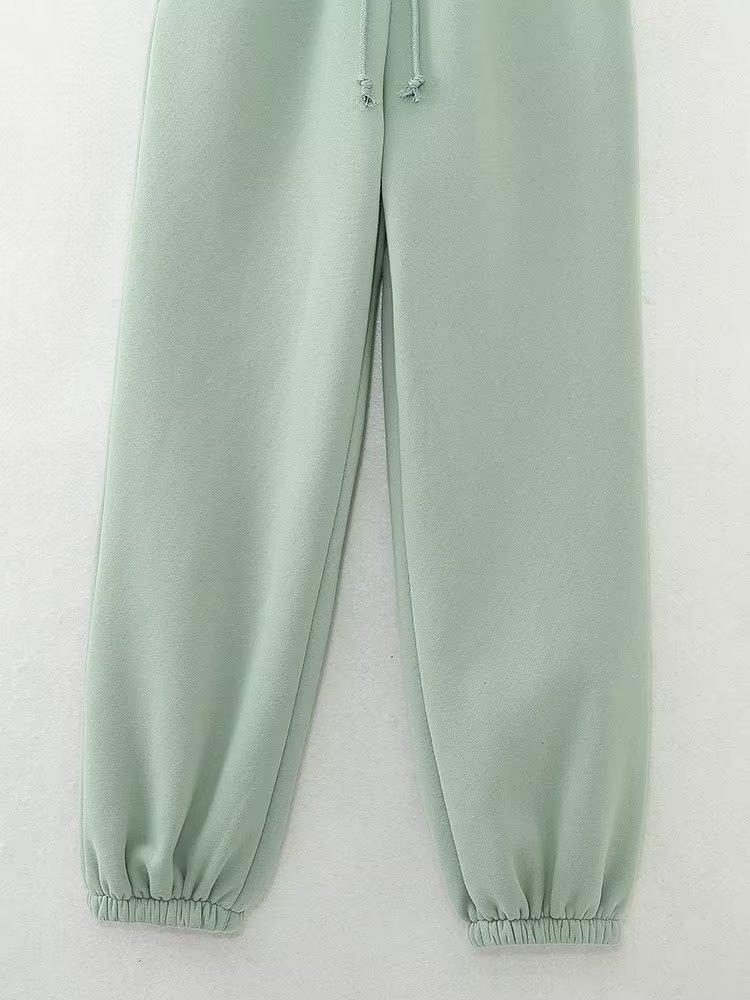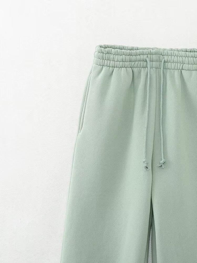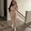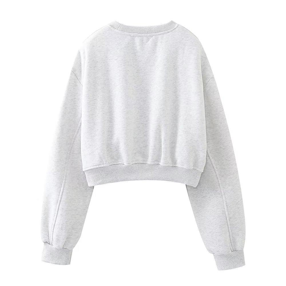 Jersey de otoño 2023 con cordones de color liso para mujer, cuello redondo, manga larga, pantalón corto, traje E73550