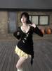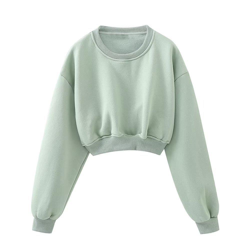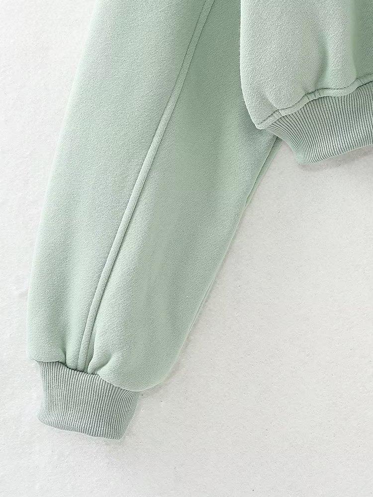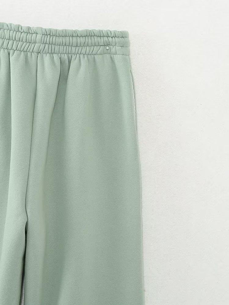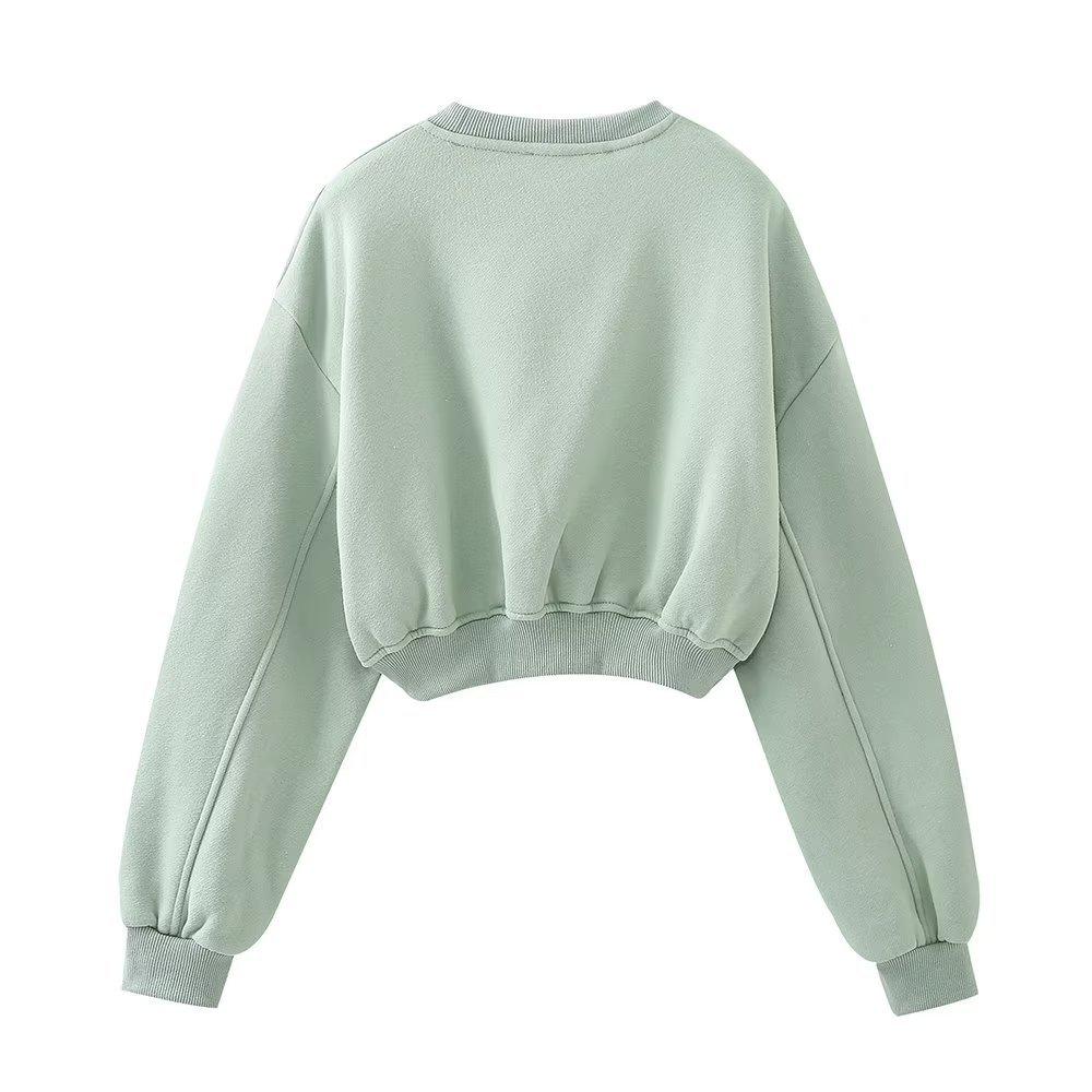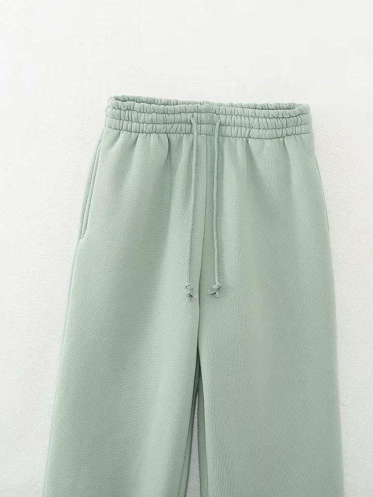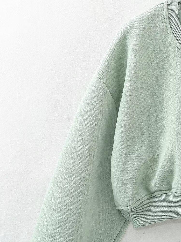 Jersey de otoño 2023 con cordones de color liso para mujer, cuello redondo, manga larga, pantalón corto, traje E73550
