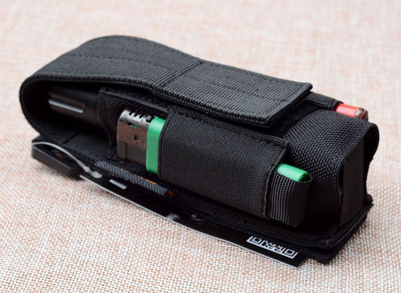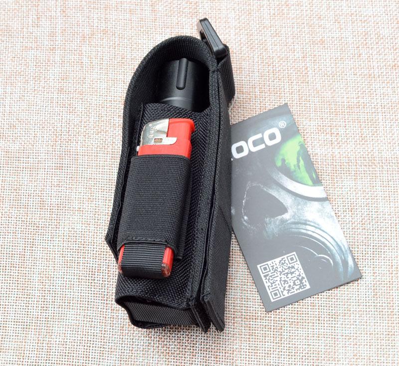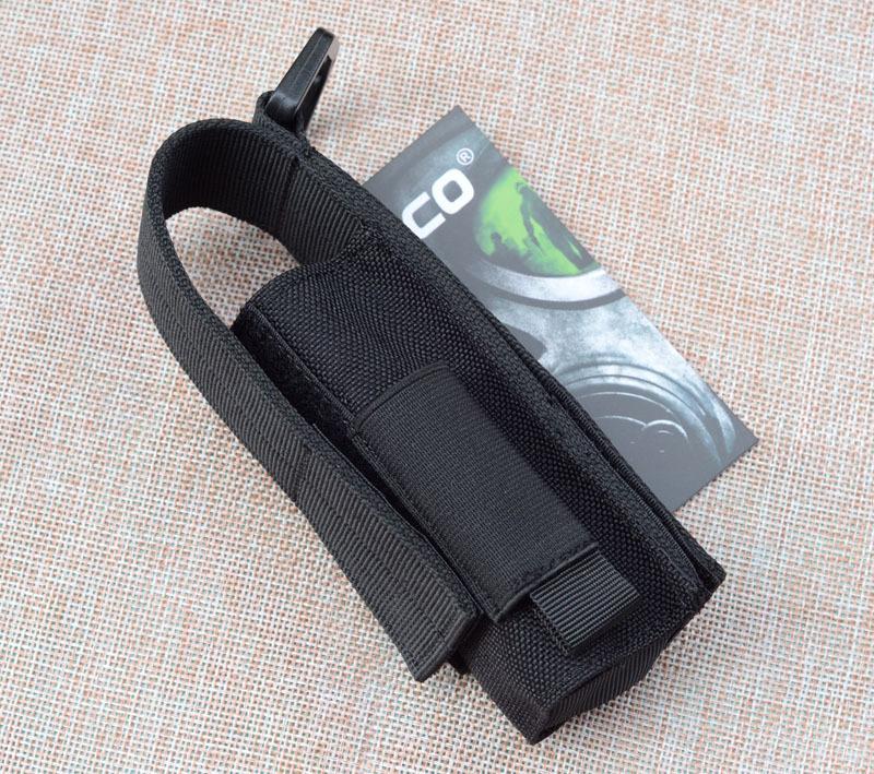 Porta linterna táctico universal, porta bastón con bolsillos para baterías en ambos lados, bolsa táctica para cinturón se puede colgar en mochila táctica