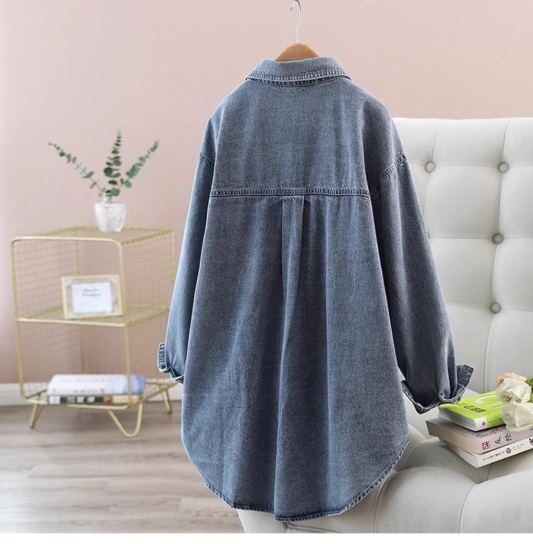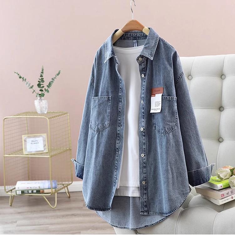 Camisa de Mezclilla de Largo Medio Primavera 2025 Nueva Holgada de Un Solo Botón Chaqueta de Mezclilla Casual Holgada de Manga Larga