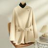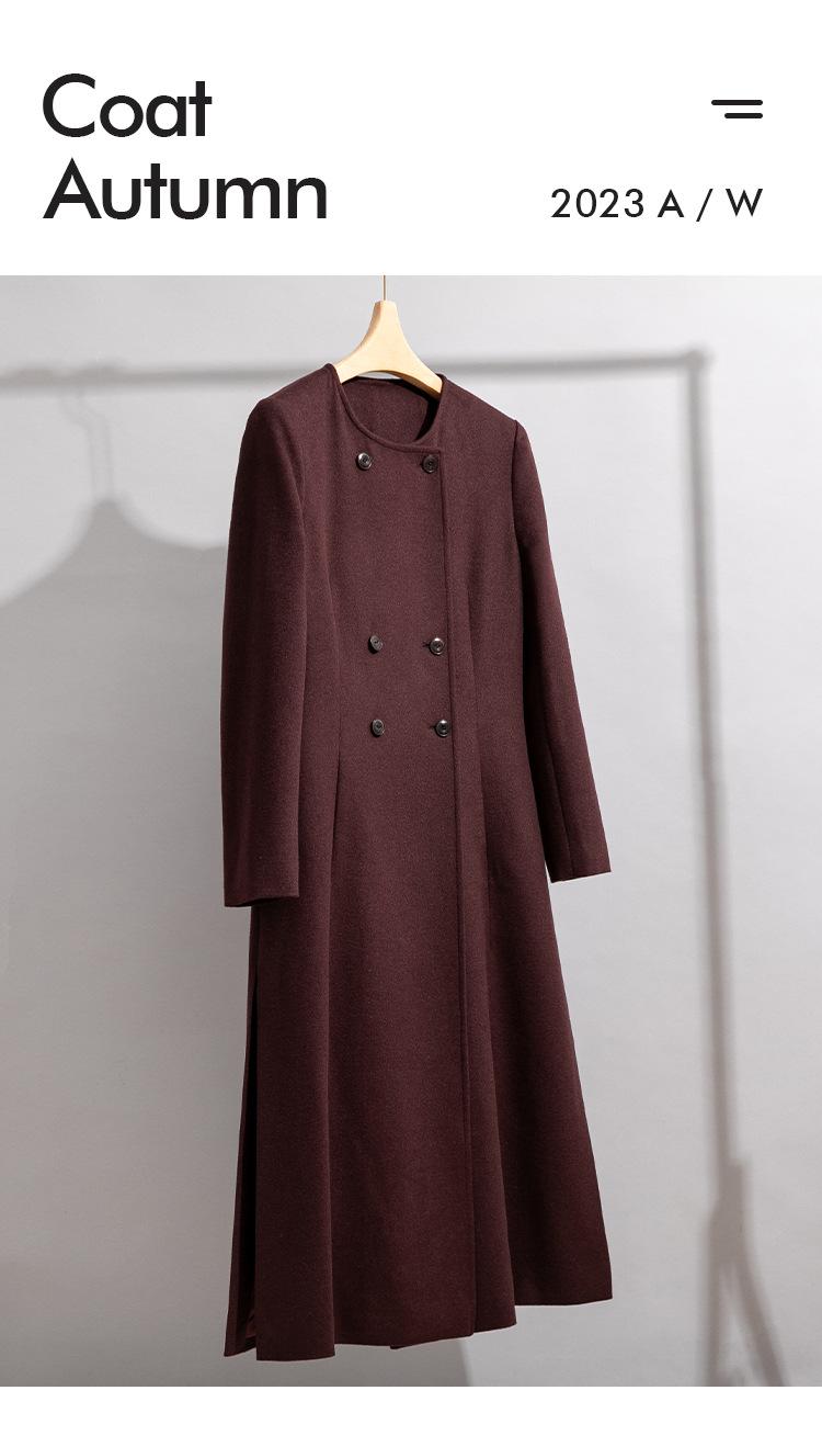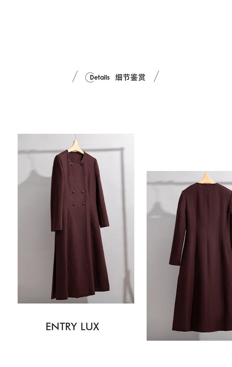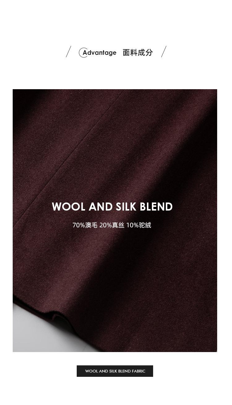 Abrigo de Lana de Seda para Mujer, Abrigo Elegante de Alpaca de Gama Alta de Largo Medio con Doble Botonadura para Otoño e Invierno