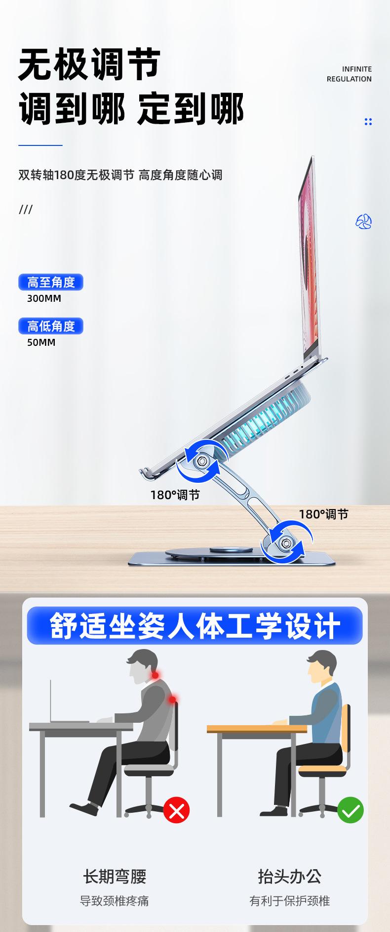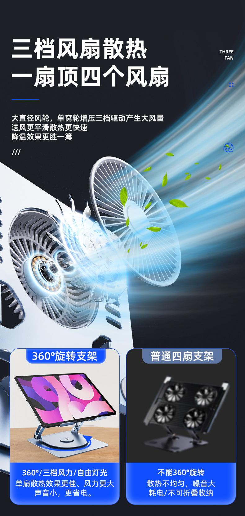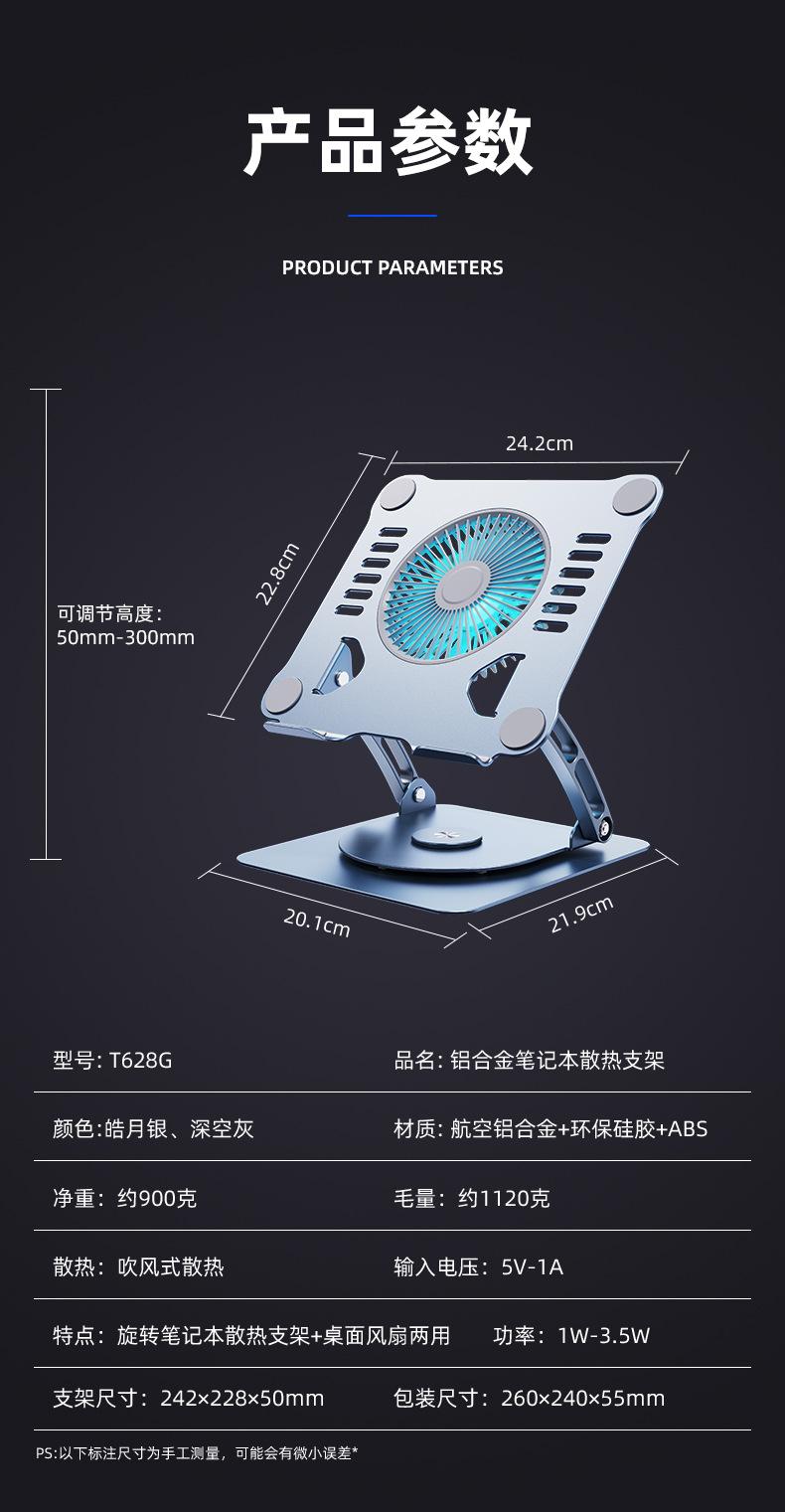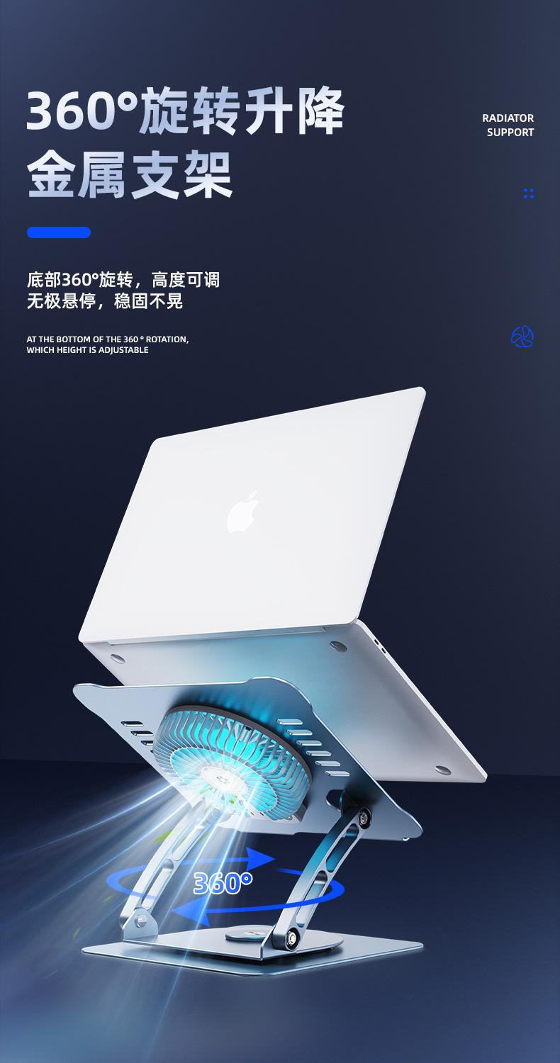 Nombre del producto: Soporte para computadora con ventilador de escritorio giratorio HZ22-1
