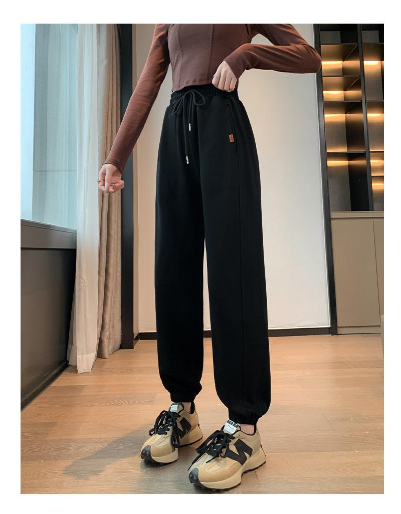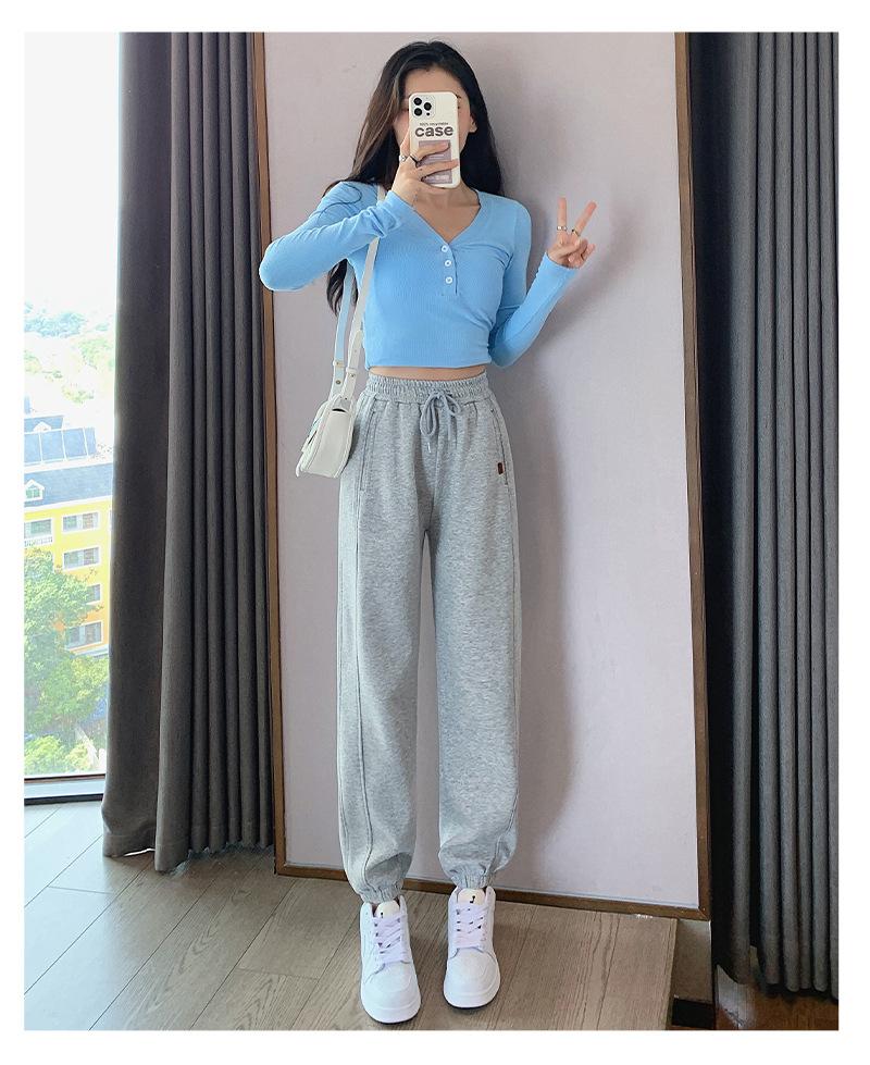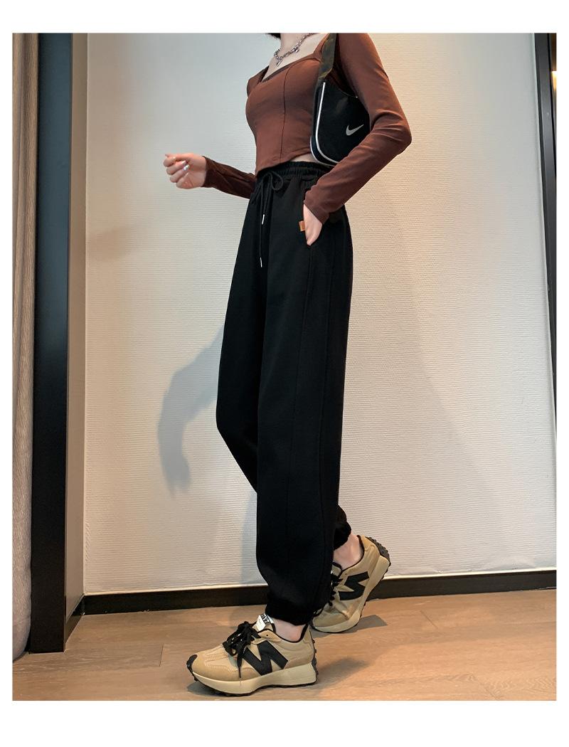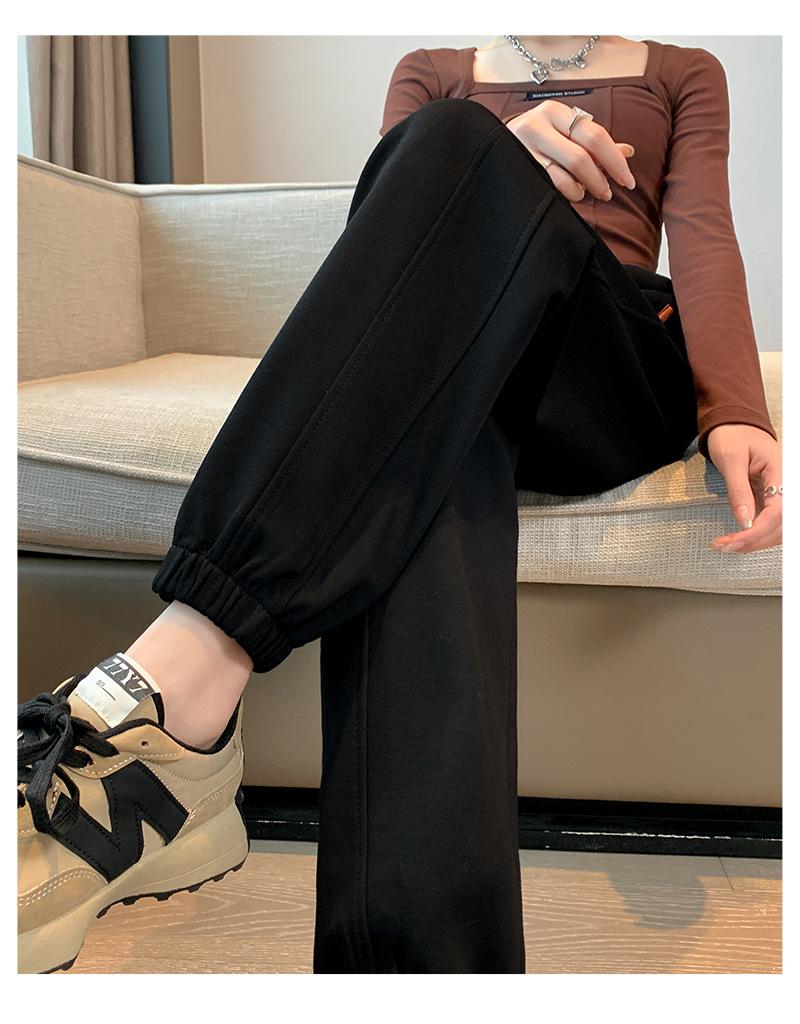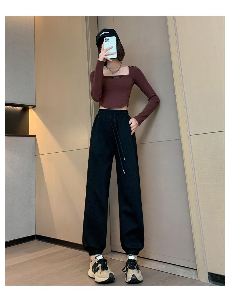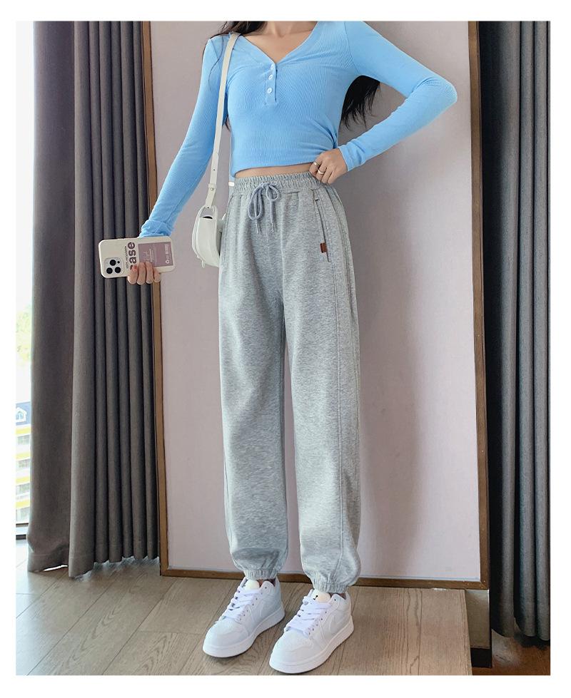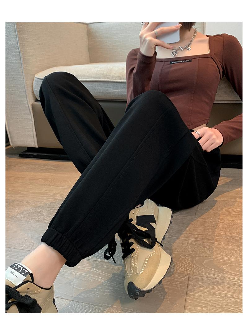Pantalones deportivos de otoño para mujer, nuevos pantalones americanos de cintura alta con costuras rectas y tobillos atados, pantalones casuales harén adelgazantes versátiles H910