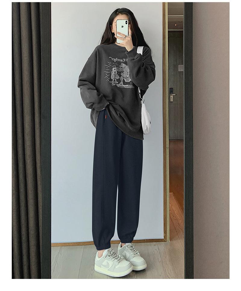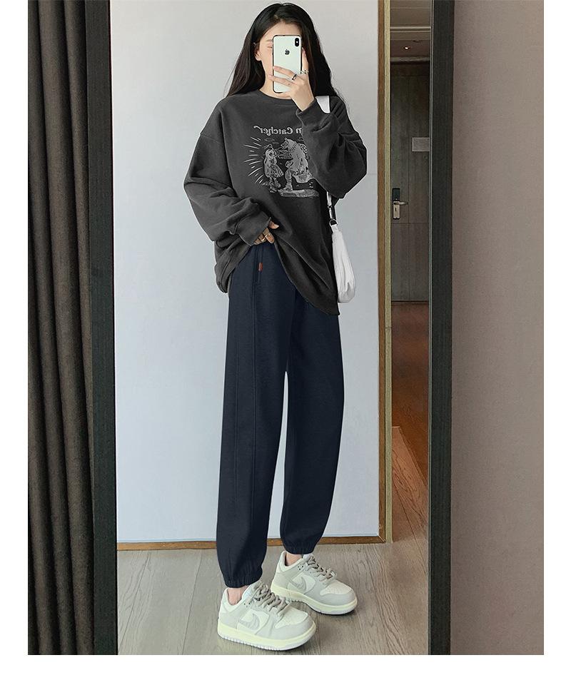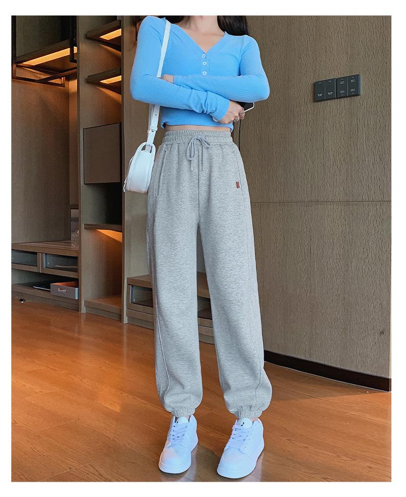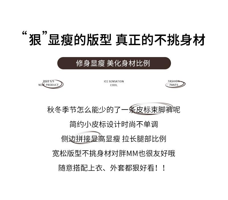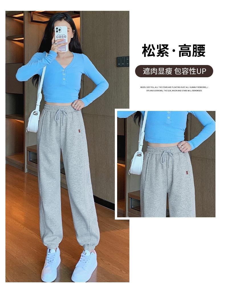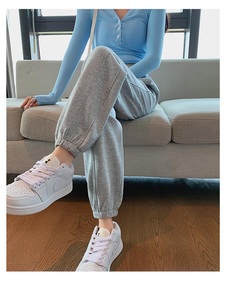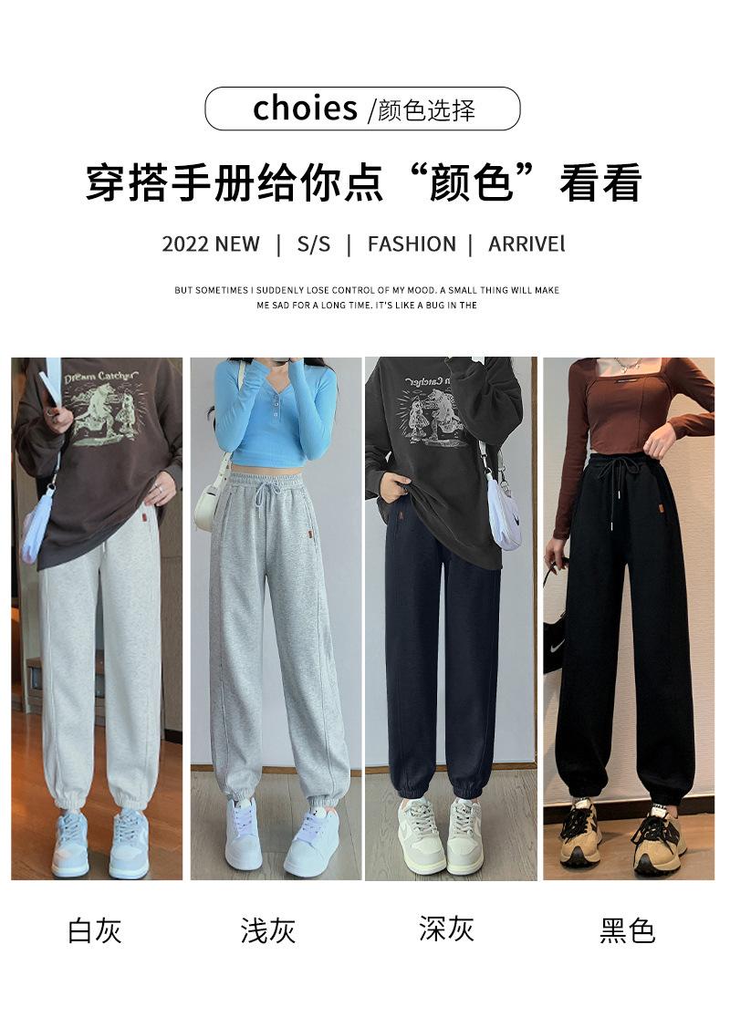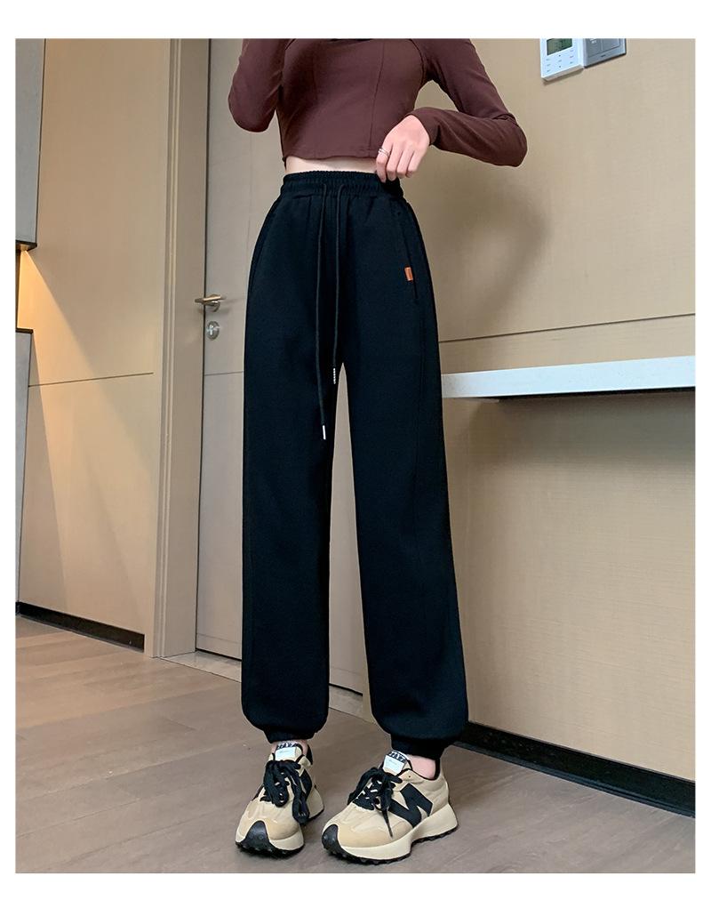 Pantalones deportivos de otoño para mujer, nuevos pantalones americanos de cintura alta con costuras rectas y tobillos atados, pantalones casuales harén adelgazantes versátiles H910
