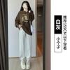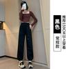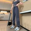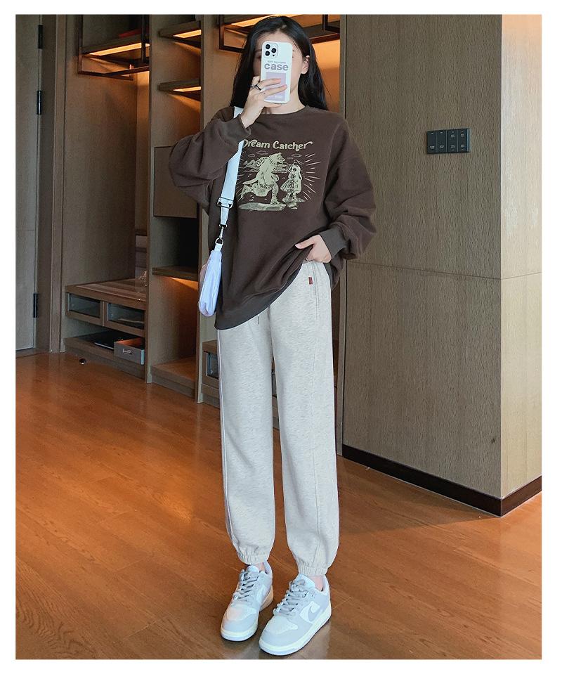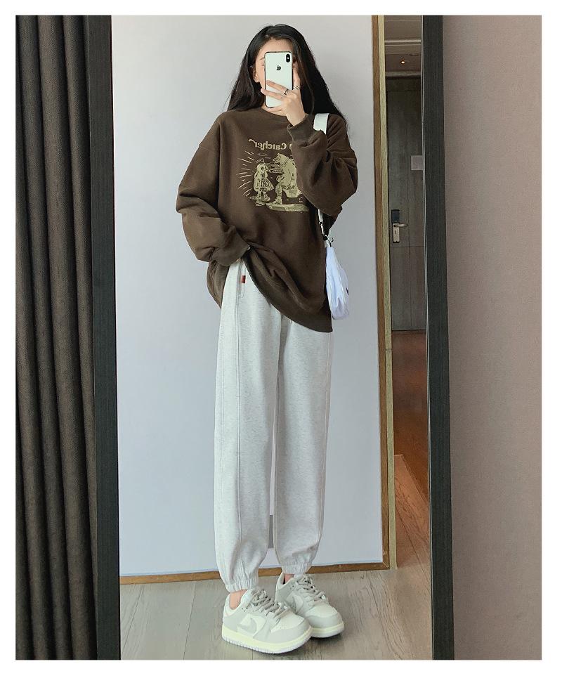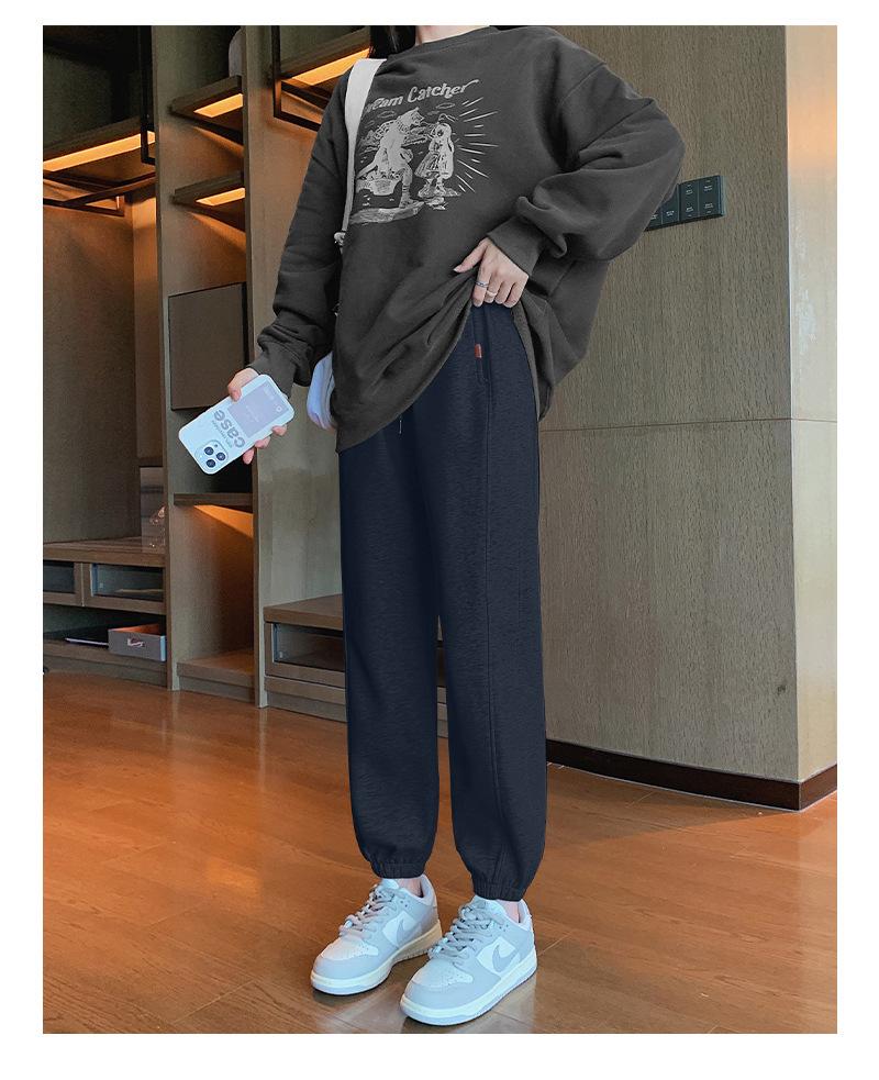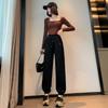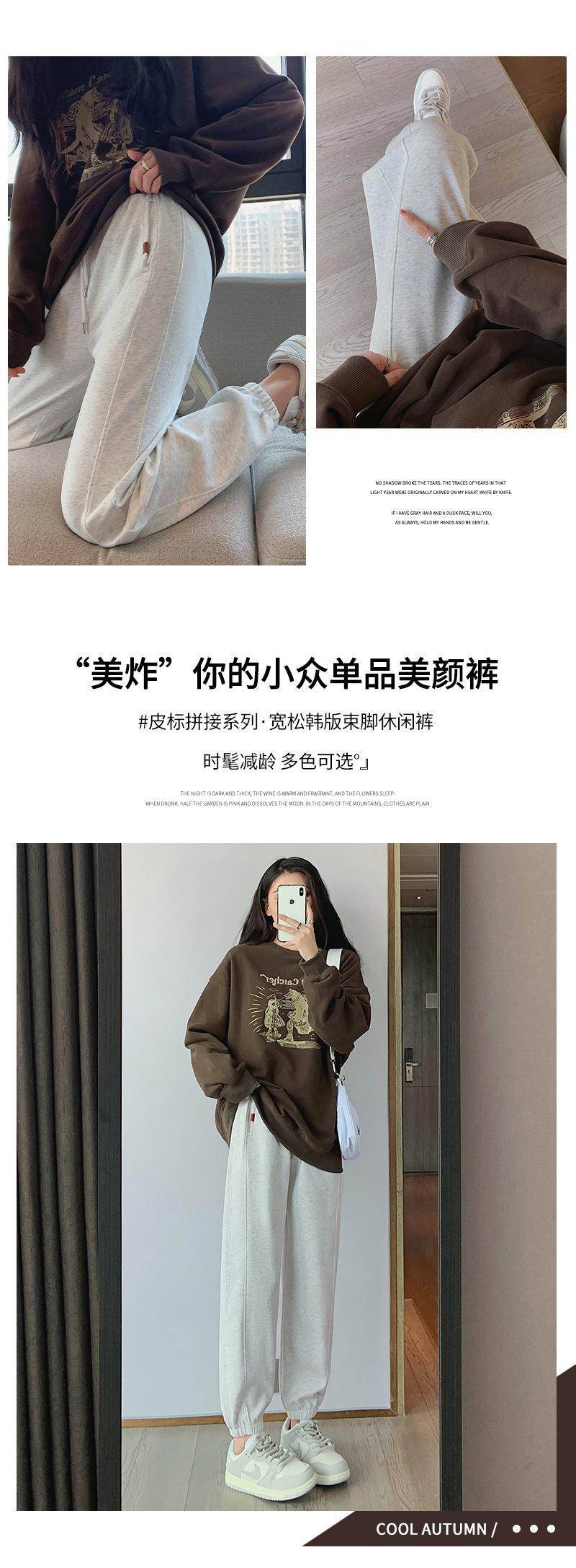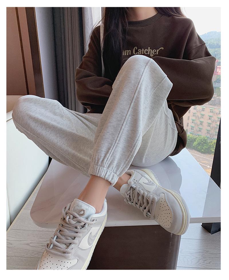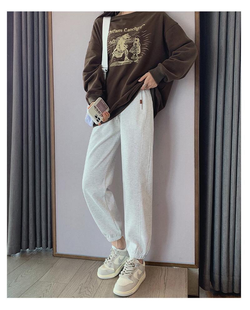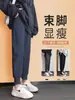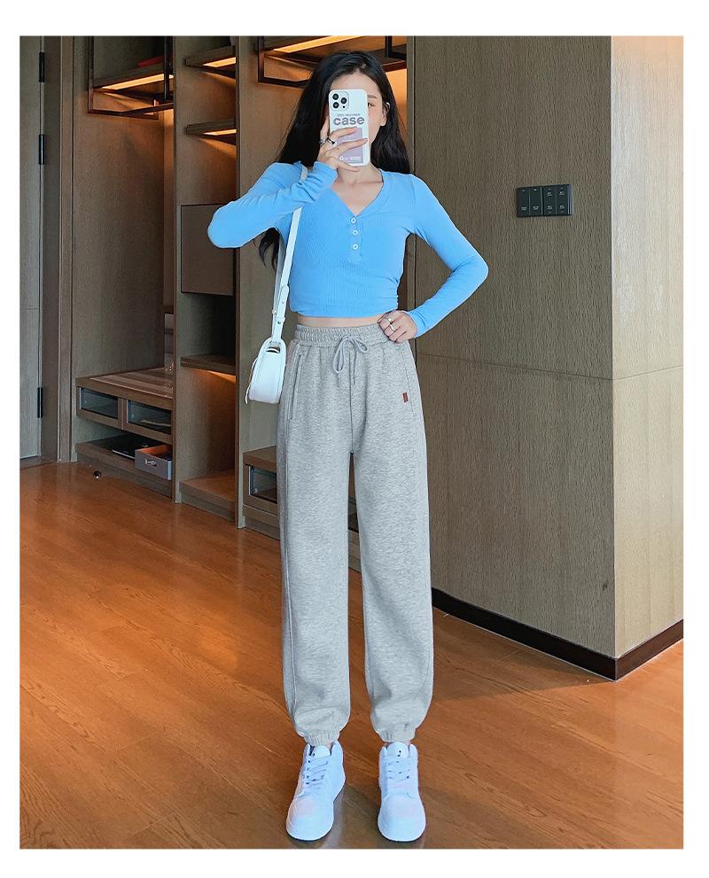 Pantalones deportivos de otoño para mujer, nuevos pantalones americanos de cintura alta con costuras rectas y tobillos atados, pantalones casuales harén adelgazantes versátiles H910