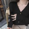 Suéter de Lana Estilo Coreano 2025 Cárdigan de Terciopelo Tejido para Mujer Primavera y Otoño Suelto Perezoso Corto Cuello en V Chaqueta Suéter Top
