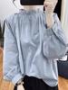 Camiseta de manga larga de algodón y lino con cuello de loto para mujer, estilo retro, holgada y con cuello de loto, para primavera y verano