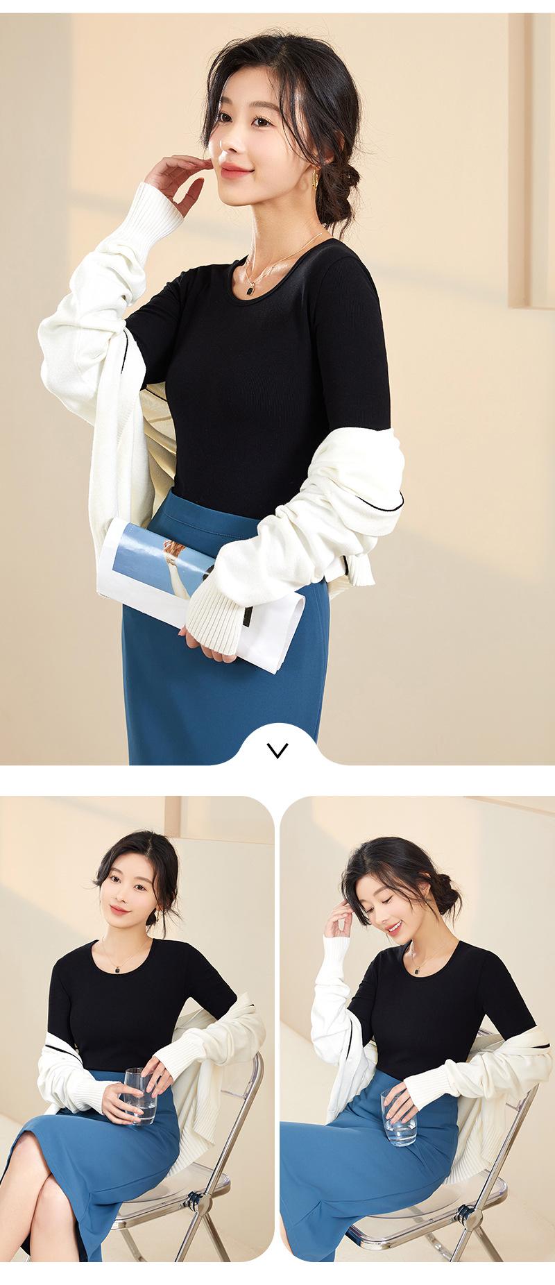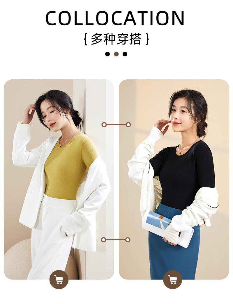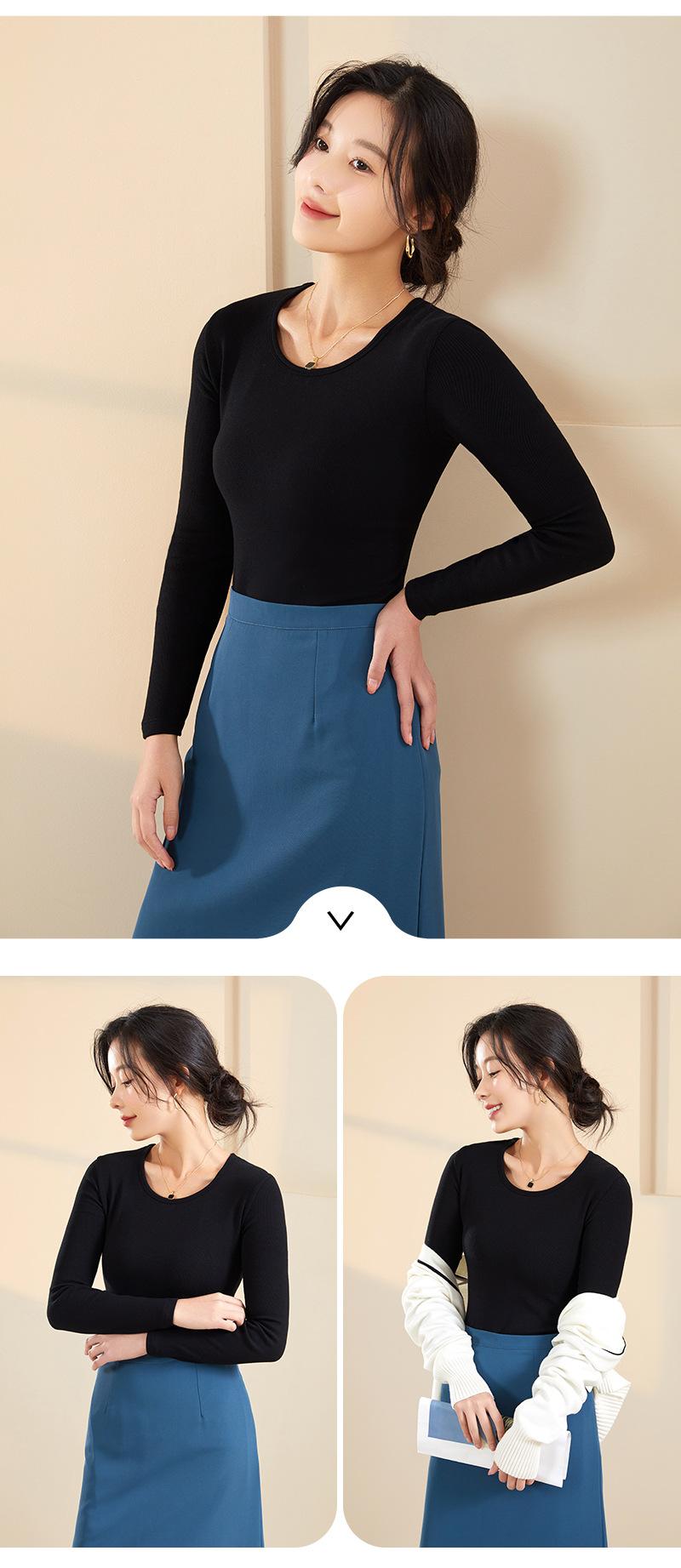 2023 nueva camisa de manga larga para mujer otoño e invierno estilo occidental suéter interior de manga larga cuello redondo suéter de primavera y otoño