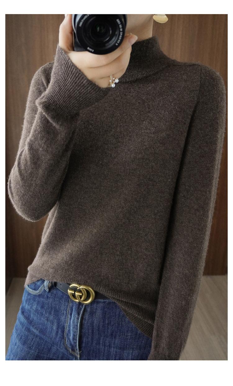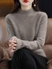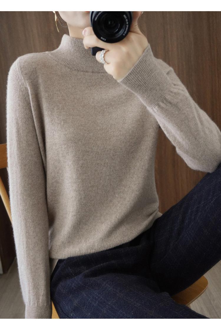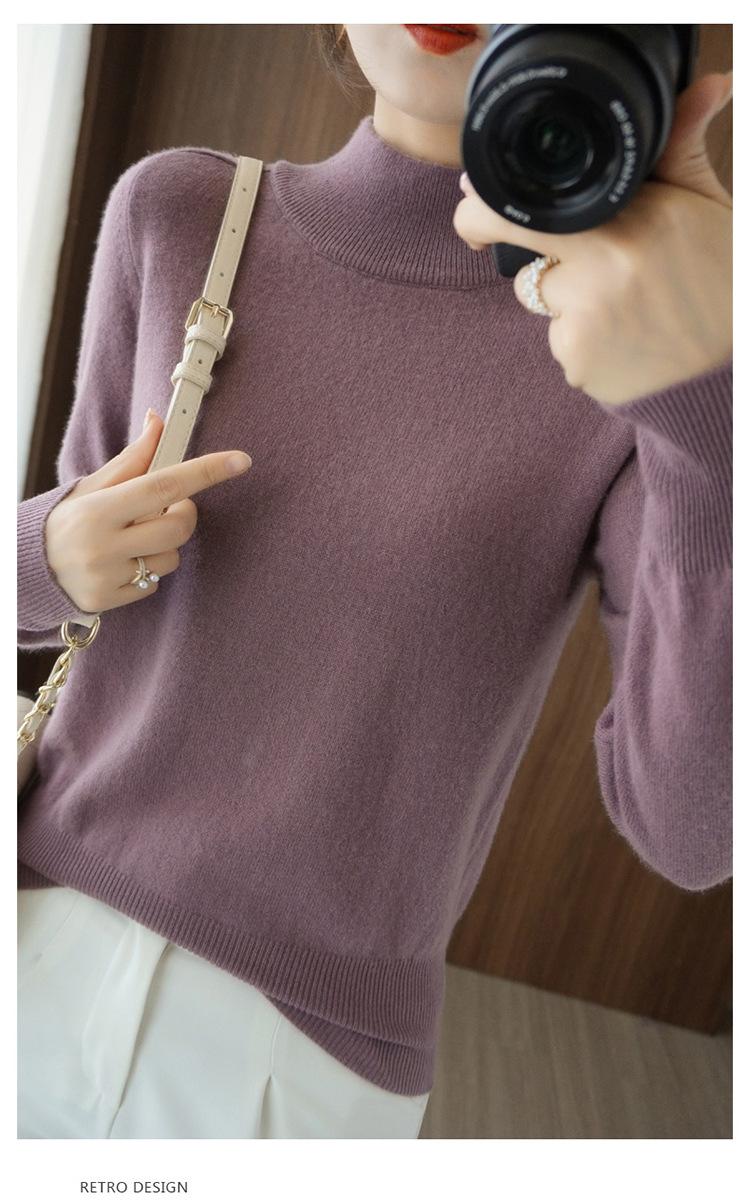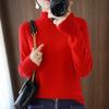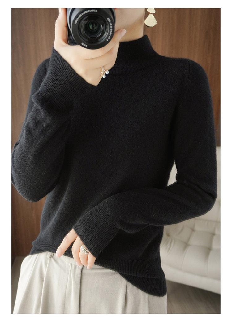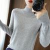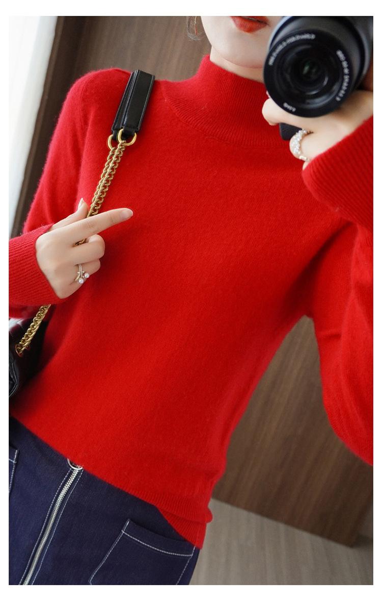 Otoño e Invierno Cuello Medio Alto Largo Medio Tejido Color Sólido Elegante Para Ir al Trabajo Jersey Rojo Lana Estilo Coreano Viscosa Camisa Base Manga Larga