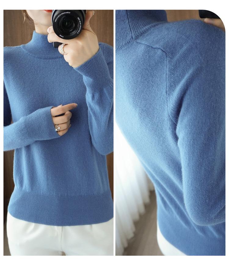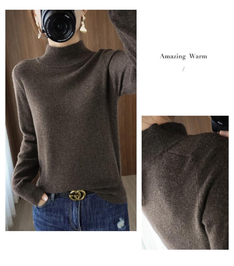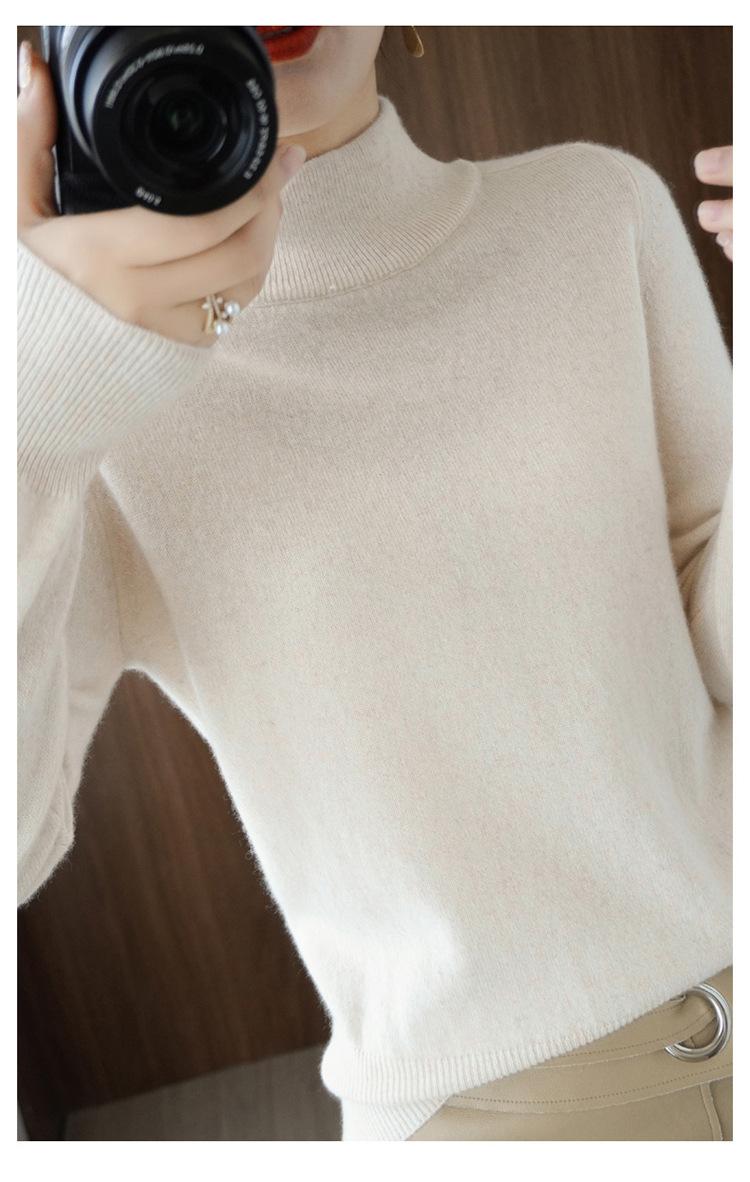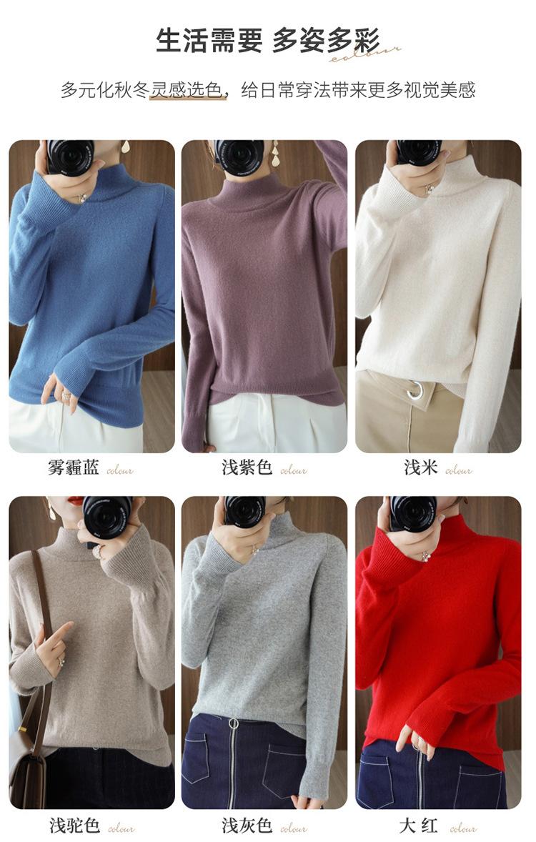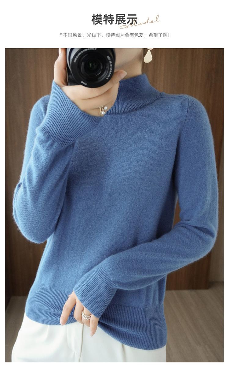 Otoño e Invierno Cuello Medio Alto Largo Medio Tejido Color Sólido Elegante Para Ir al Trabajo Jersey Rojo Lana Estilo Coreano Viscosa Camisa Base Manga Larga