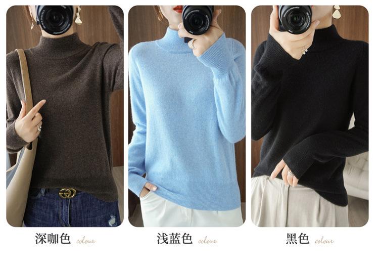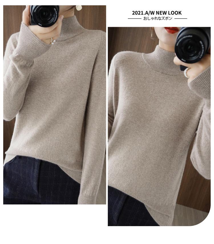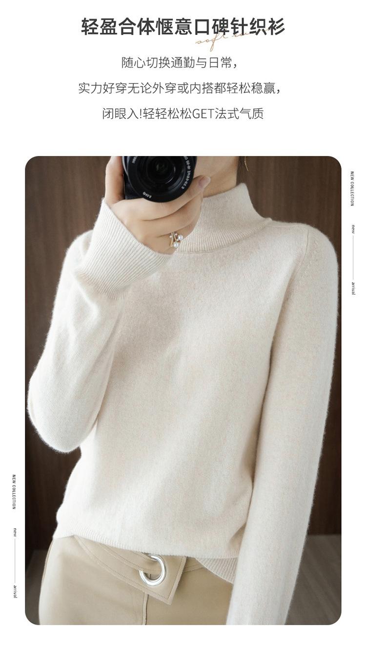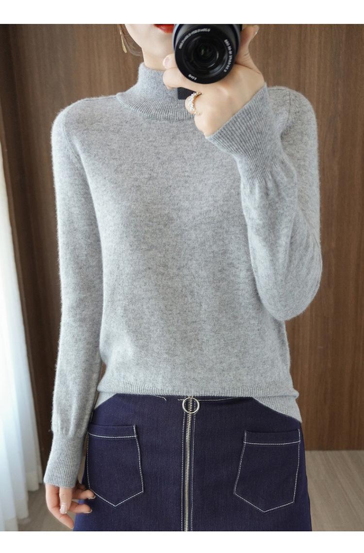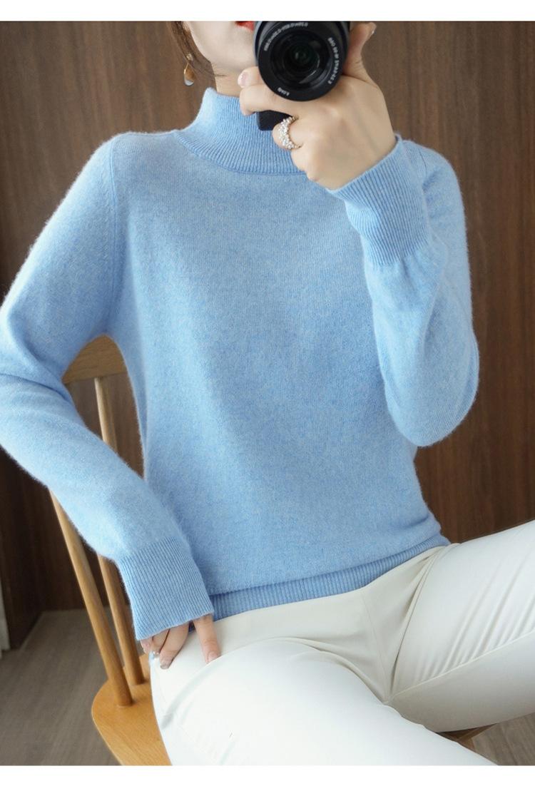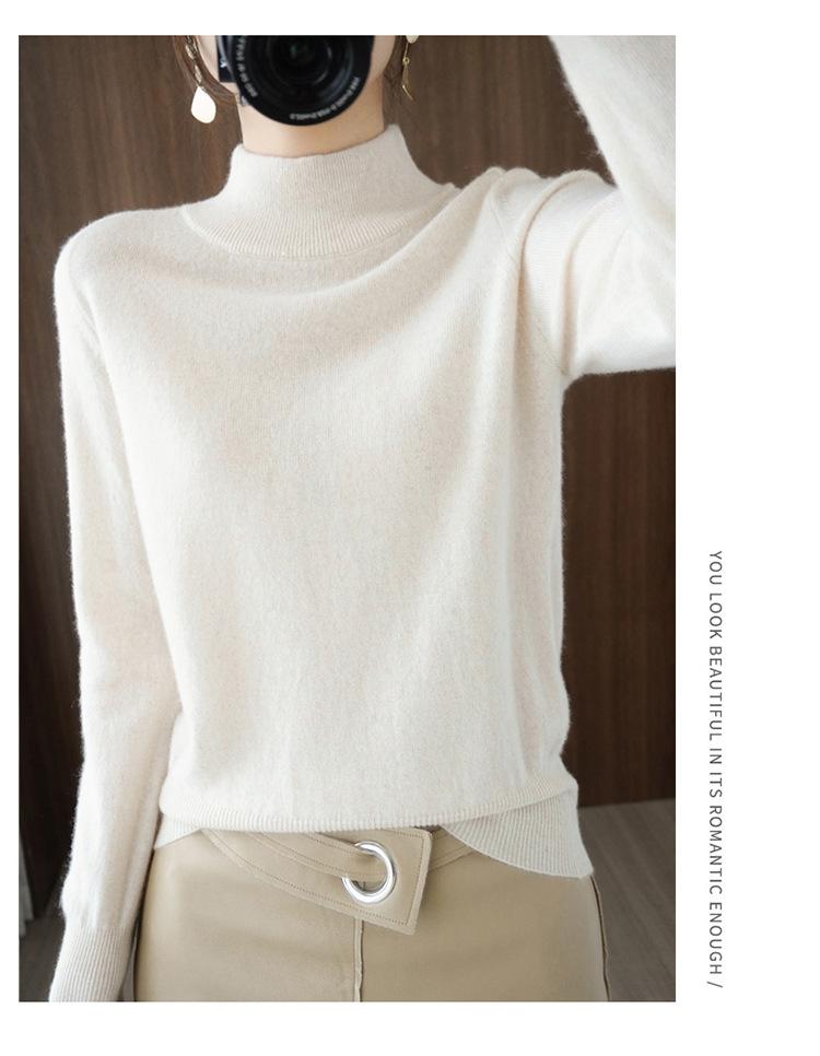 Otoño e Invierno Cuello Medio Alto Largo Medio Tejido Color Sólido Elegante Para Ir al Trabajo Jersey Rojo Lana Estilo Coreano Viscosa Camisa Base Manga Larga