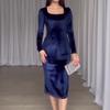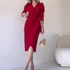 Otoño 2023 nuevo europeo y americano transfronterizo Amazon transfronterizo moda color sólido cordones adelgazante cintura vestido con abertura
