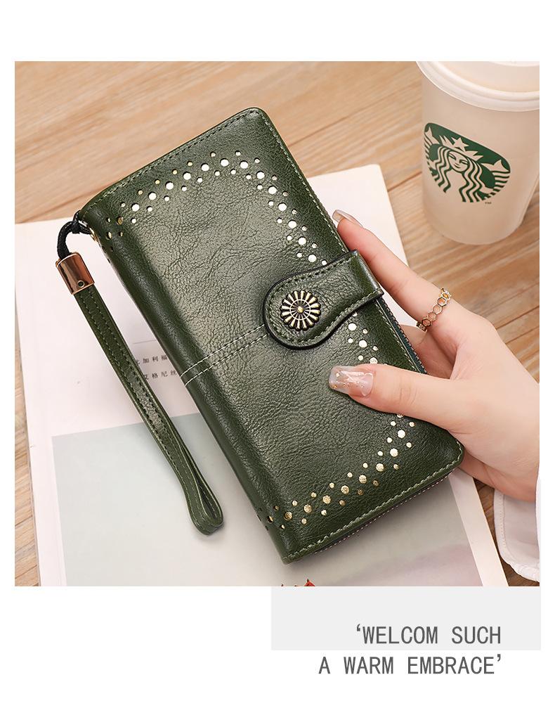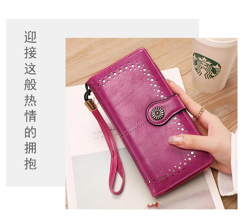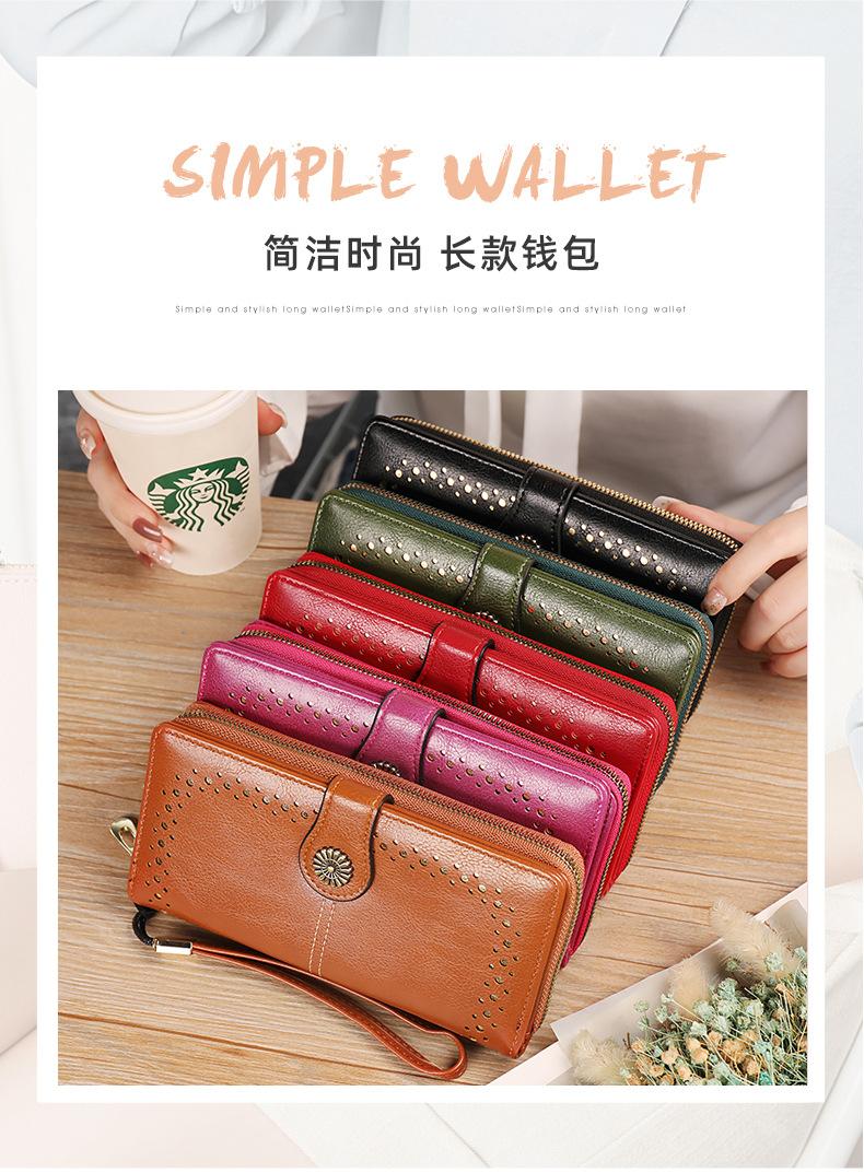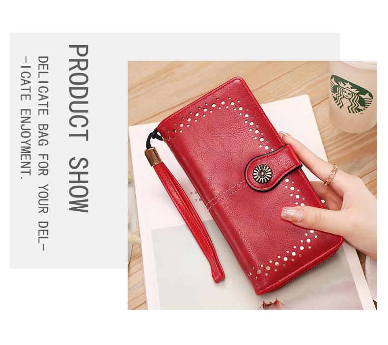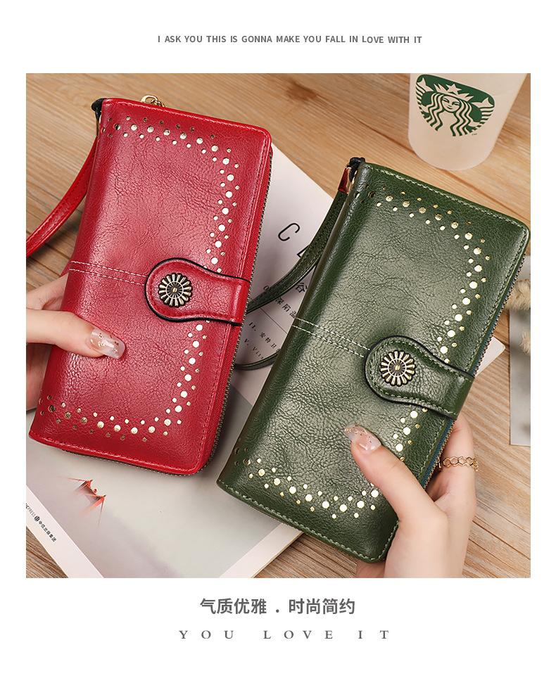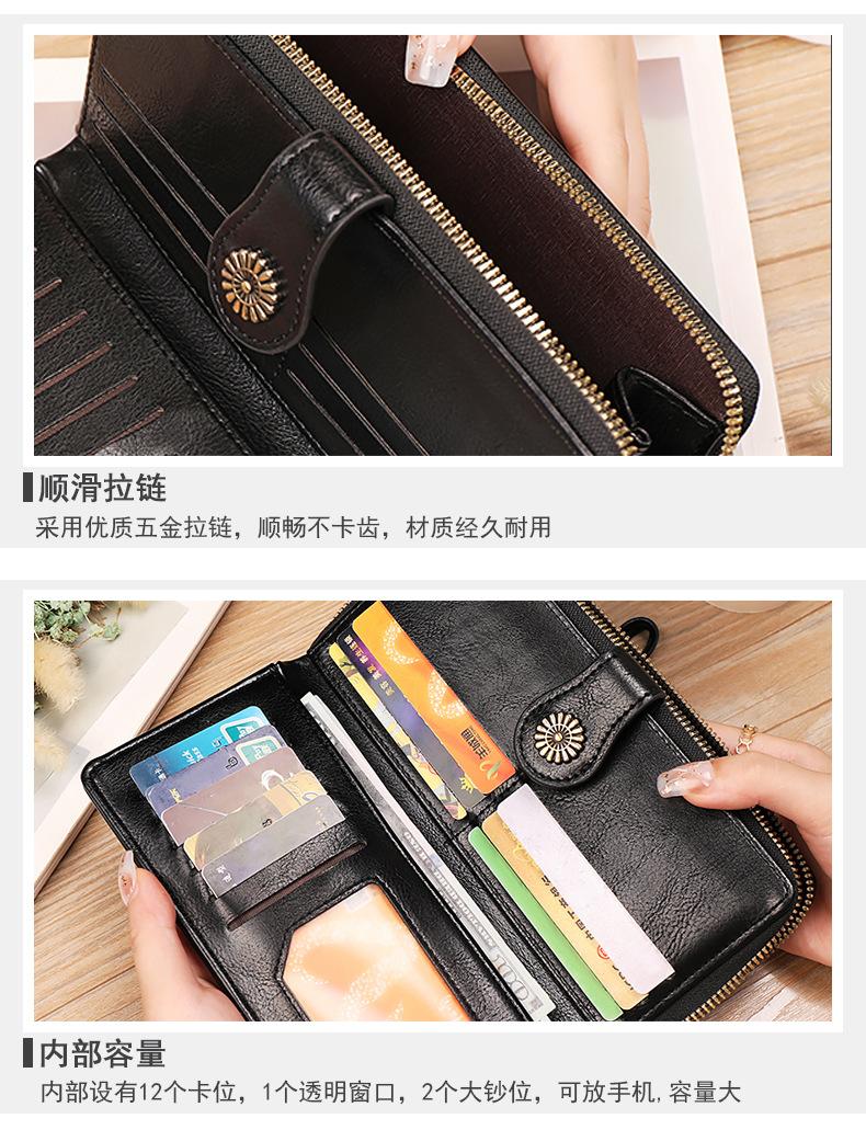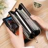 Cartera de mujer con doble cremallera, gran capacidad, tarjetero, larga, de piel encerada, de moda.