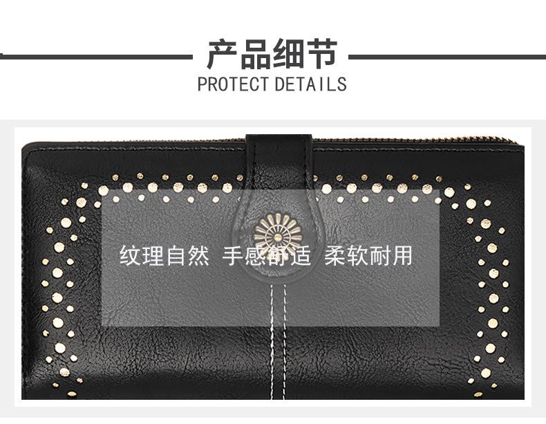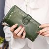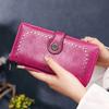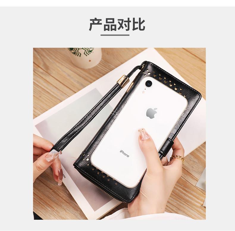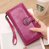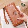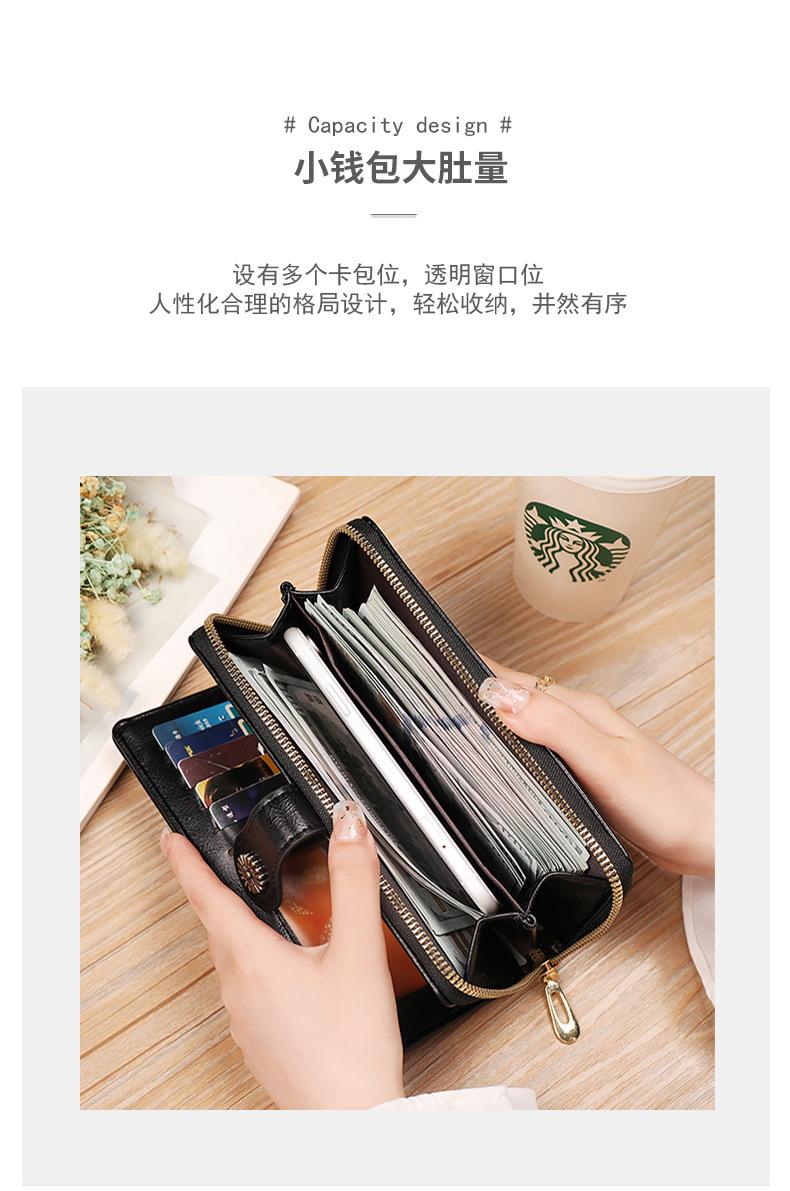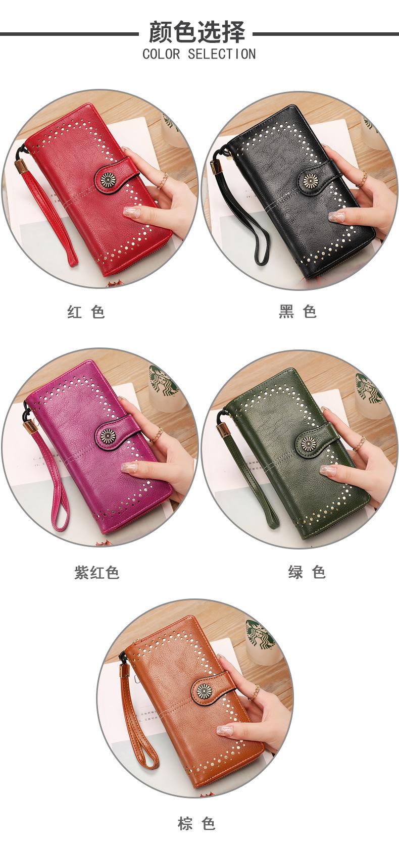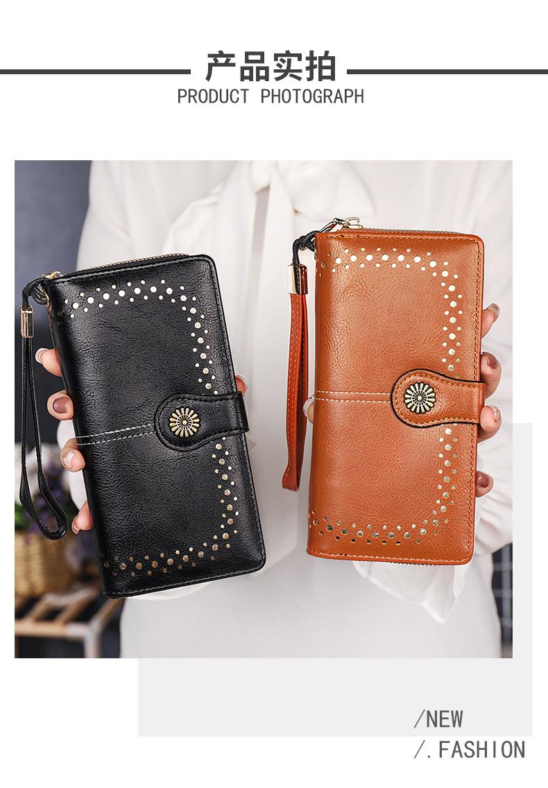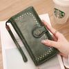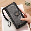 Cartera de mujer con doble cremallera, gran capacidad, tarjetero, larga, de piel encerada, de moda.