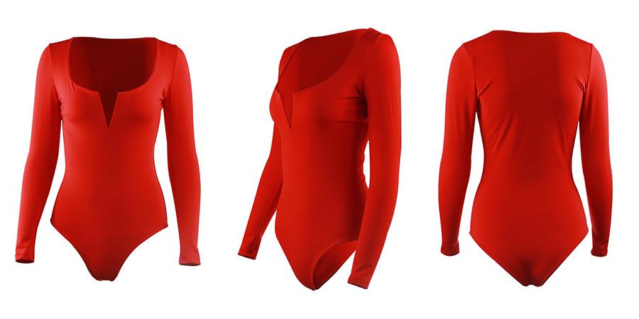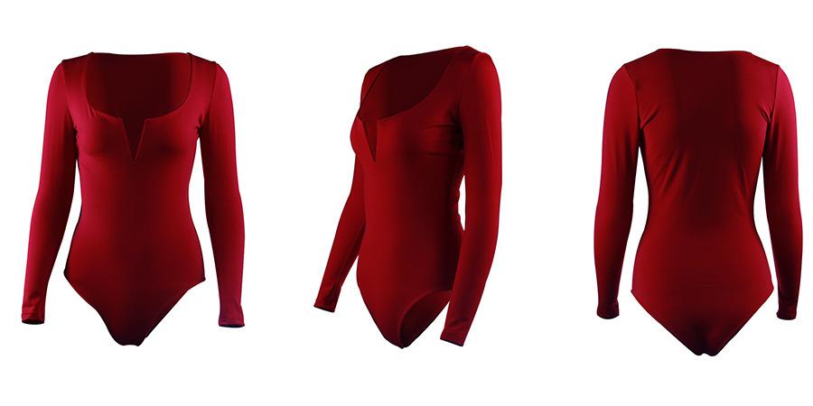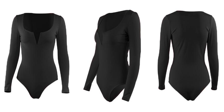 Mono ajustado de moda de estación europea y americana,Sexy Manga Larga con Escote en V ProfundoTejido general de seda de leche de doble capa, anillo de acero inoxidable en forma de V reforzado,¡La calidad se puede ver, gran stock disponible, bienvenidos clientes nuevos y antiguos a tomar muestras para comprar!
