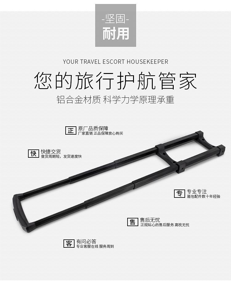 Guangzhou Zhengbo Luggage Products Co., Ltd. se especializa en la producción de una serie de accesorios para equipaje, como cerraduras de combinación, candados, cerraduras fijas, cerraduras aduaneras TSA, carritos, ruedas para maletas, ruedas para maletas y asas. Nuestros productos son populares en el mercado y gozan de gran prestigio. La empresa ha establecido relaciones de cooperación duraderas y estables con importantes fabricantes y agentes de equipaje. Ofrece una gama completa de productos a precios razonables. Con una sólida trayectoria comercial, valoramos la credibilidad, cumplimos los contratos y garantizamos la calidad de nuestros productos. Nos hemos ganado la confianza de nuestros clientes gracias a nuestra amplia gama de productos y al principio de bajos beneficios y rápida rotación.