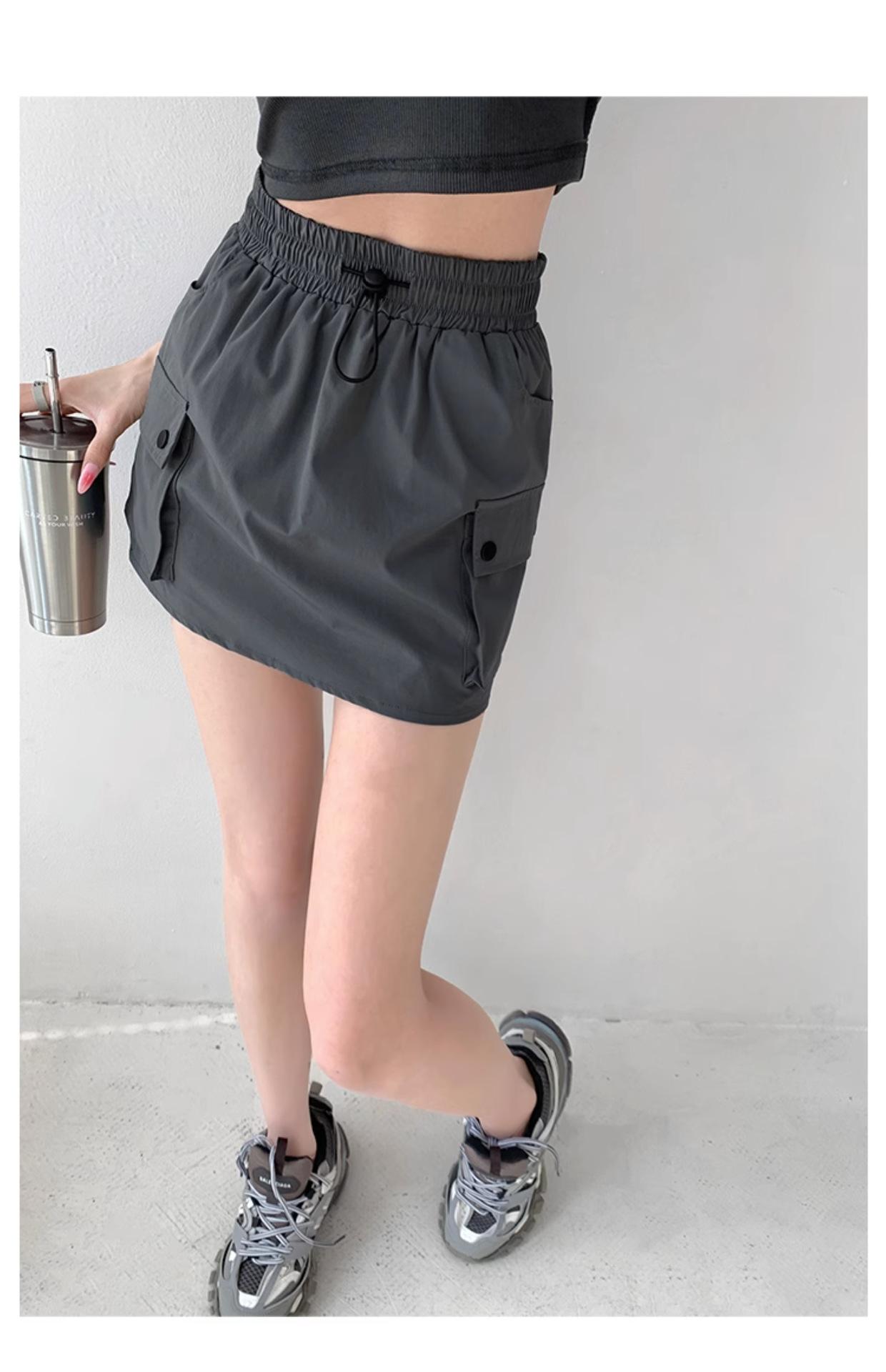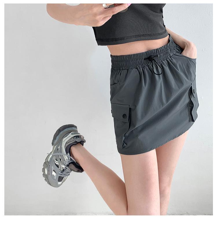 Falda de trabajo europea y americana de calle para chica guapa, cintura elástica con cordón, estilo retro de verano para adelgazar, estilo preppy, falda de cadera, moda