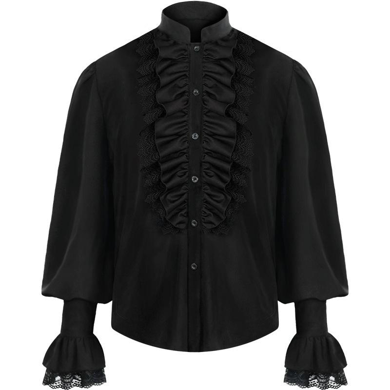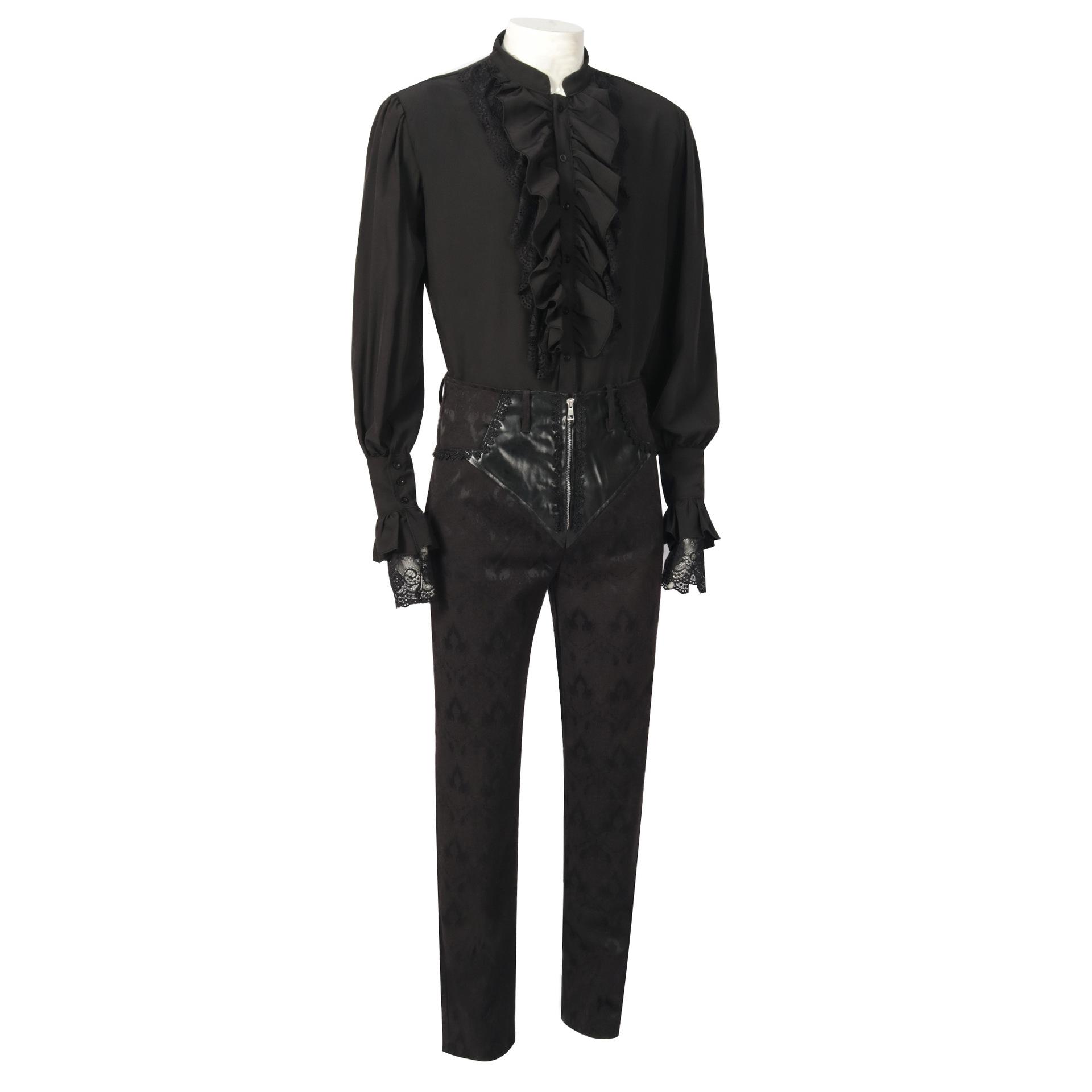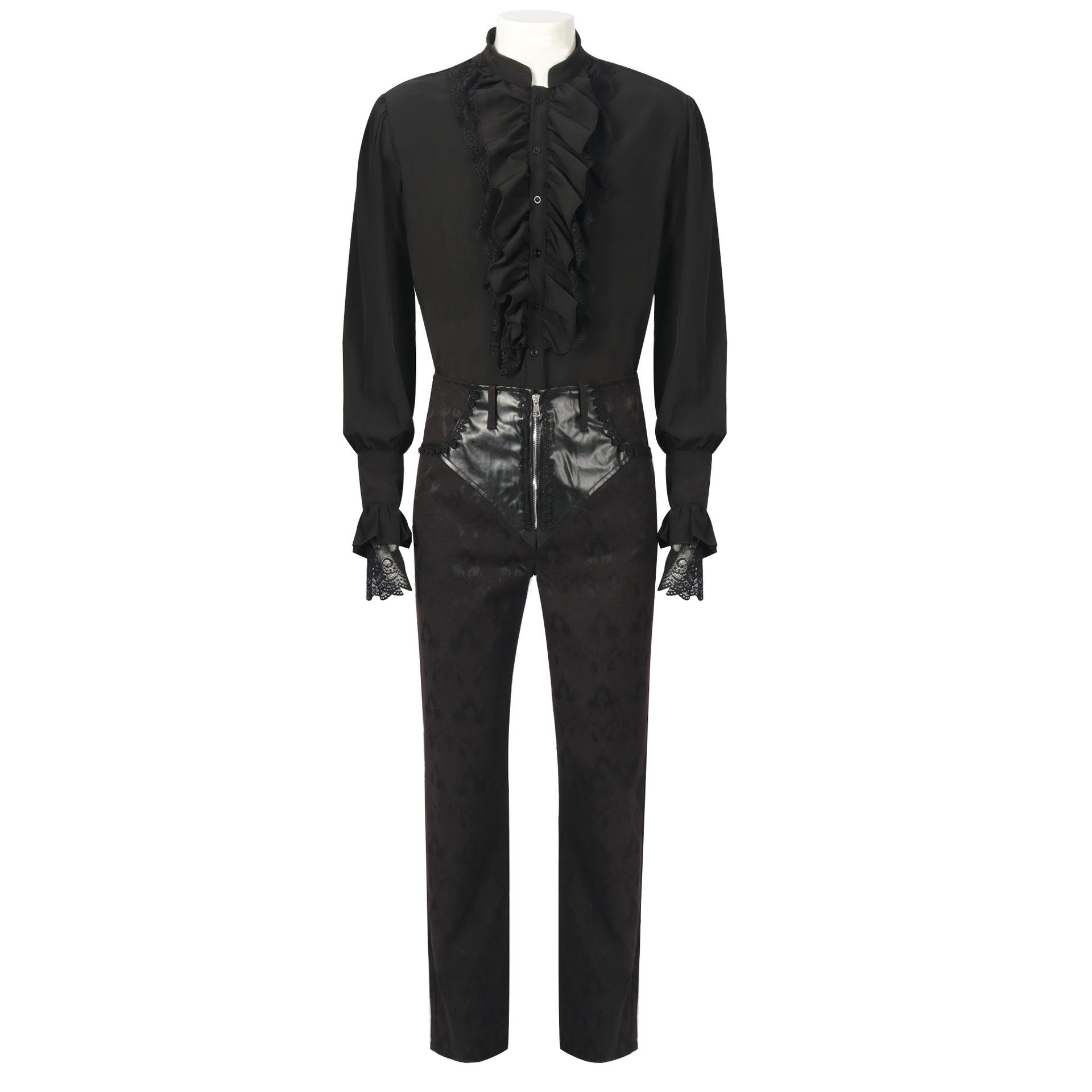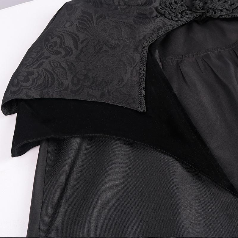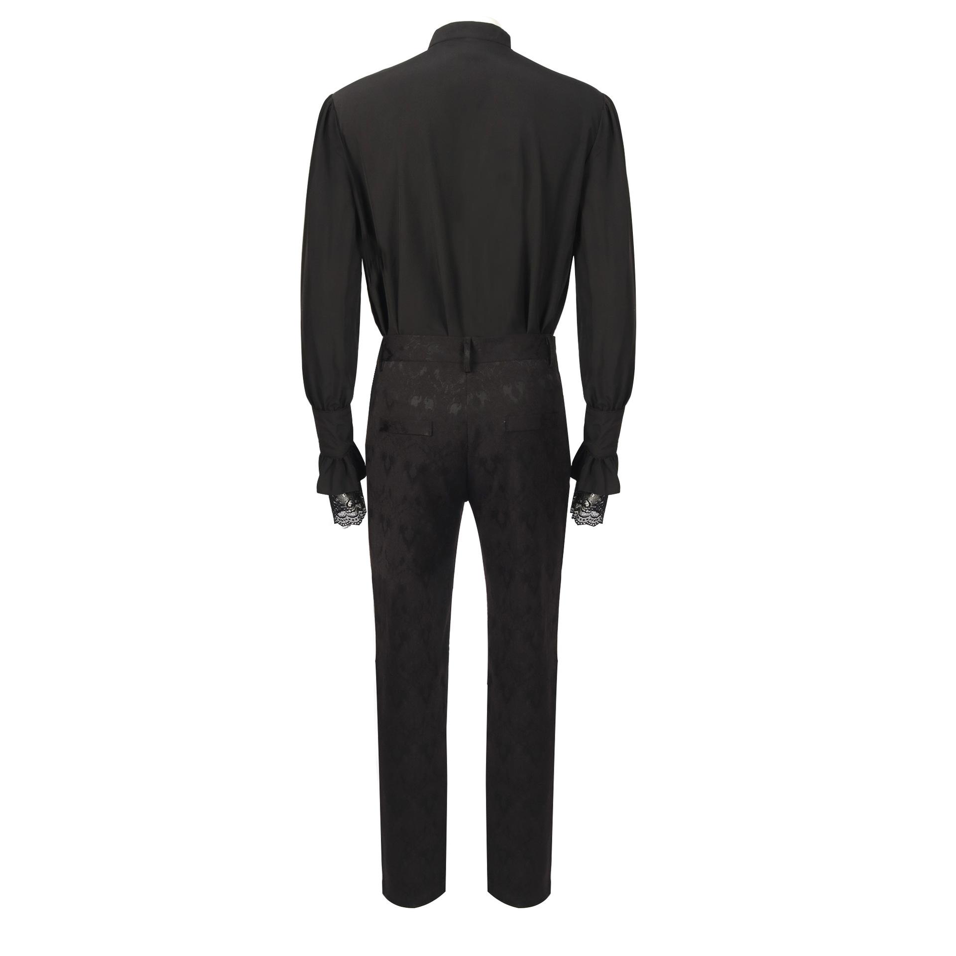 Stand Collar buckle cloak Black, Pirate shirt 2 Black, Jacquard pants No. 3