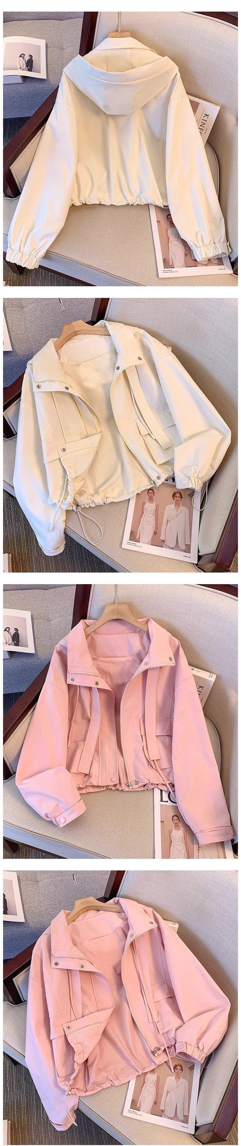 Chaqueta corta blanca con capucha para mujer, primavera y otoño, nueva chaqueta de trabajo fina, informal, holgada y atractiva.
