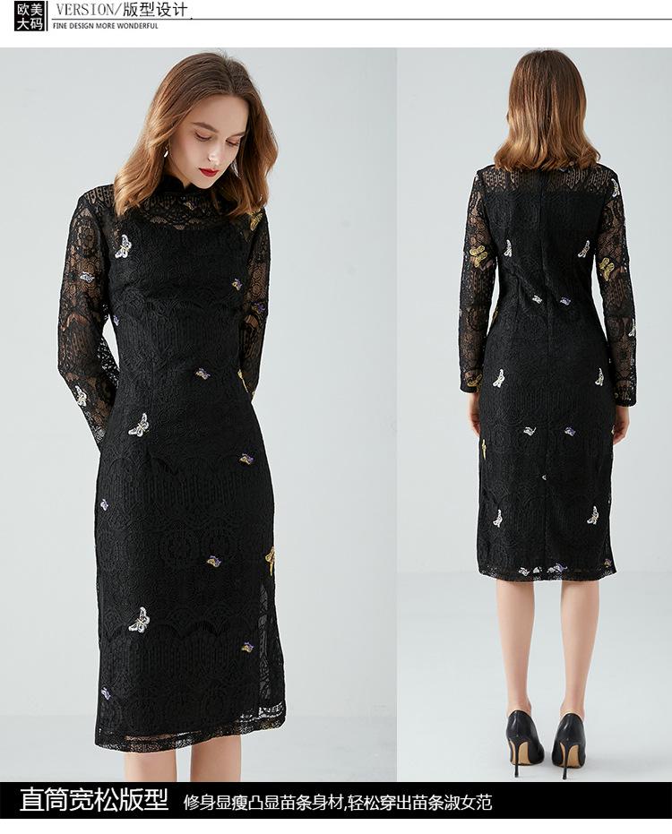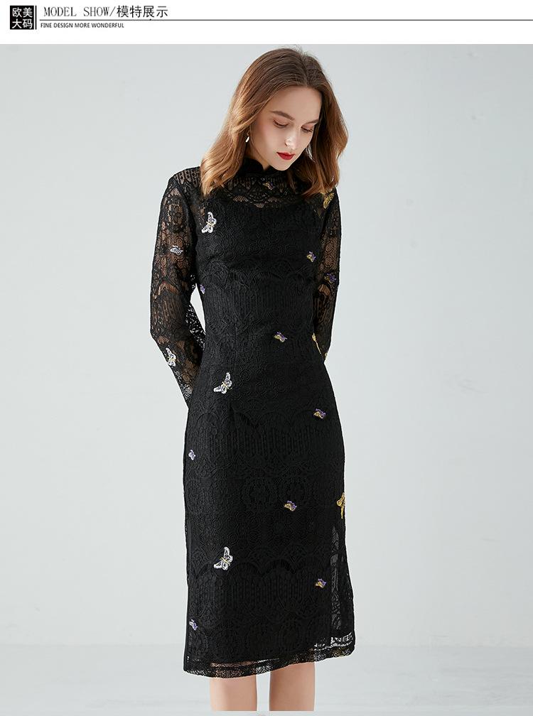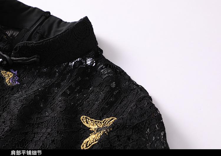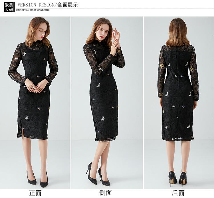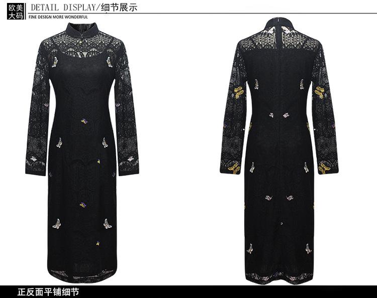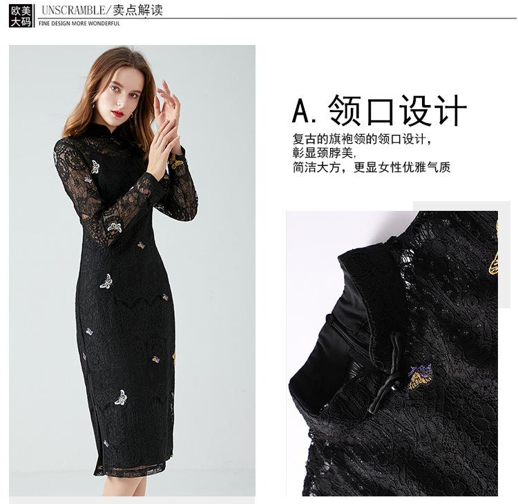 Cheongsam negro mejorado de estilo chino para otoño, nuevo vestido de encaje con bordado adelgazante de talla grande para mamá.