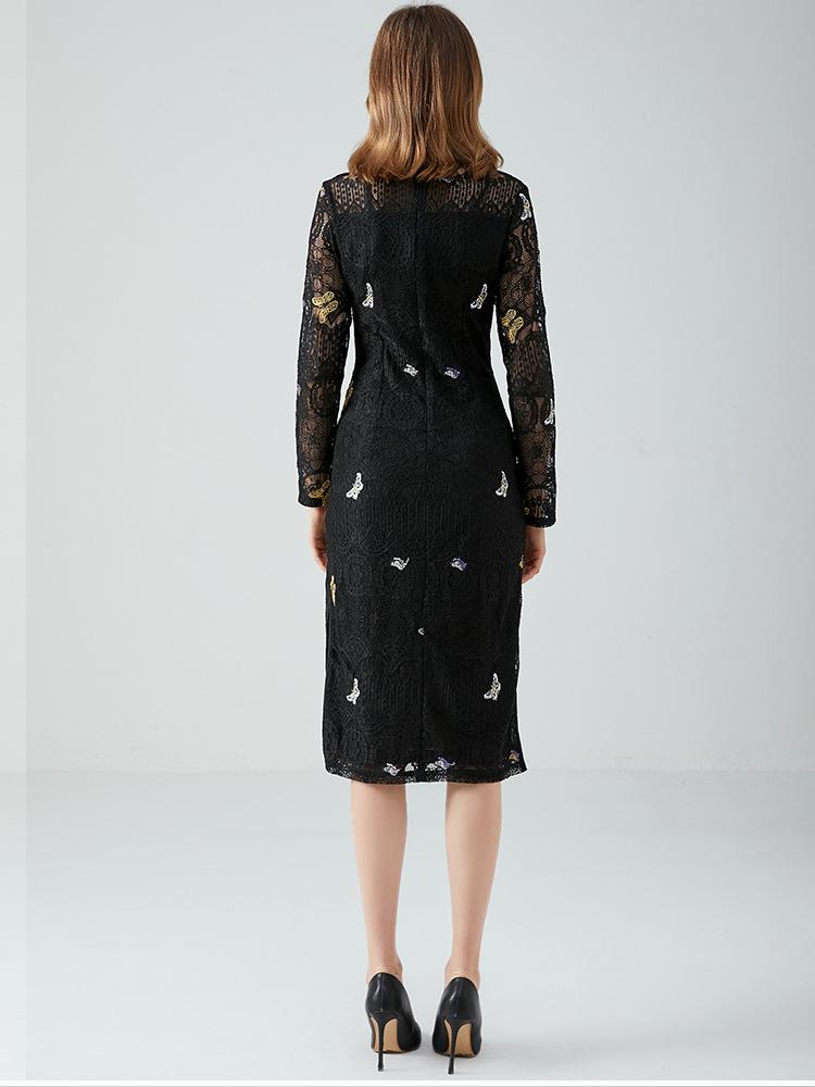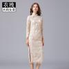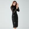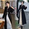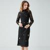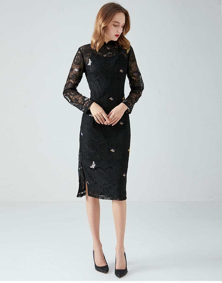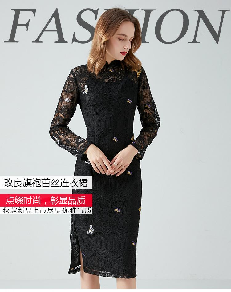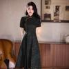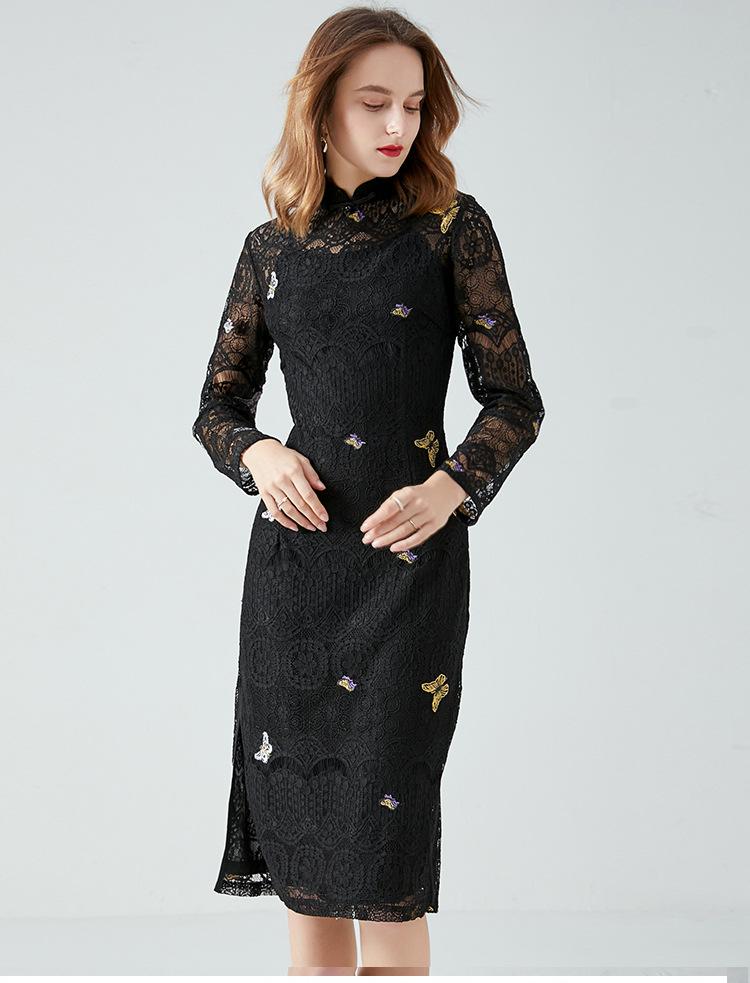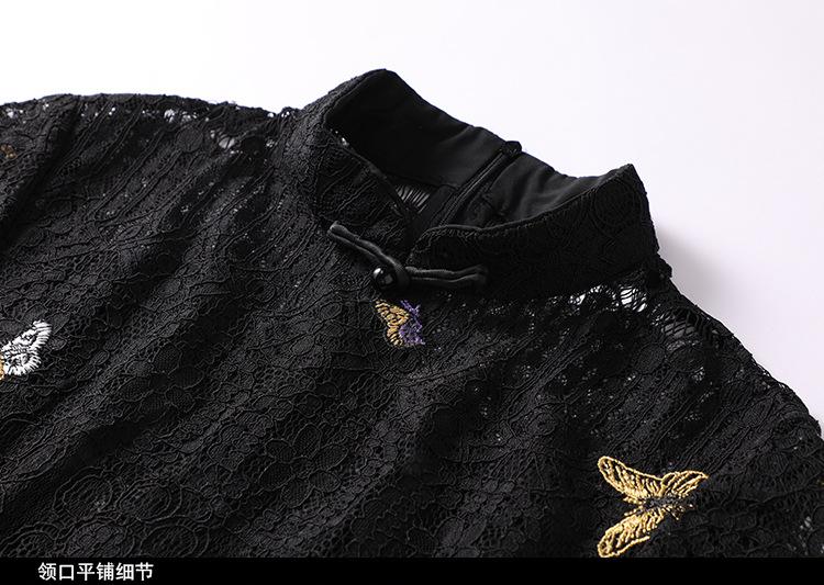Cheongsam negro mejorado de estilo chino para otoño, nuevo vestido de encaje con bordado adelgazante de talla grande para mamá.
