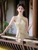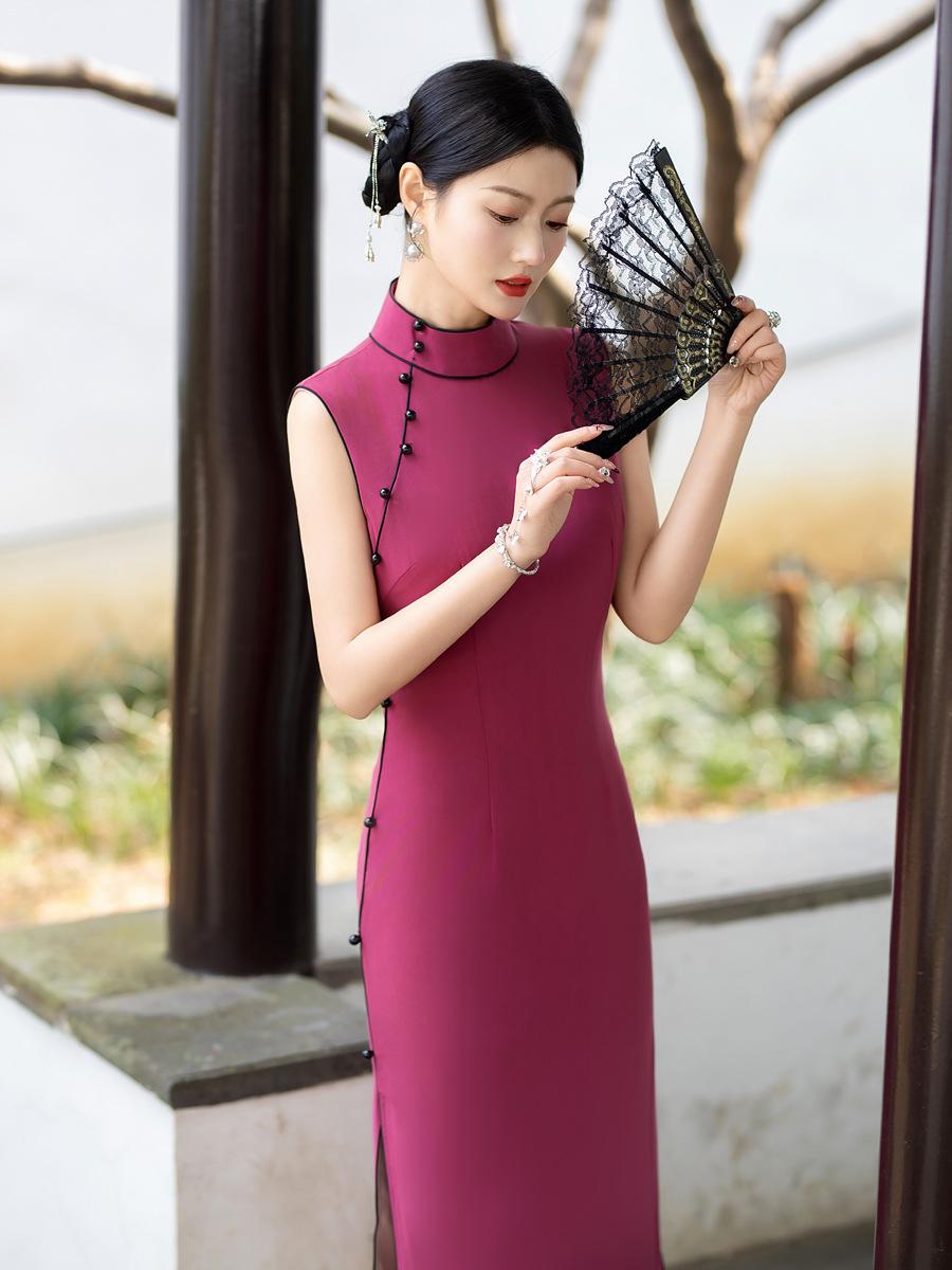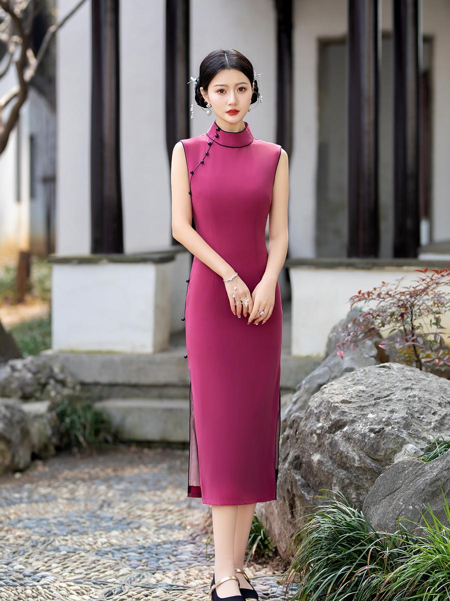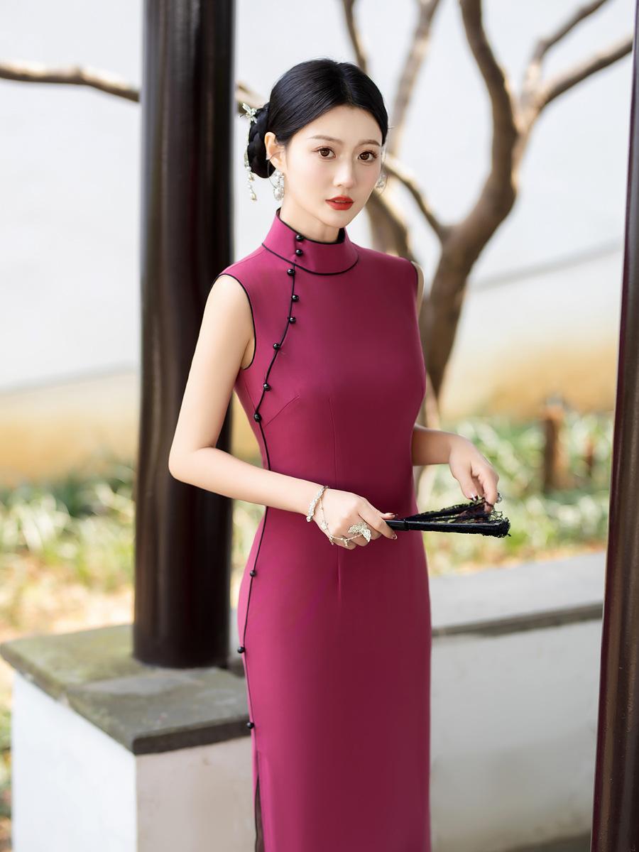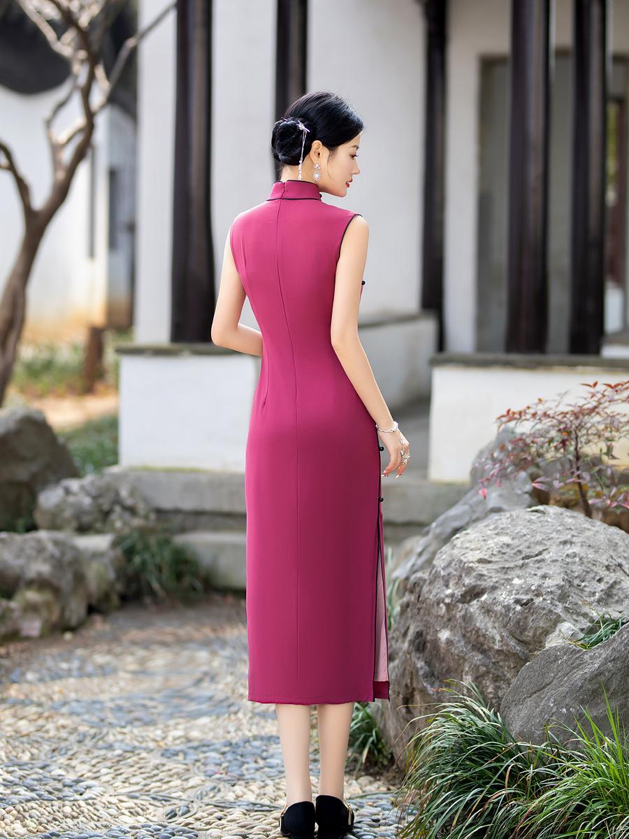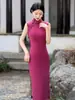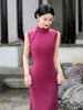 Verano 2024 Nuevo cheongsam rosa rouge joven mejorado temperamento diario delgado vestido retro sin mangas