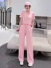 Traje Deportivo Casual de Verano Nuevo 2025, Tops Femeninos y de Alta Gama de Manga Corta, Pantalones de Pierna Ancha Conjunto de Dos Piezas, Estilo Occidental