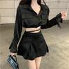 Black knitted jacket + vest + skirt, Black skirt, Black inner wear