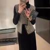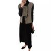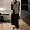 Traje de Mujer Estilo Sal Francés Chic Otoño 2025 Nuevo Chaleco de Sarga Irregular Camisa Base y Falda