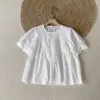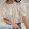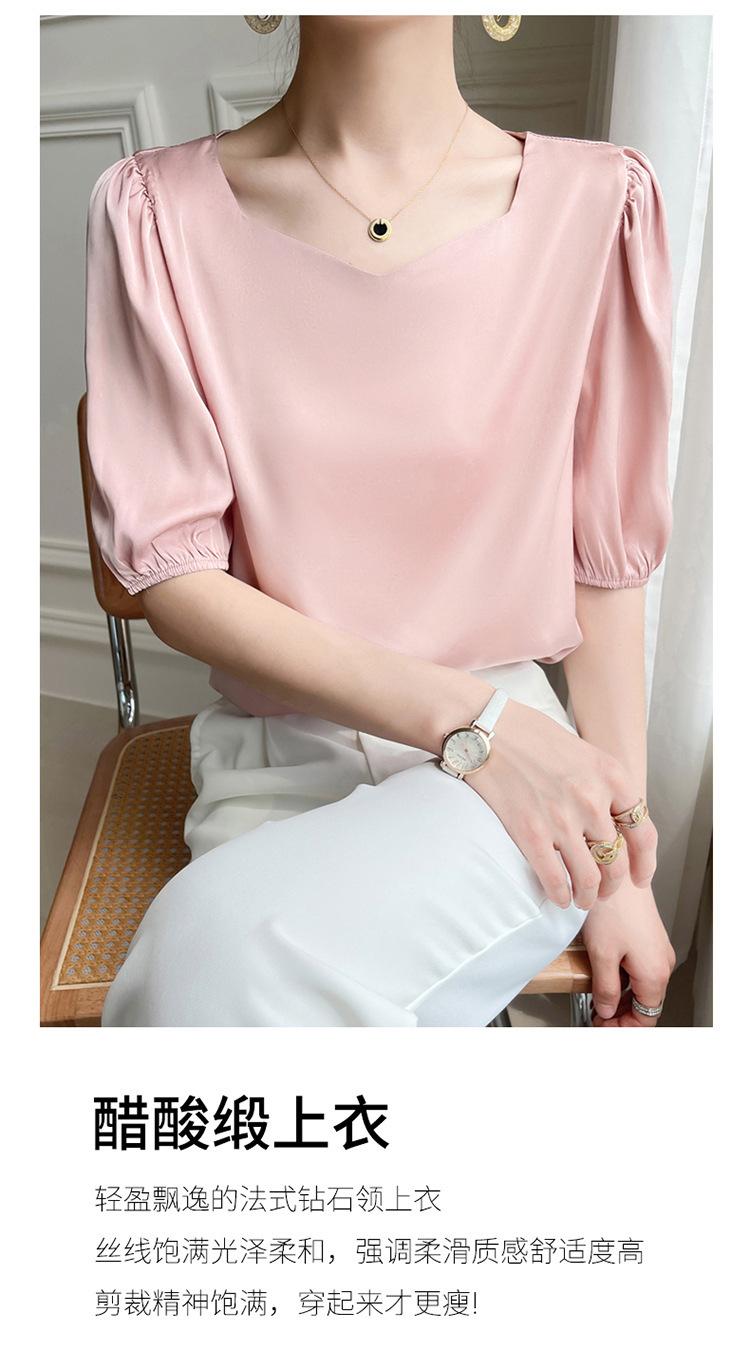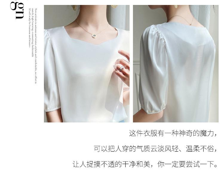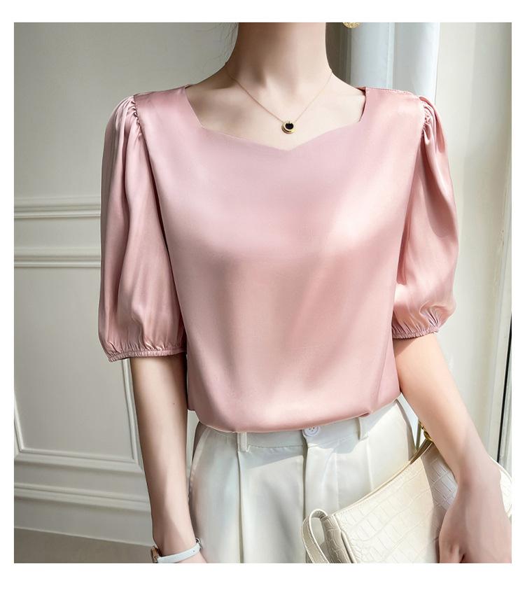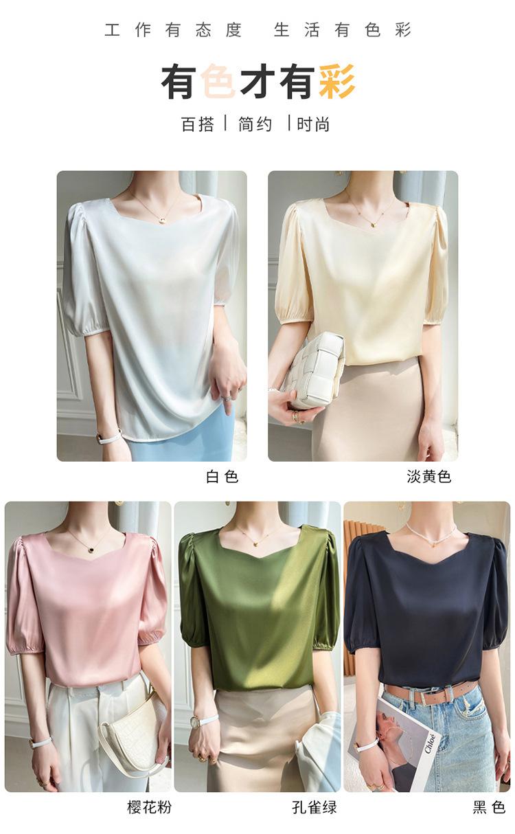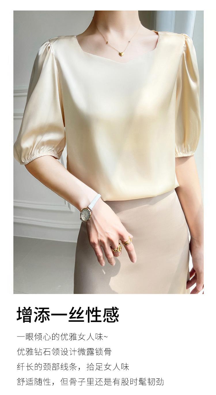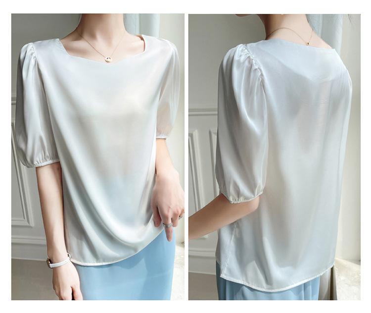 Camisa de verano con cuello melocotón y mangas abullonadas, holgada y elegante, de manga corta, con cuello de diamante para mujer
