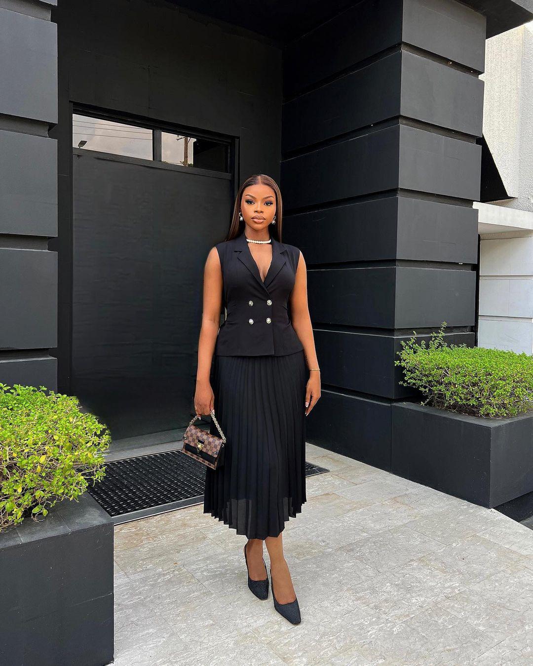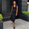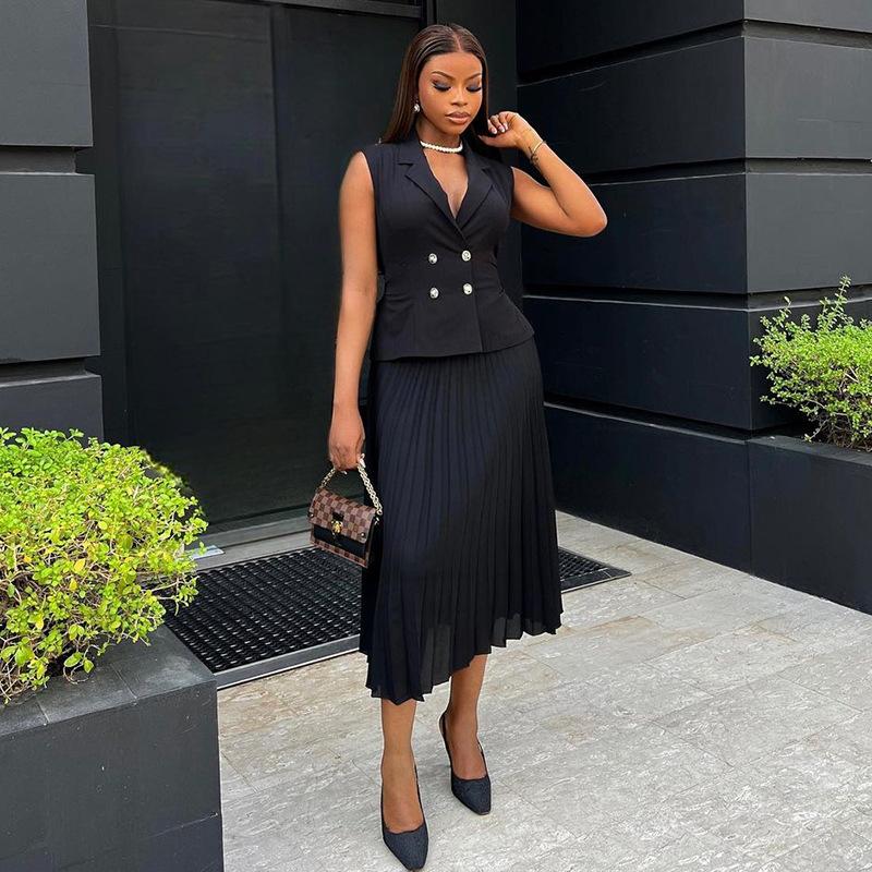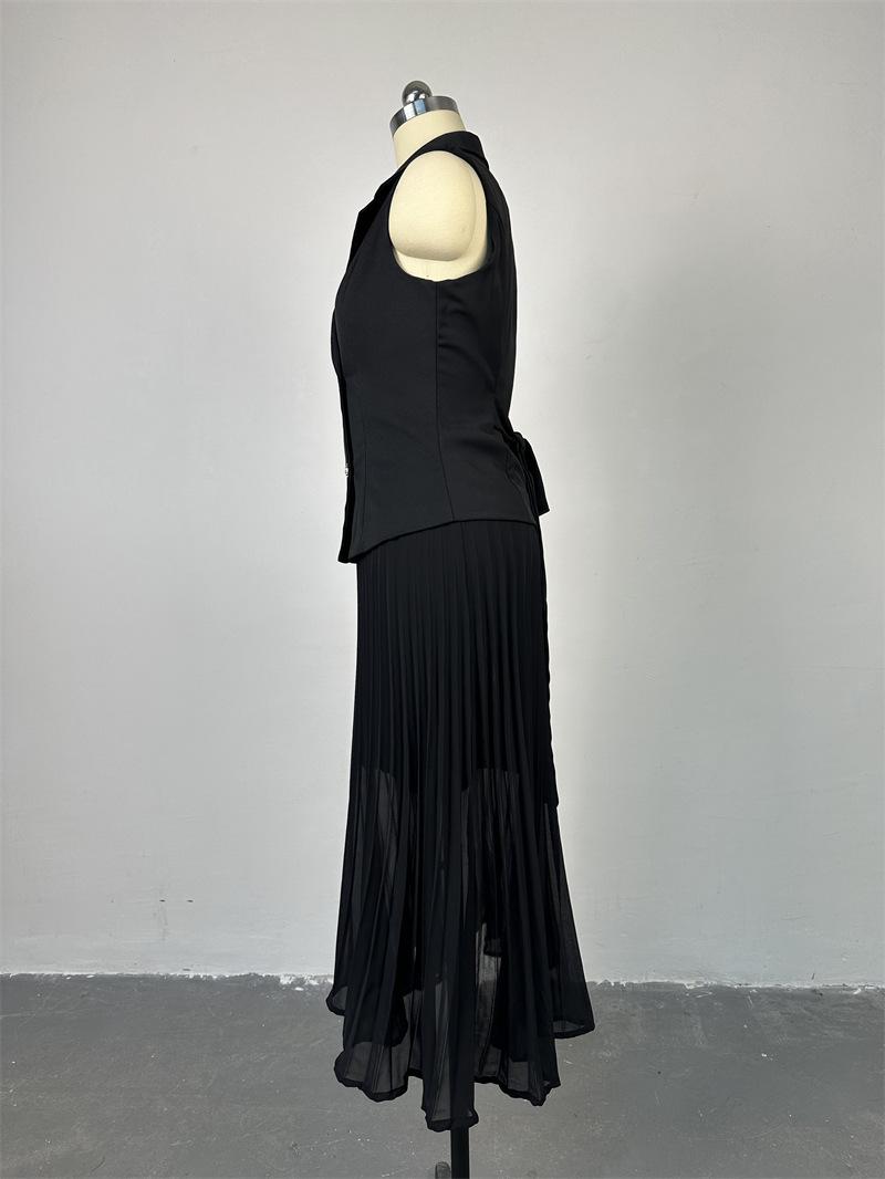 Ropa de mujer transfronteriza europea y americana, verano 2024, nuevo traje elegante con cuello cruzado, chaleco, top, falda plisada, traje