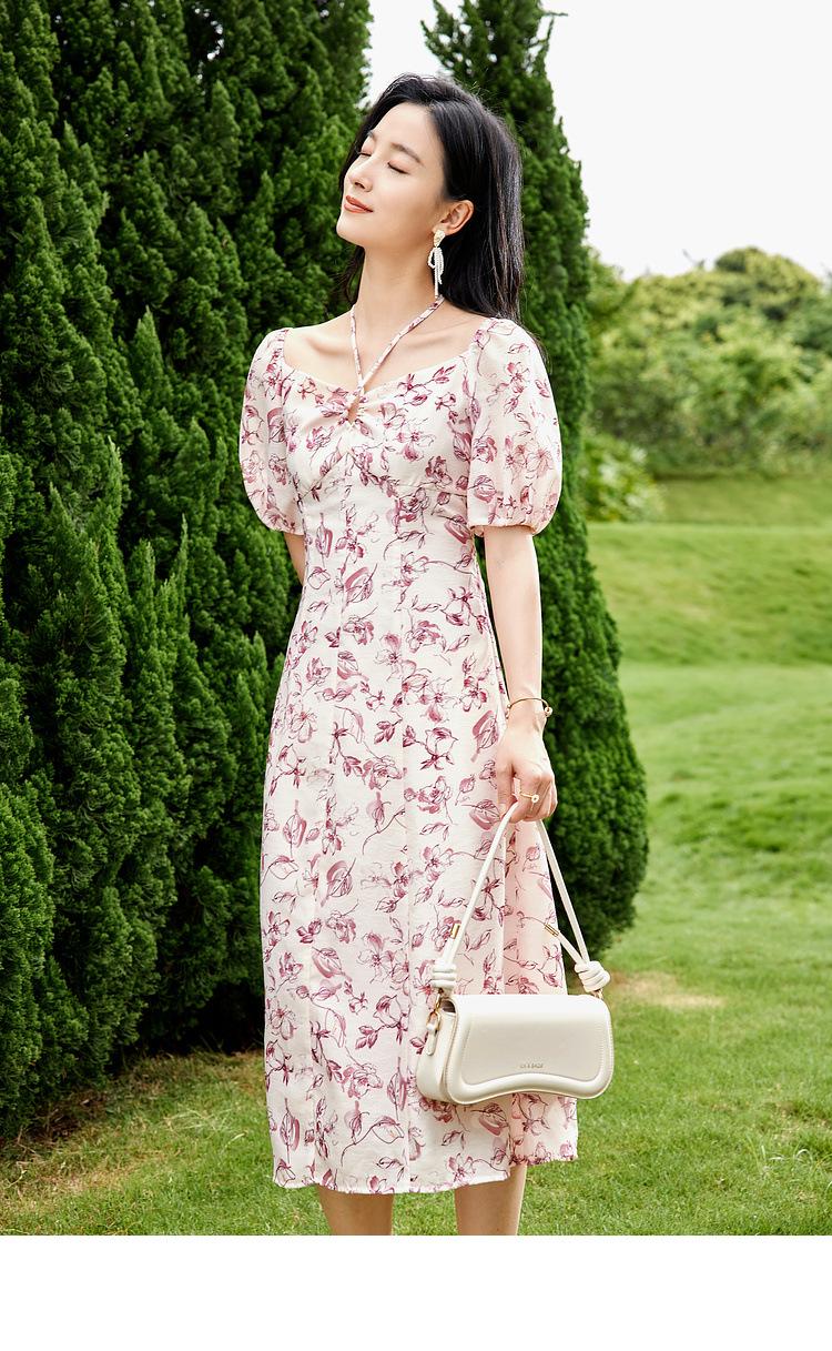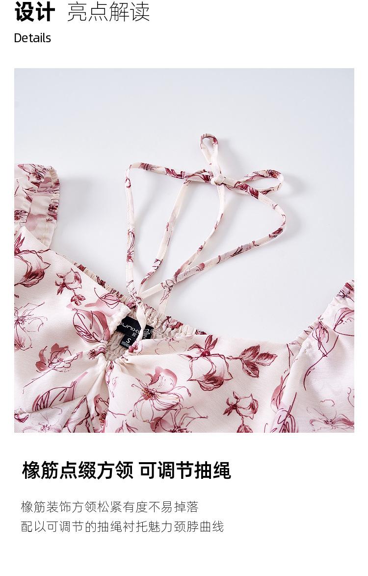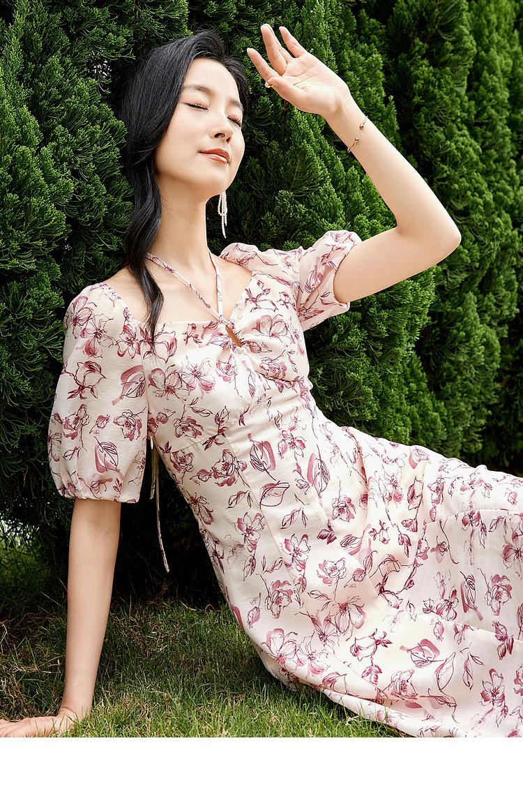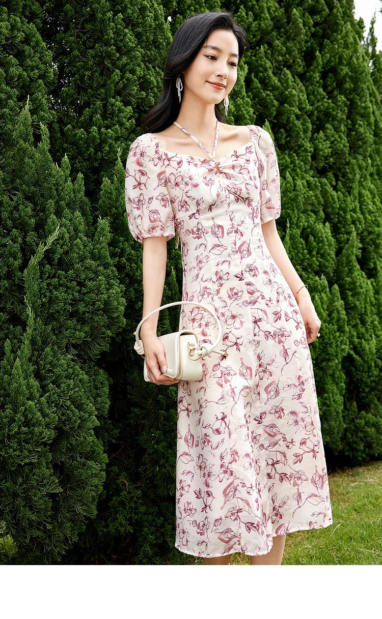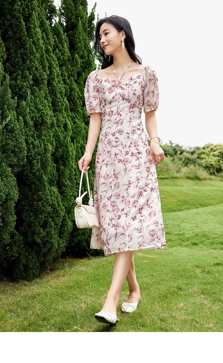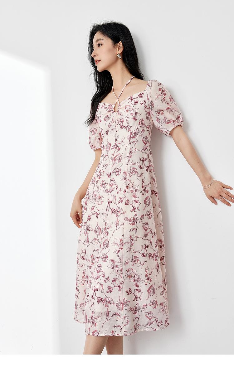 Vestido elegante informal de cintura alta con estampado de moda de manga corta y cuello colgante para mujer de Zhen Xi DP291